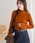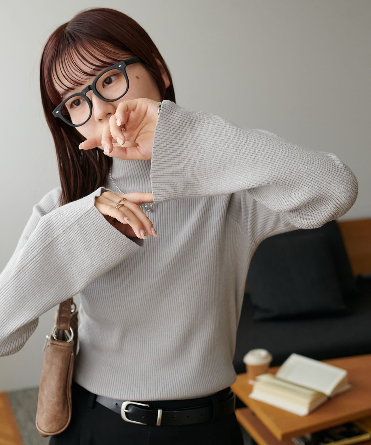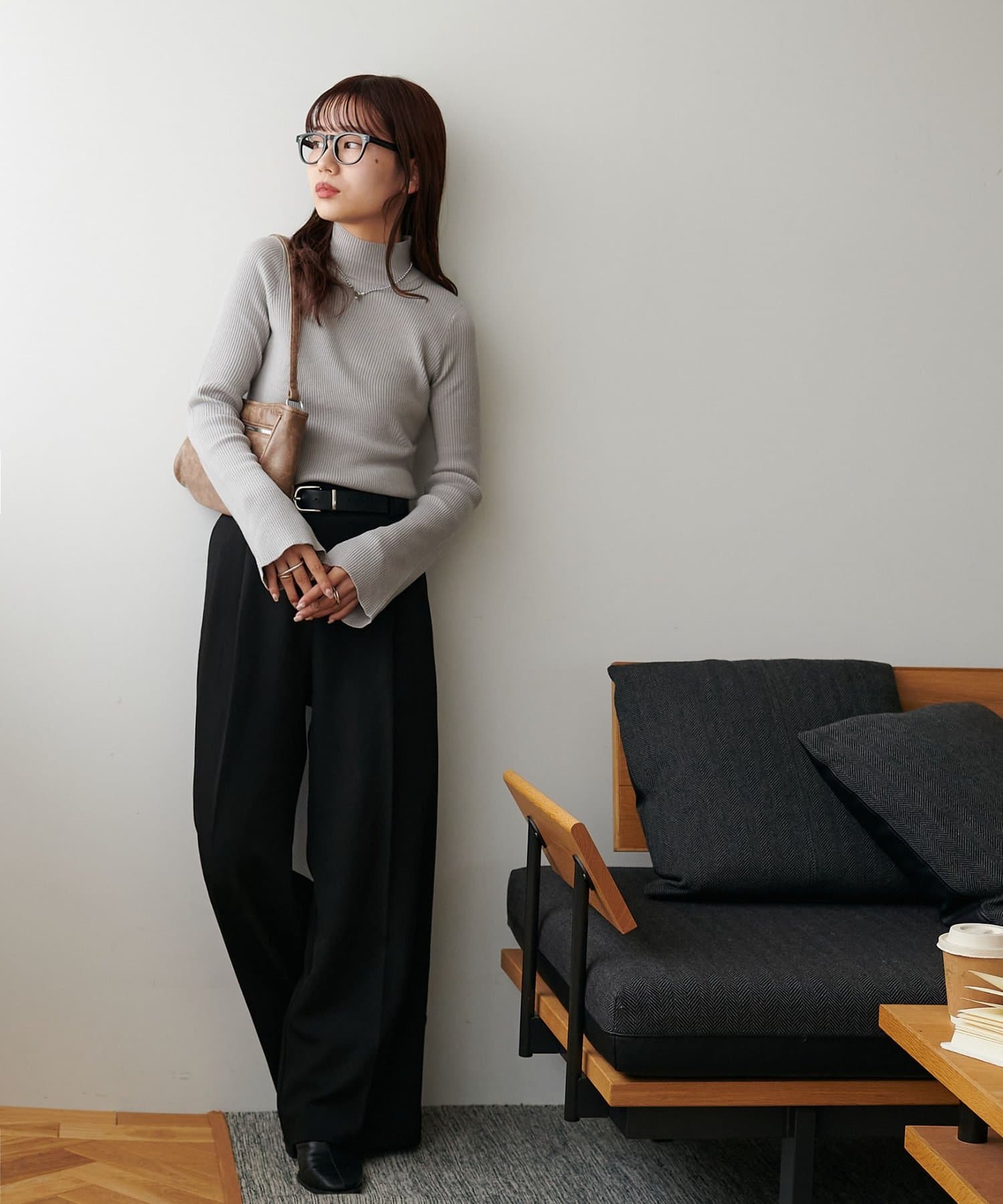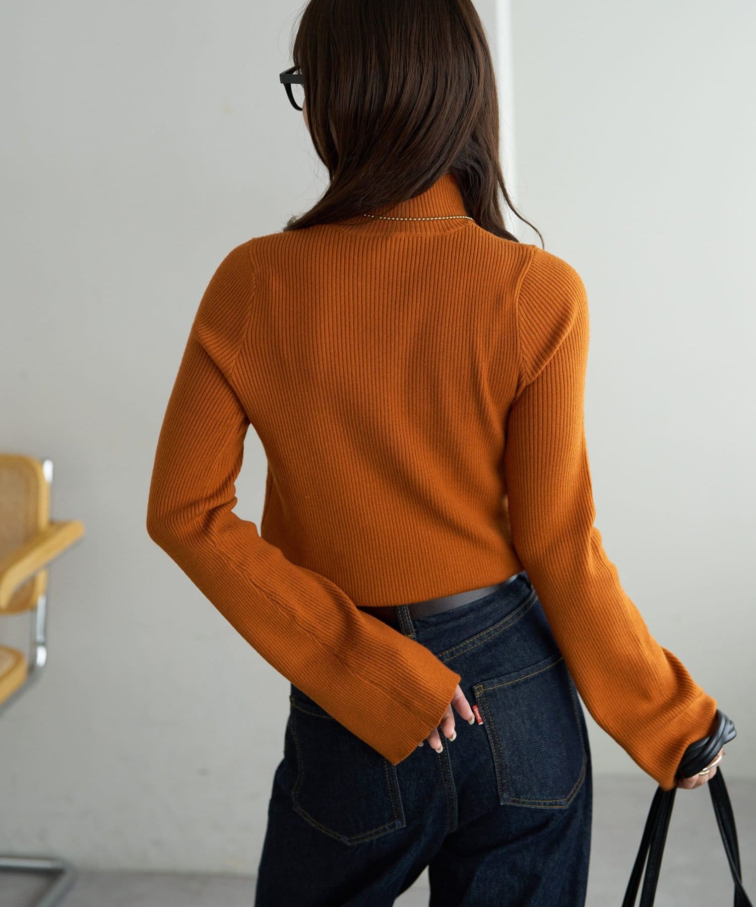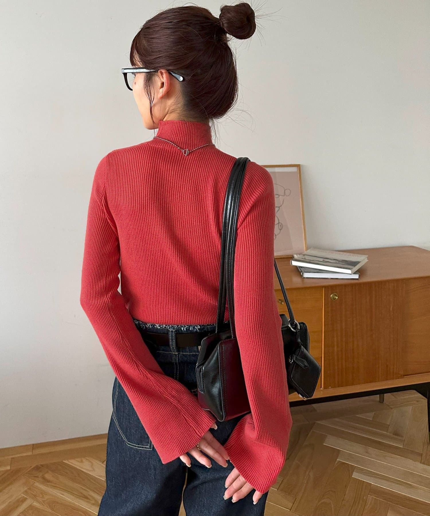 程よく体にフィットするリブ素材で、女性らしいシルエットを引き立てるハイネックニット。