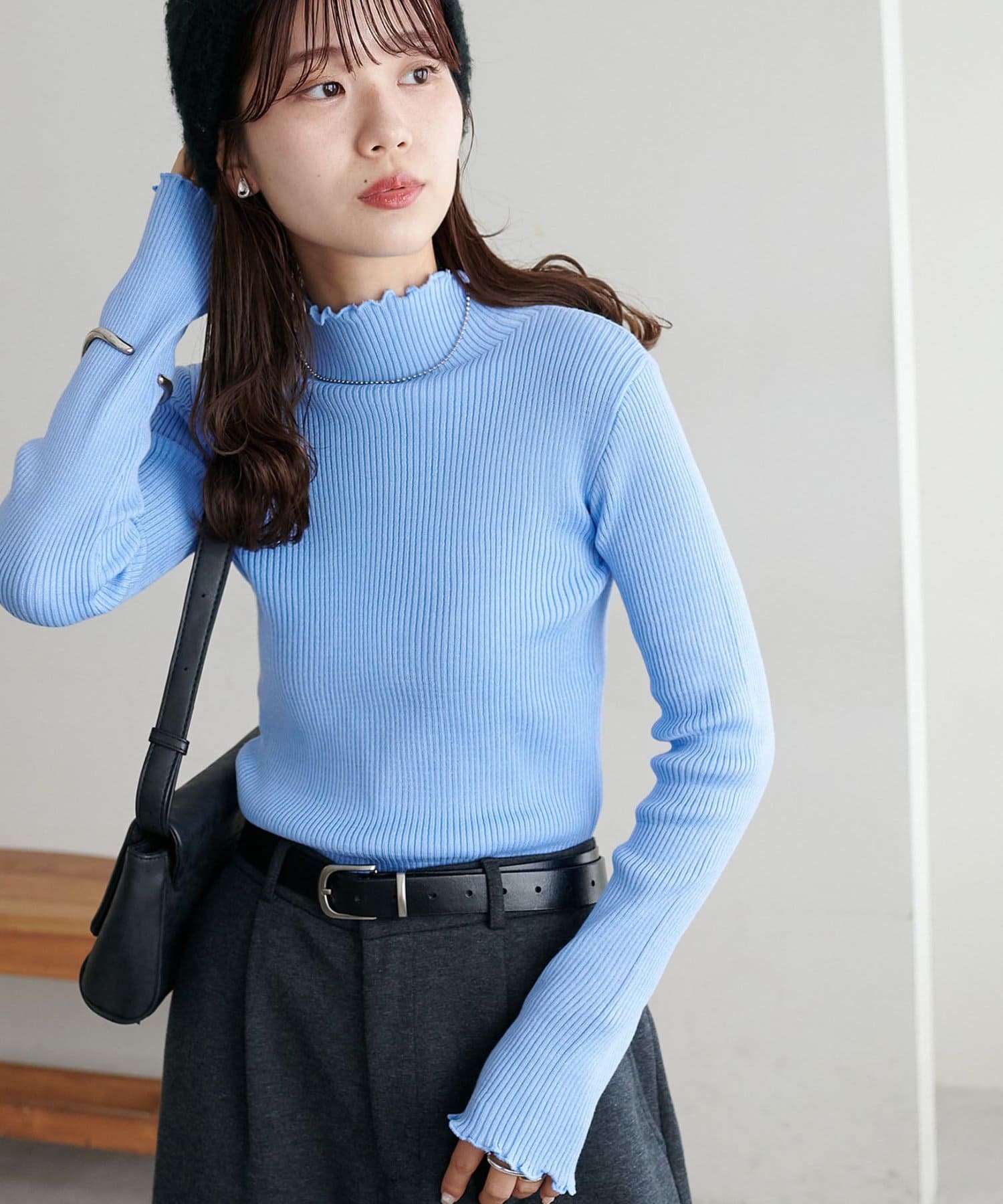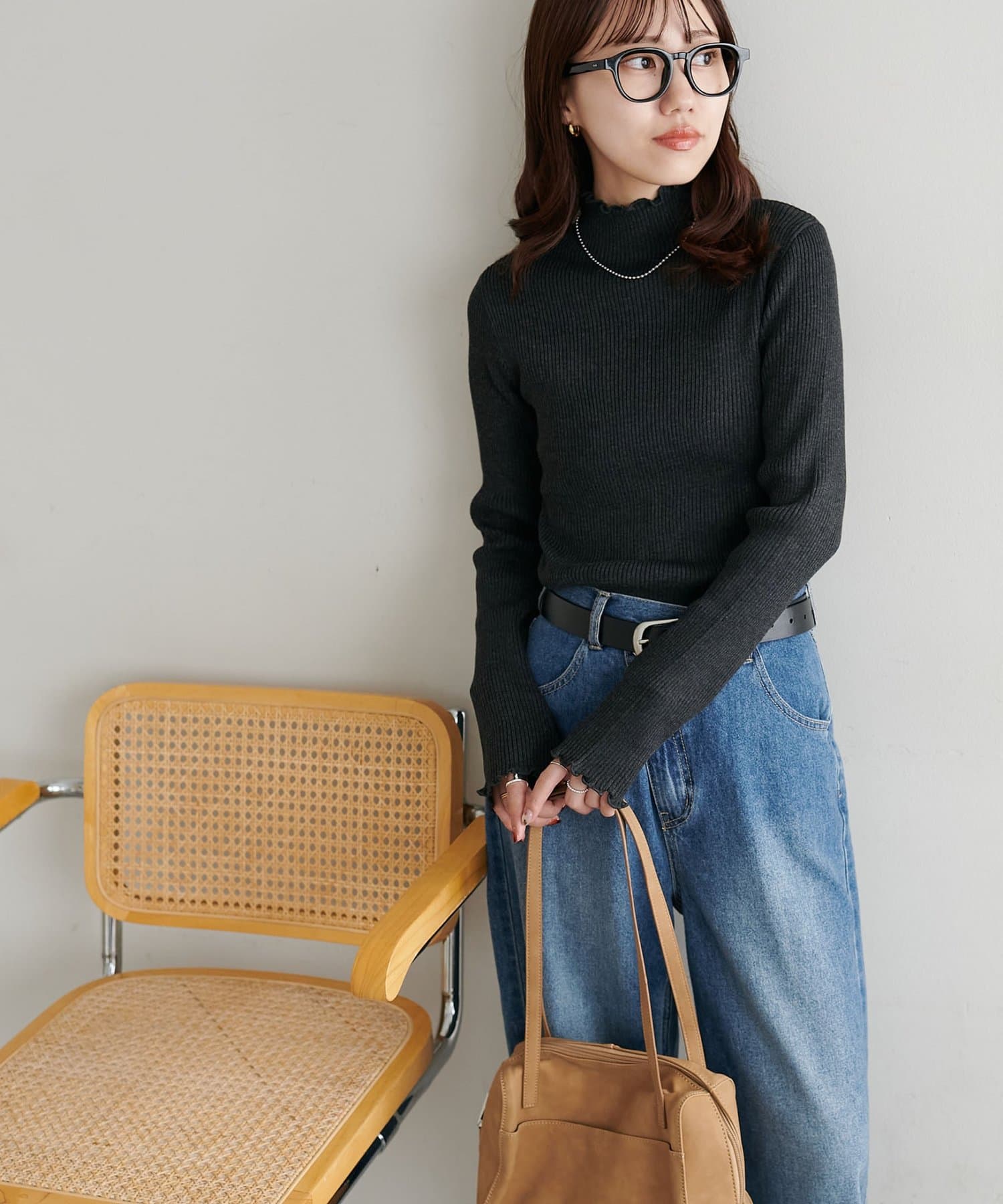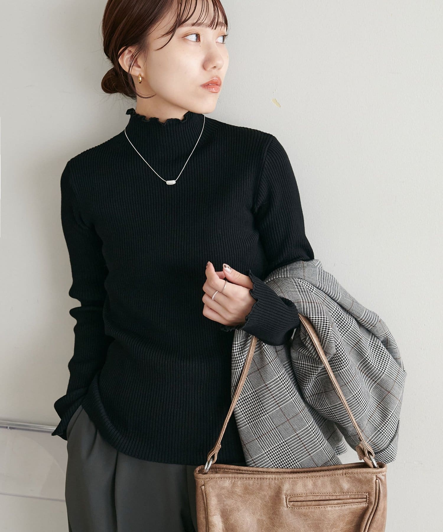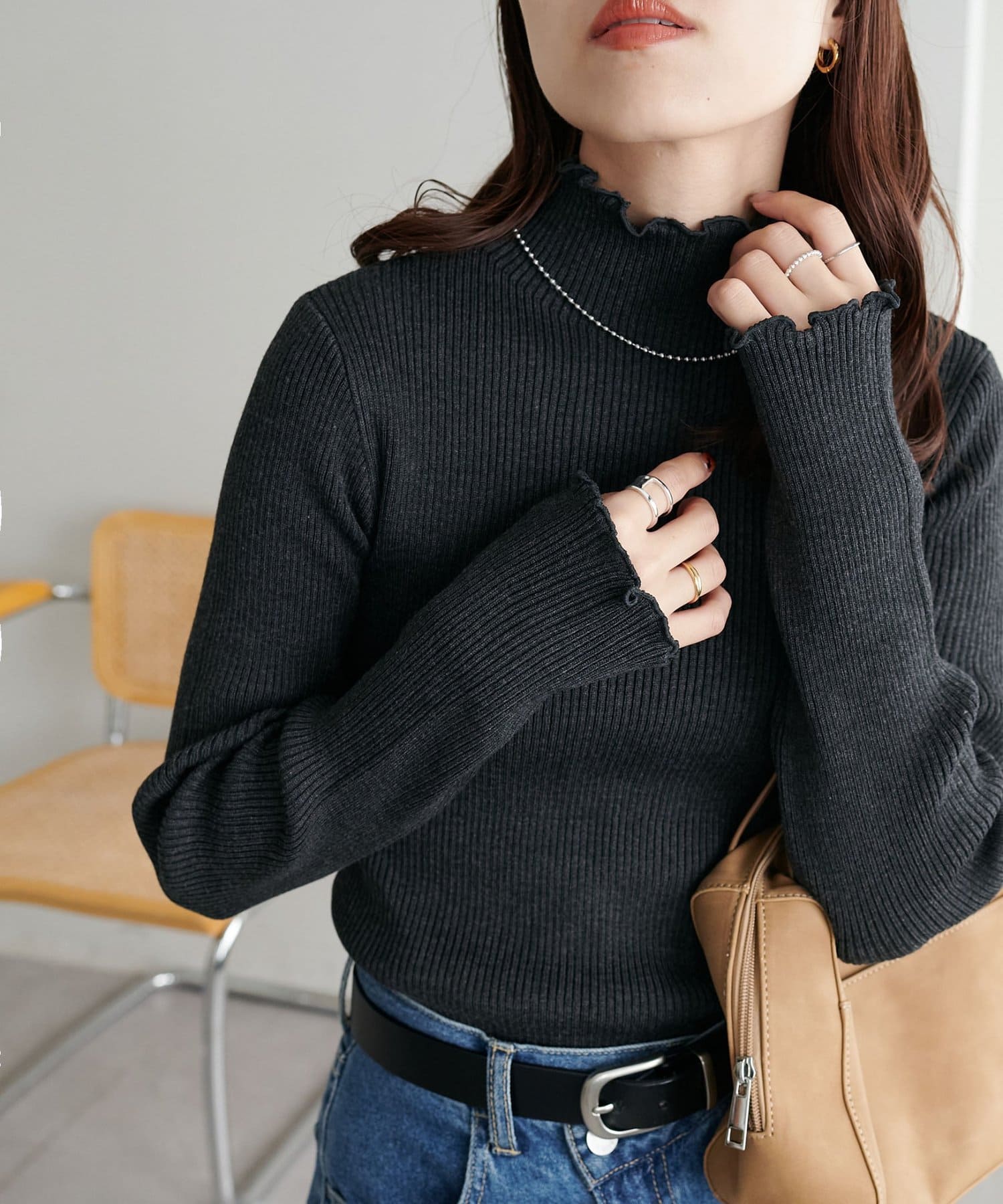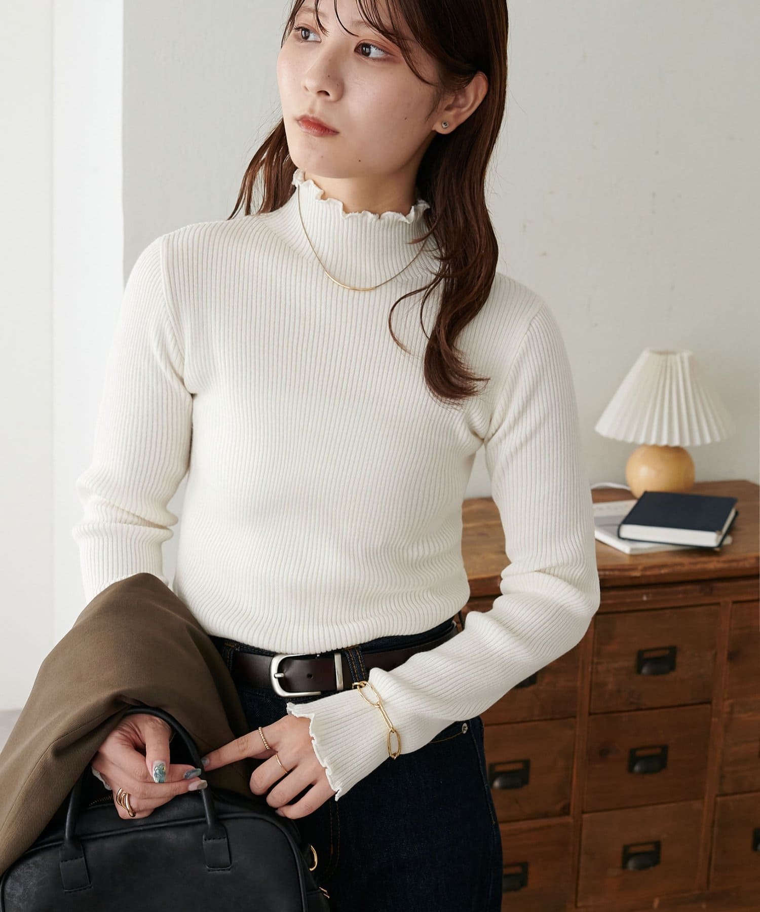 【着回し/万能インナー/WEB限定】ハイネックメローリブニット