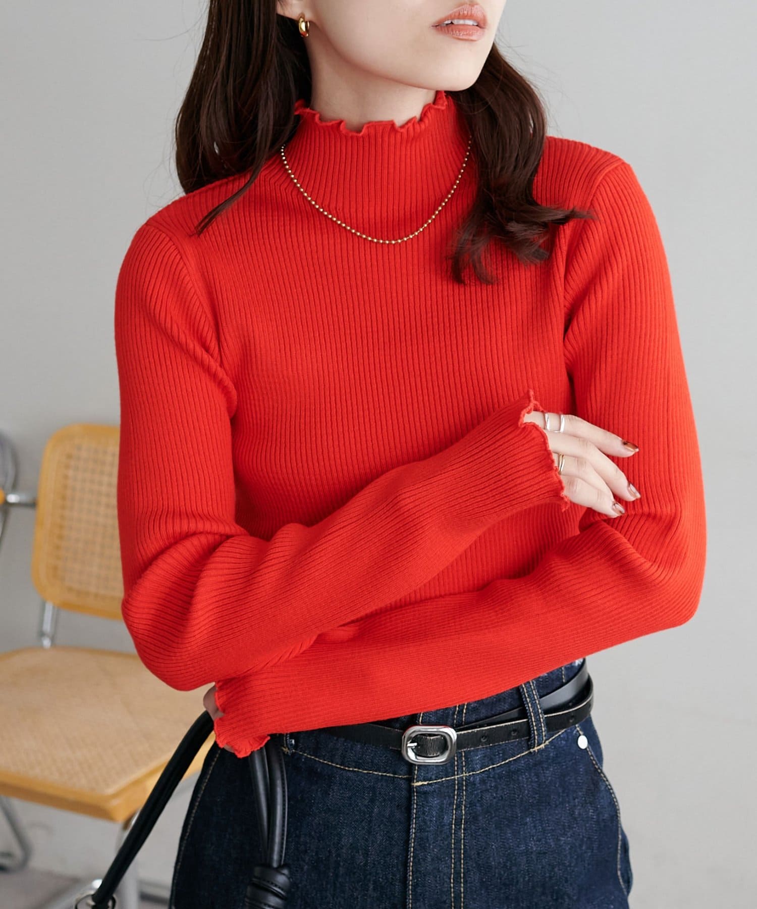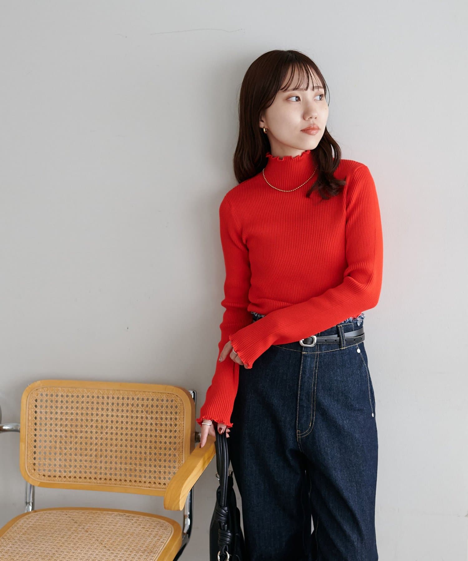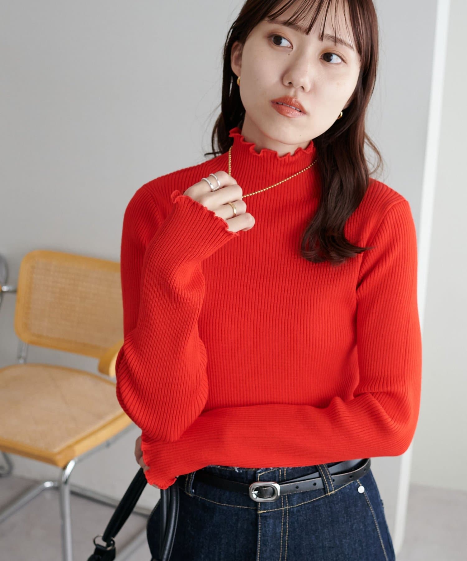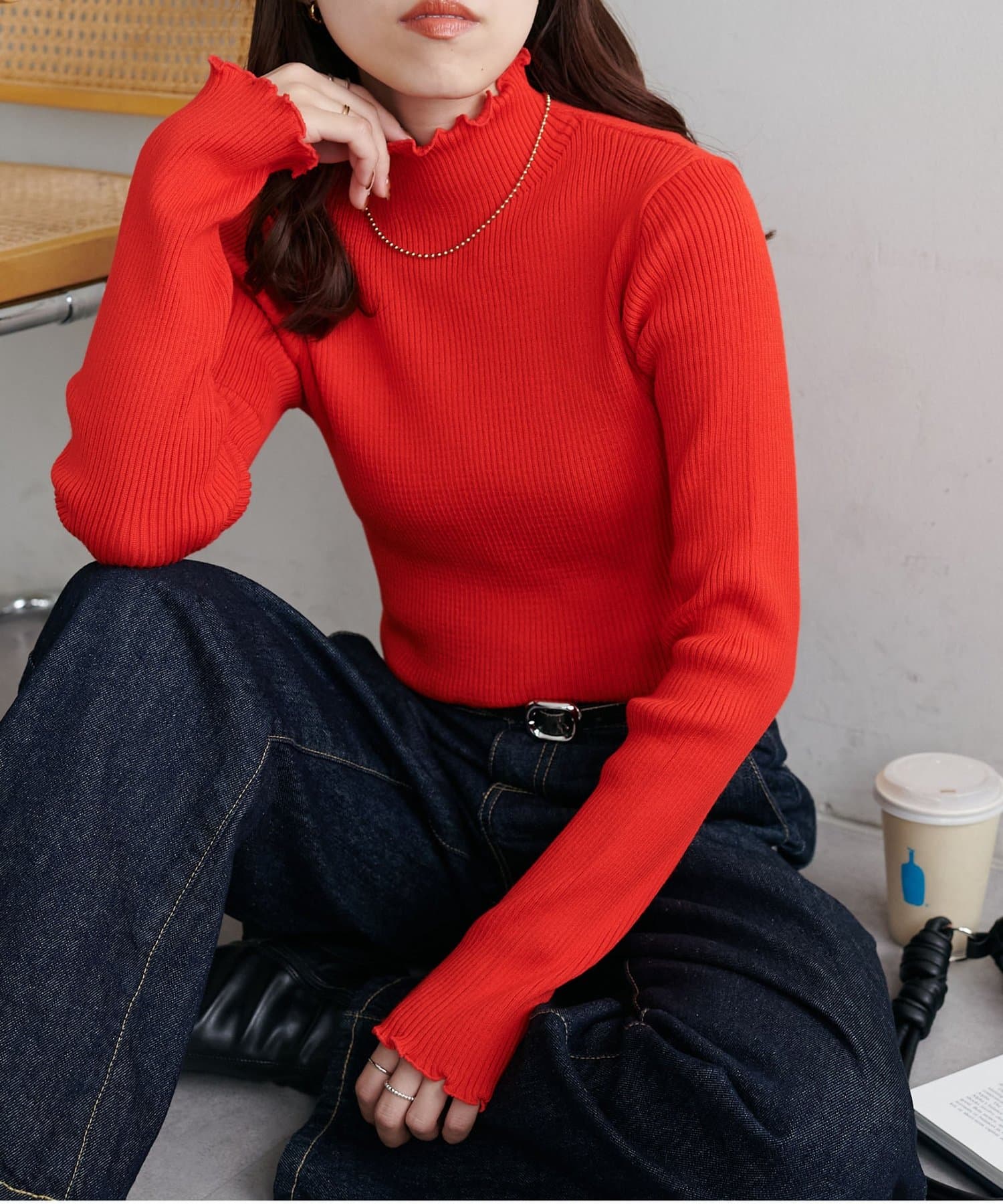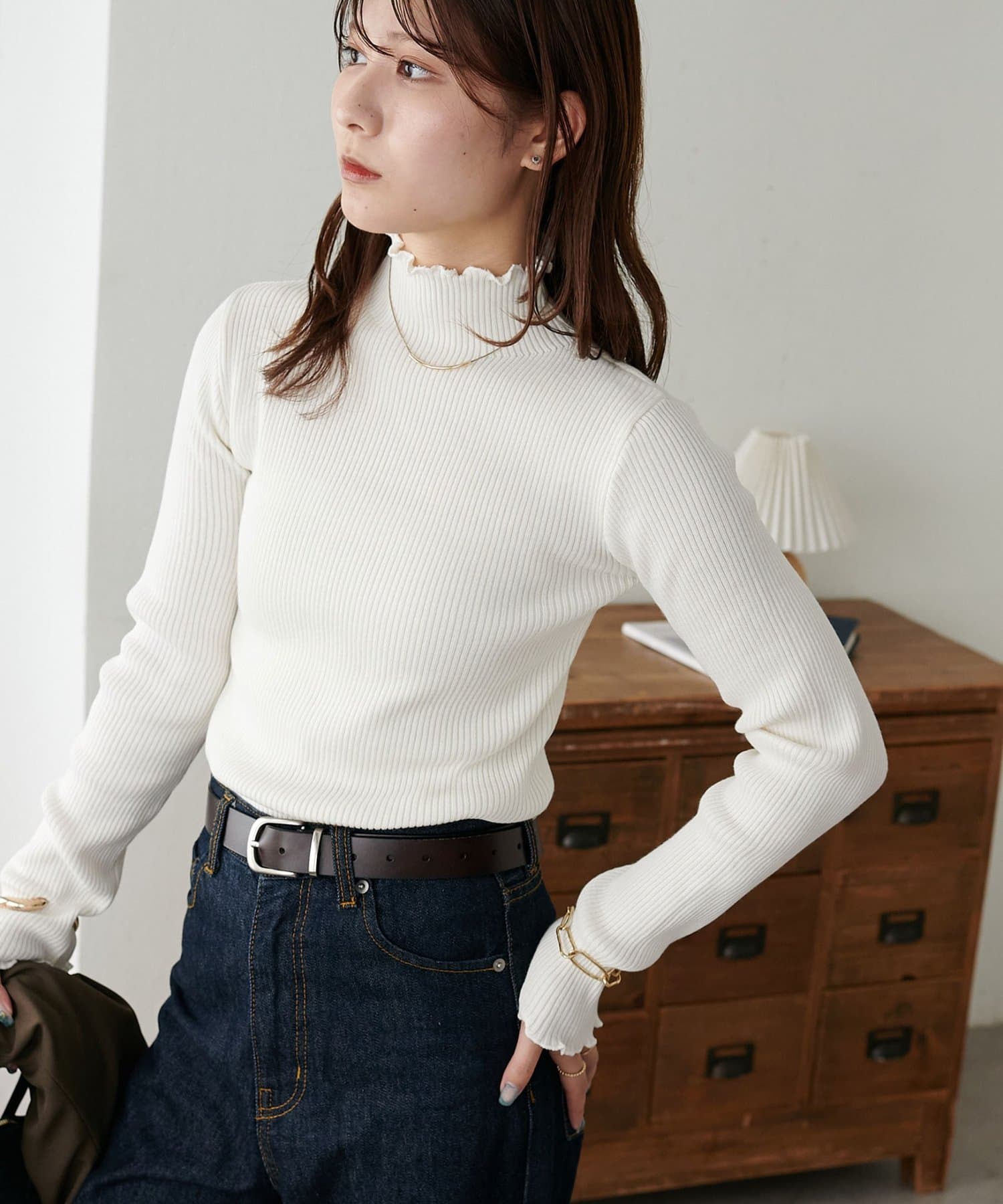 【着回し/万能インナー/WEB限定】ハイネックメローリブニット