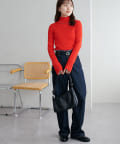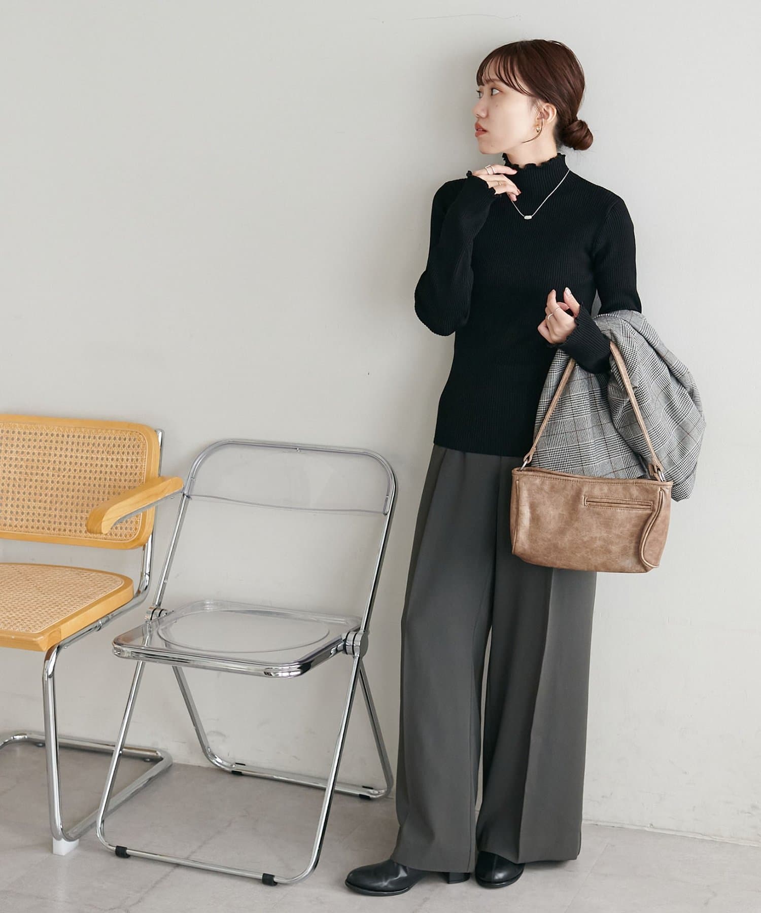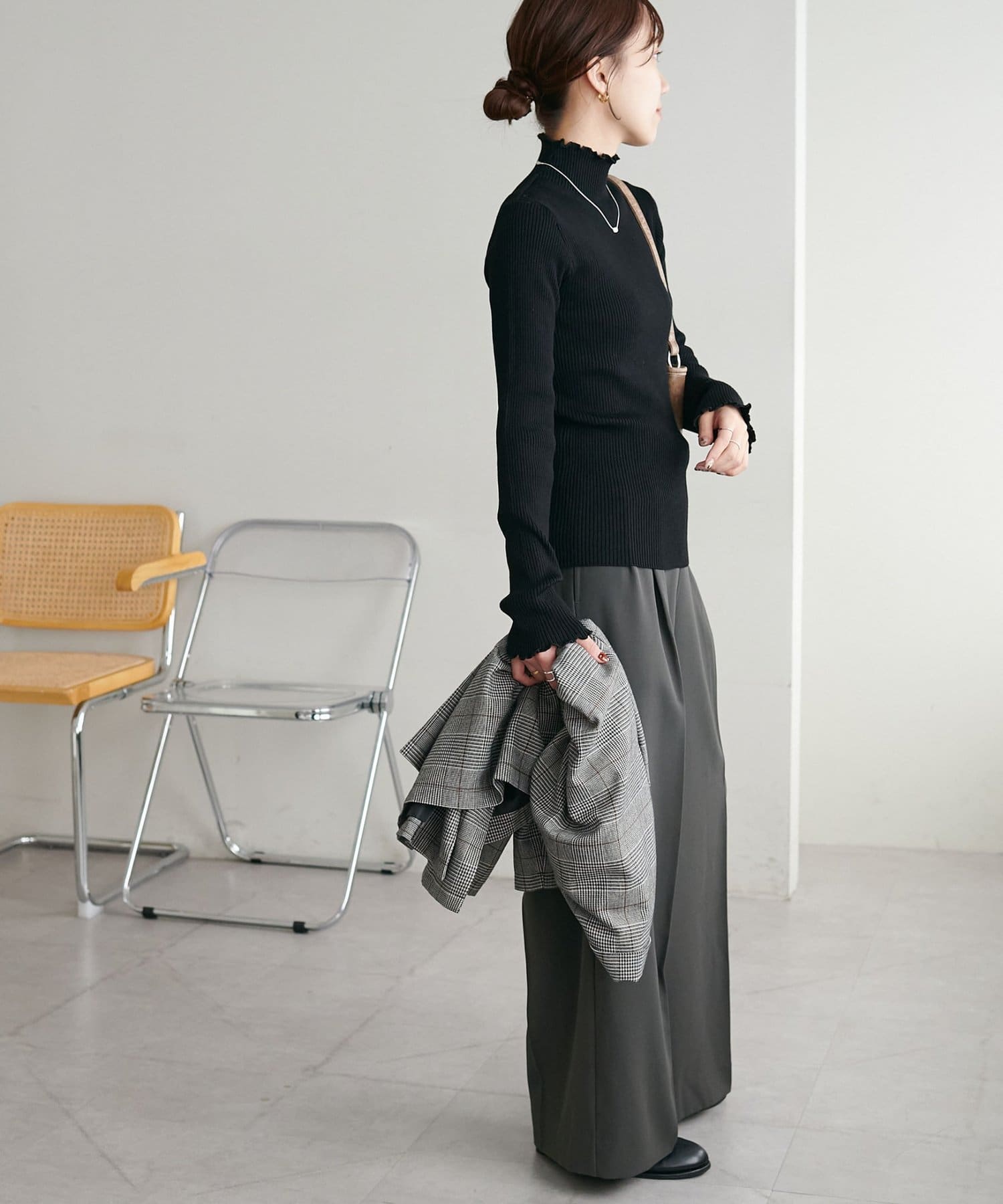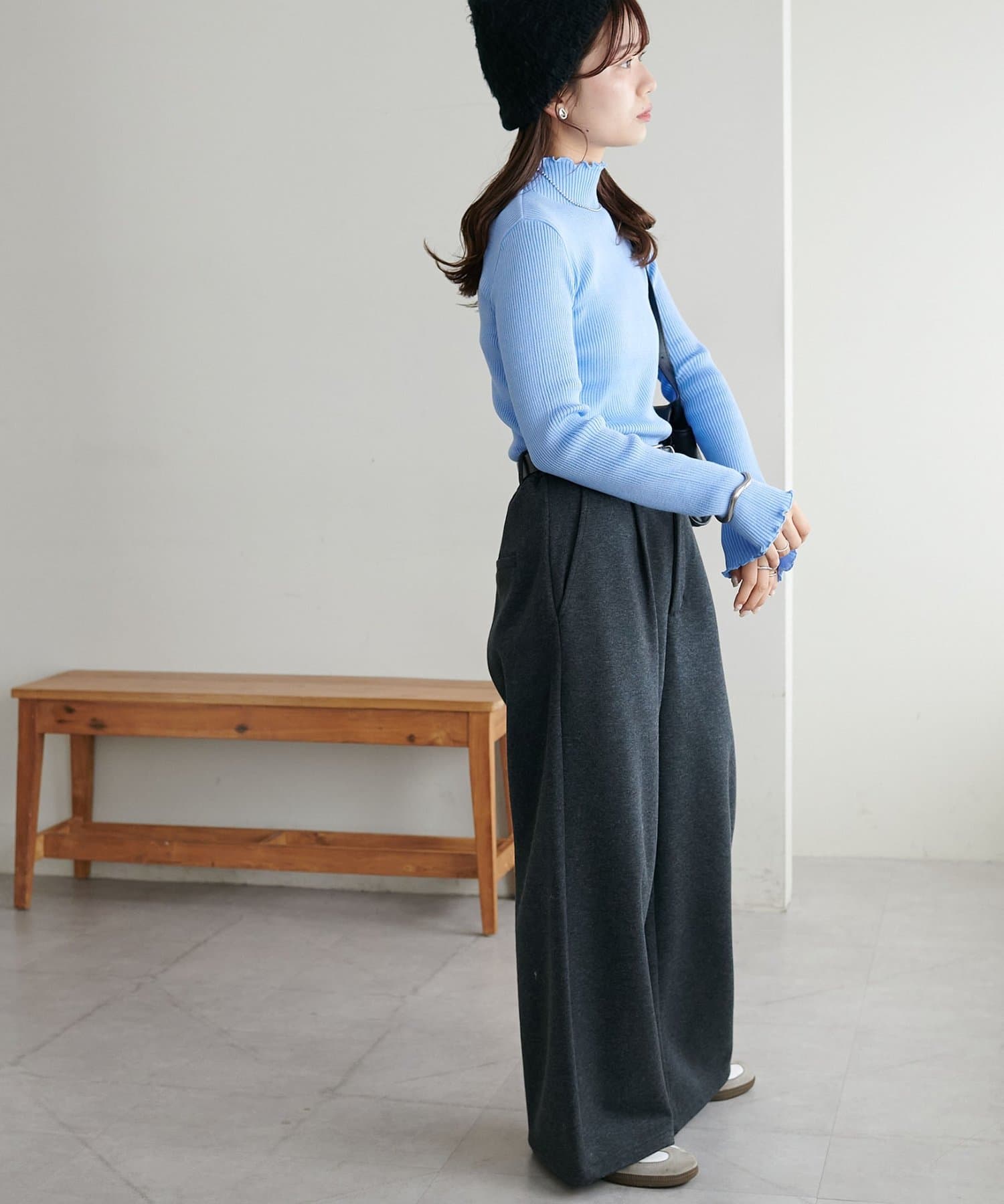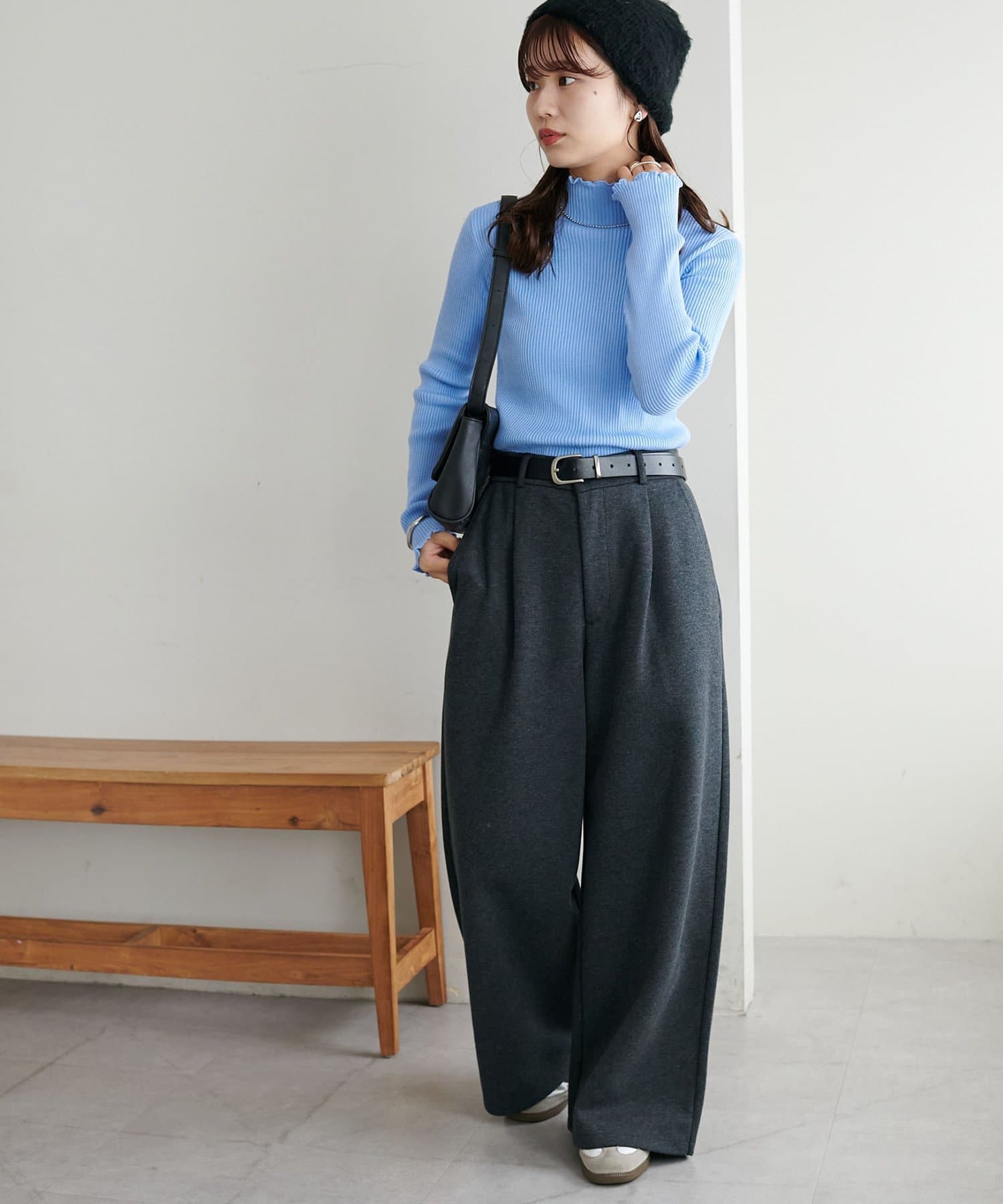 【着回し/万能インナー/WEB限定】ハイネックメローリブニット