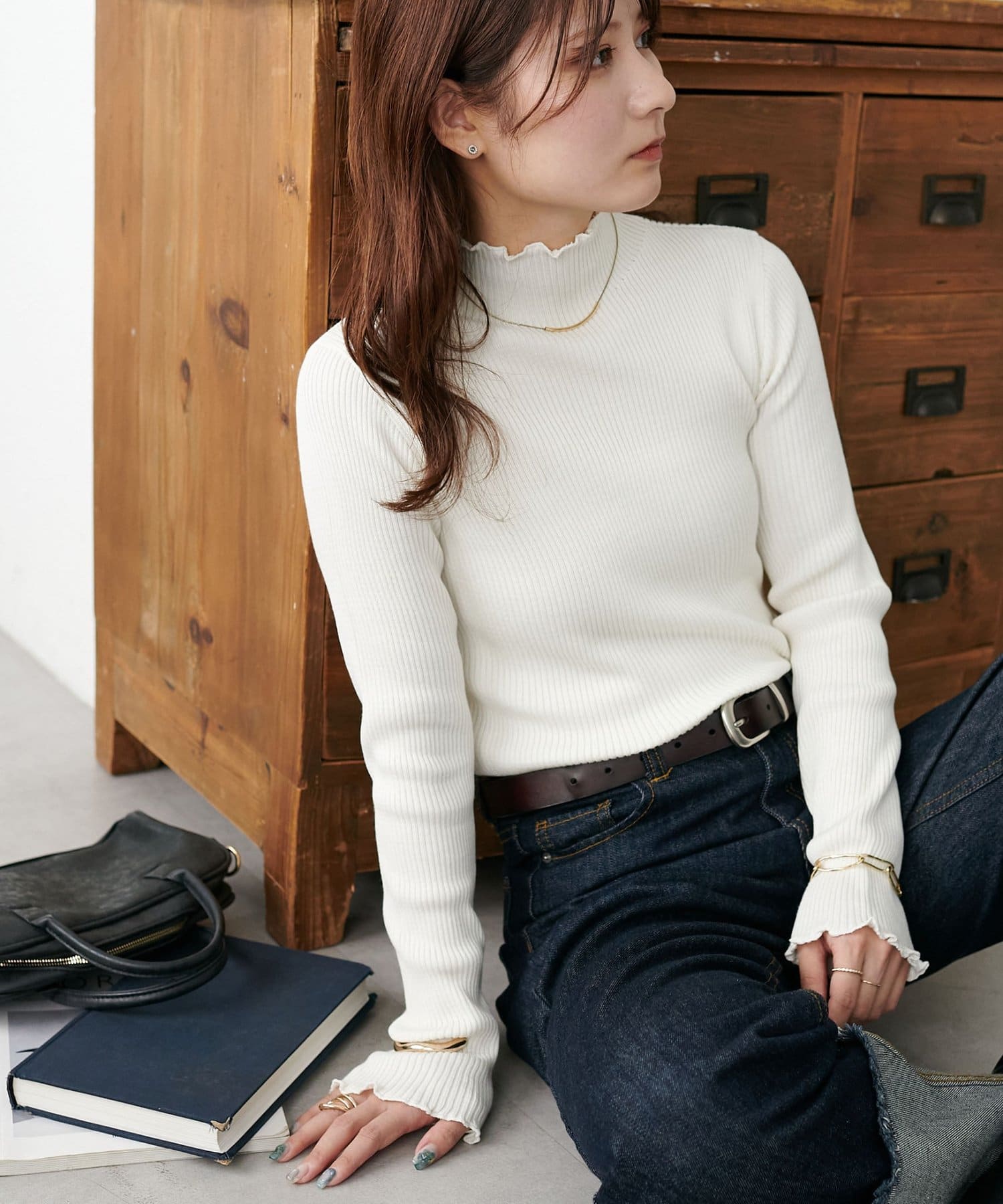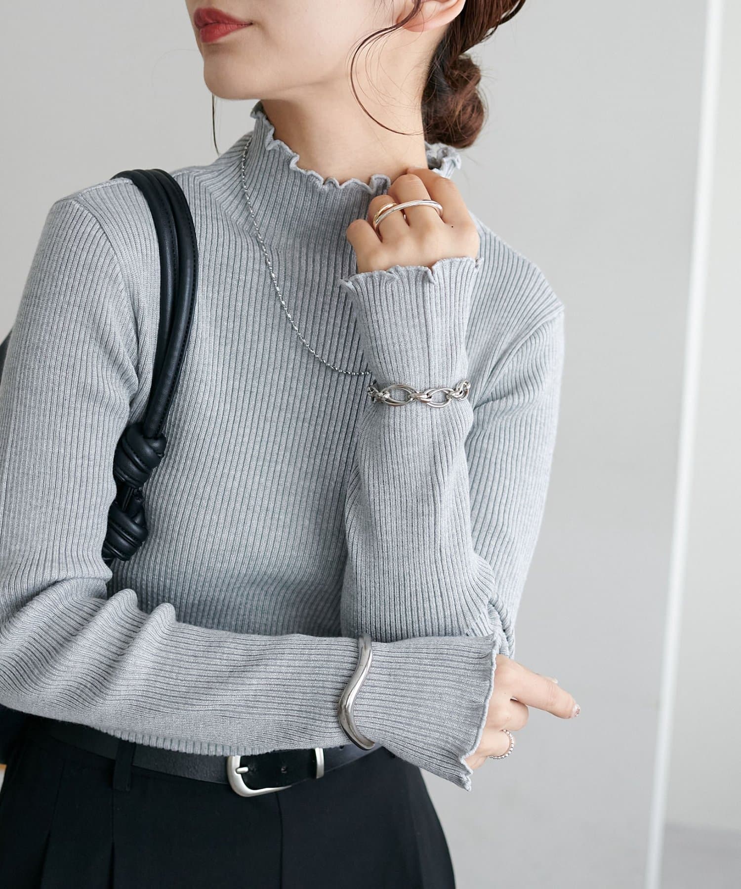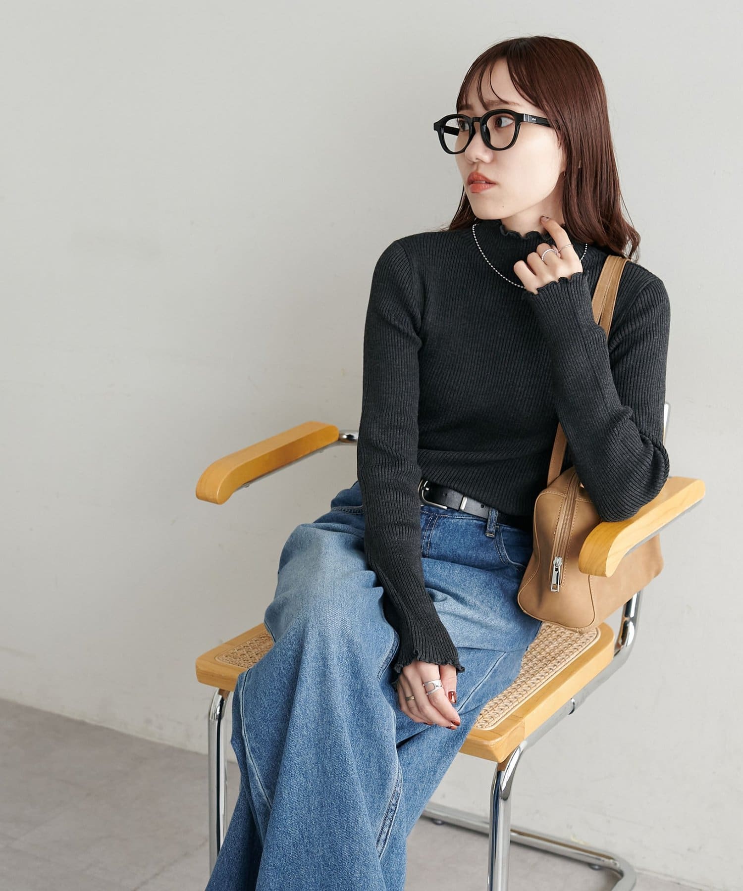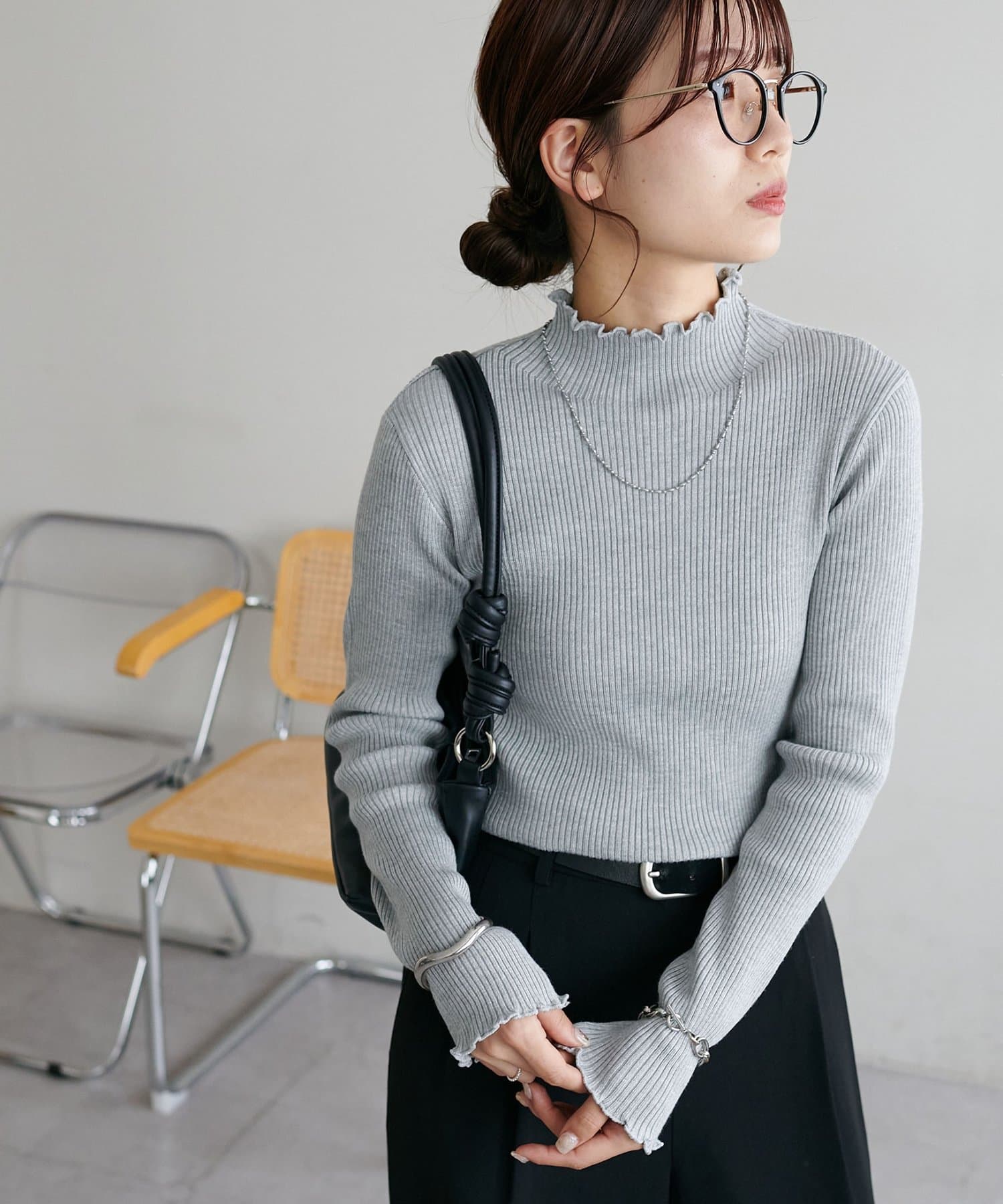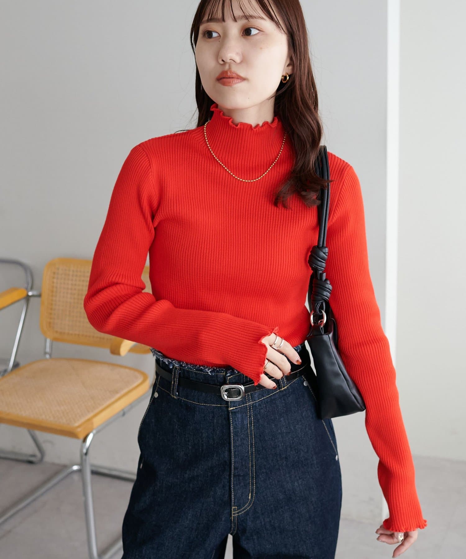 【着回し/万能インナー/WEB限定】ハイネックメローリブニット