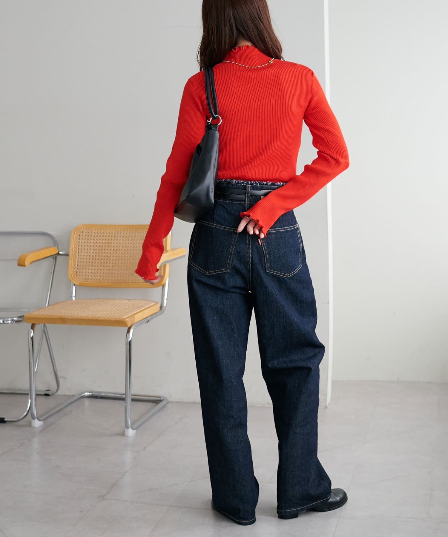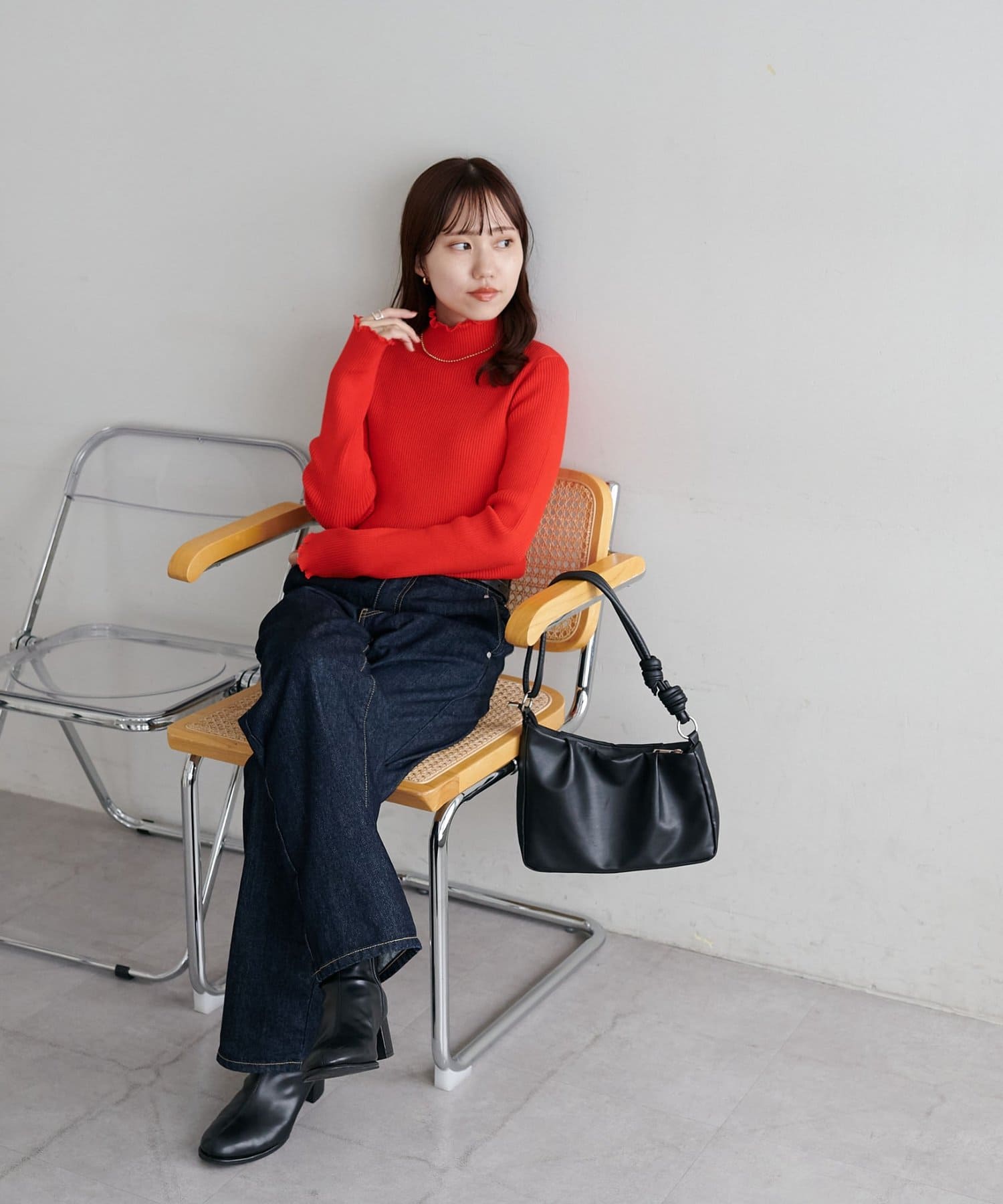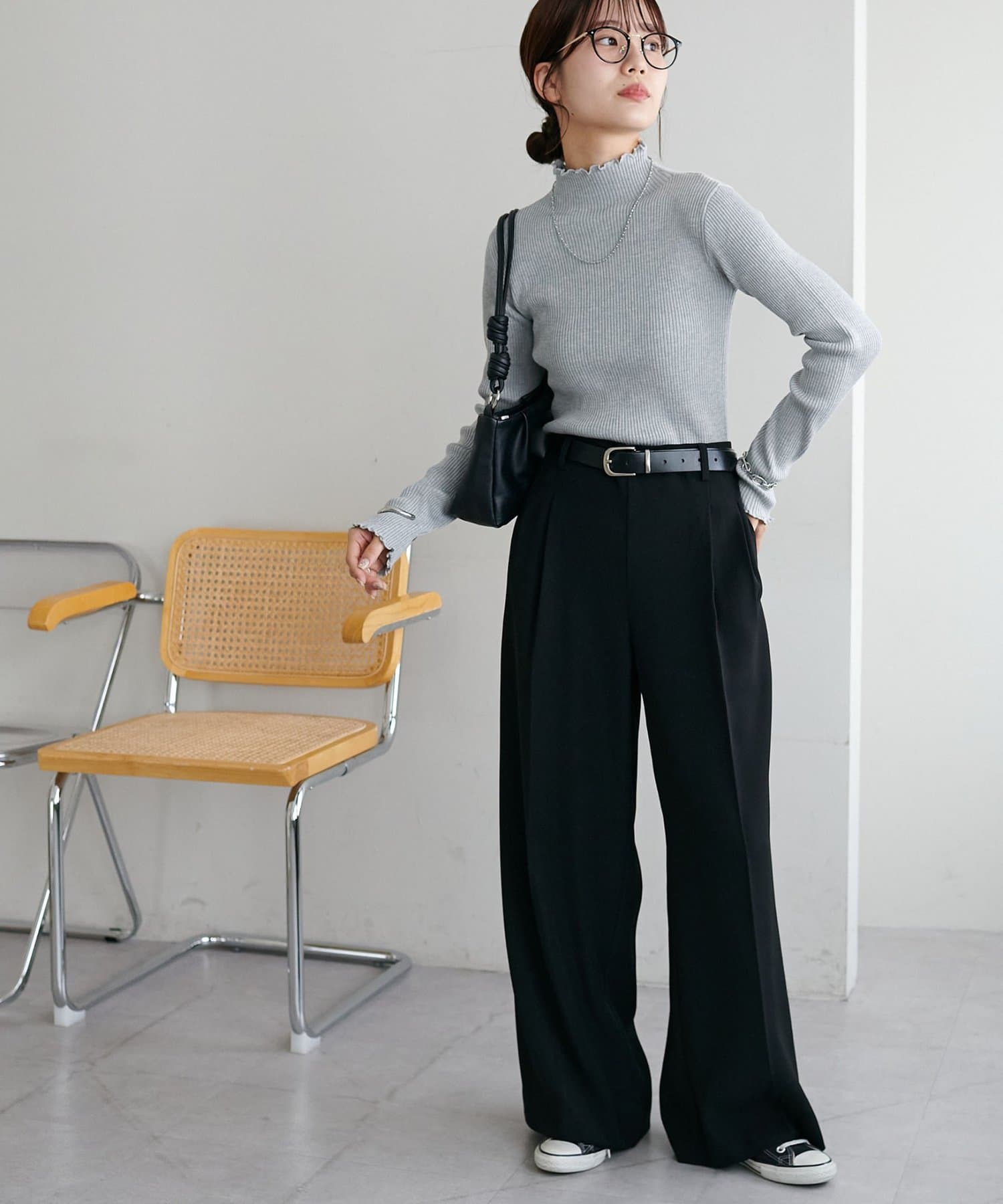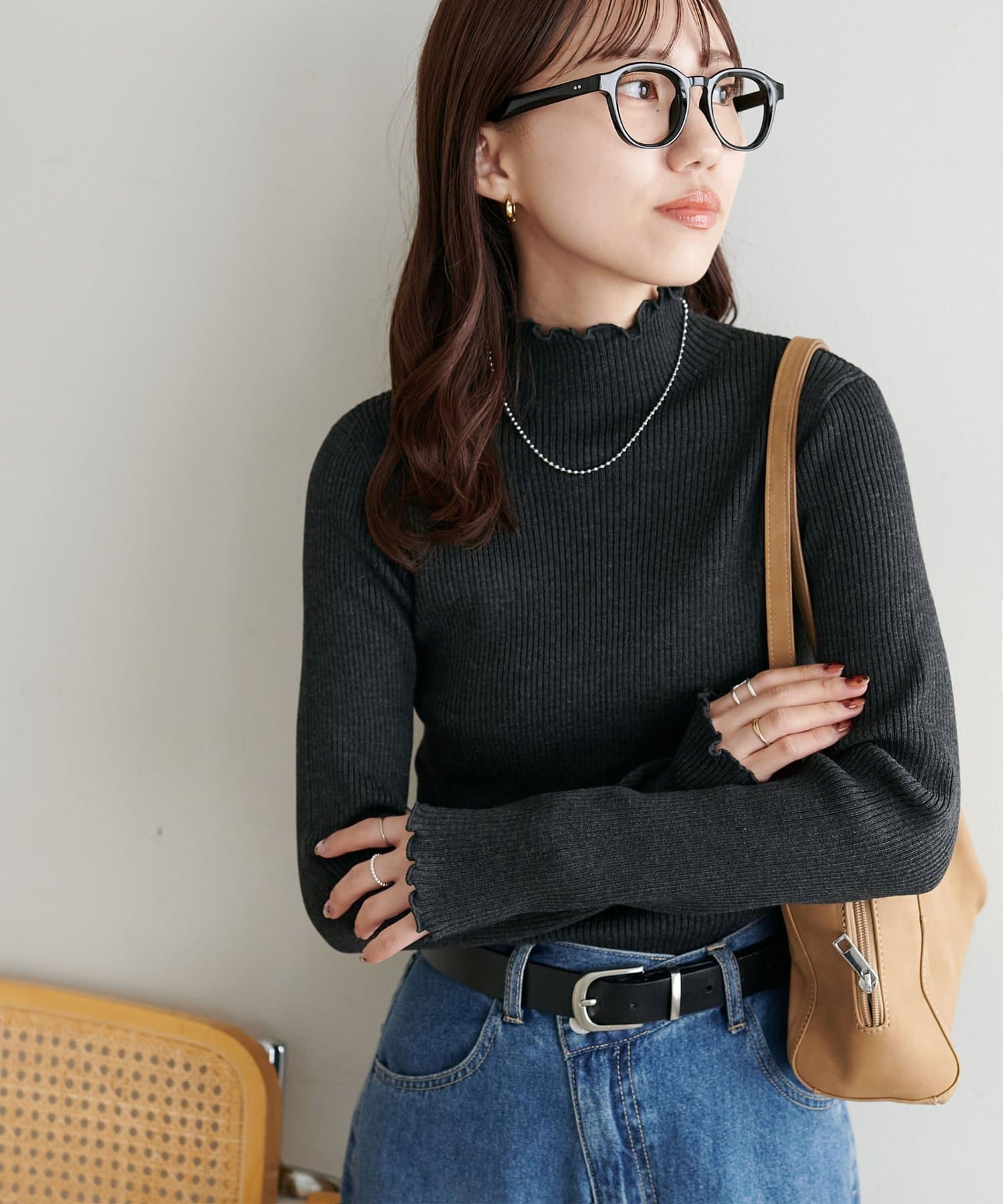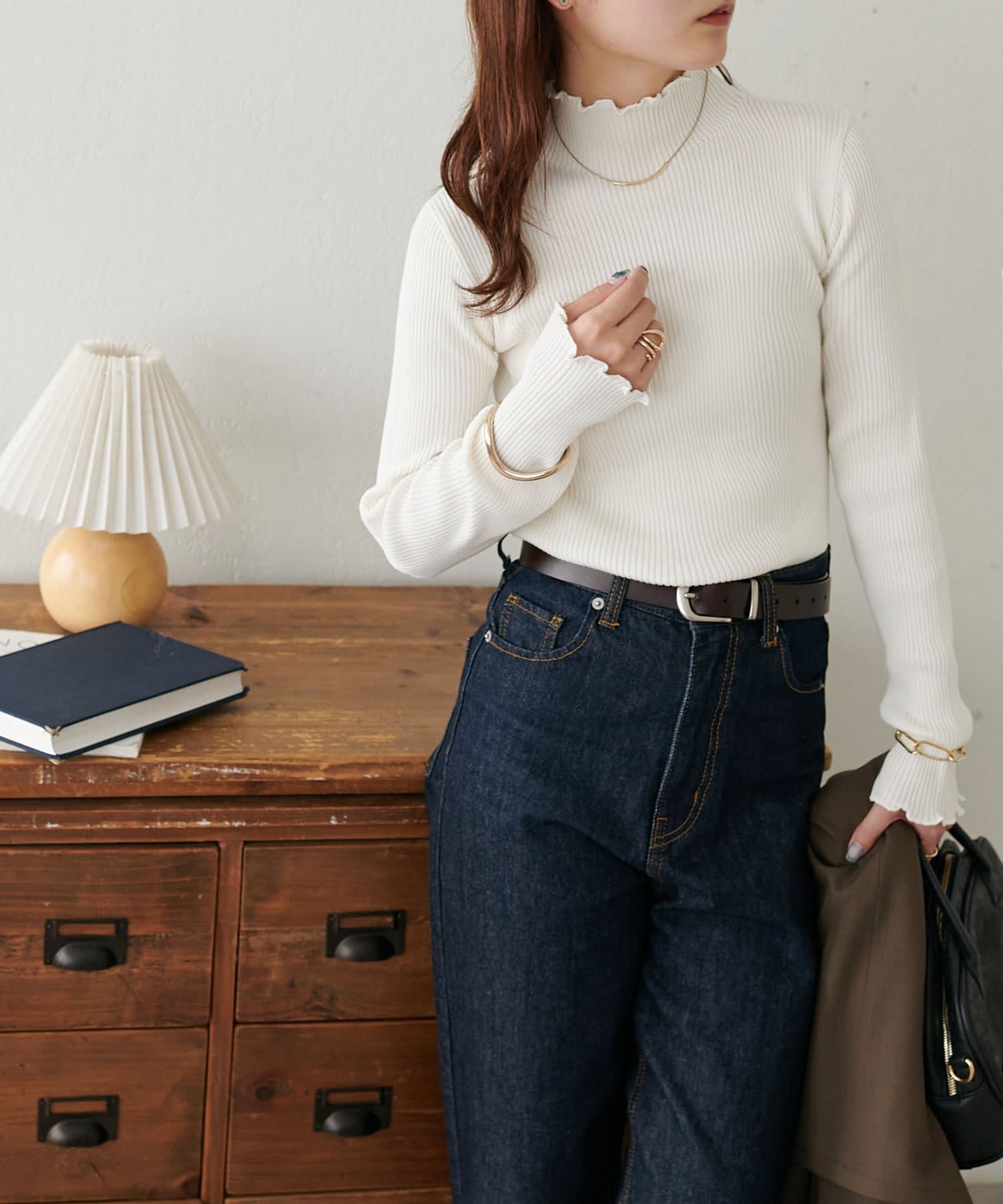 【着回し/万能インナー/WEB限定】ハイネックメローリブニット