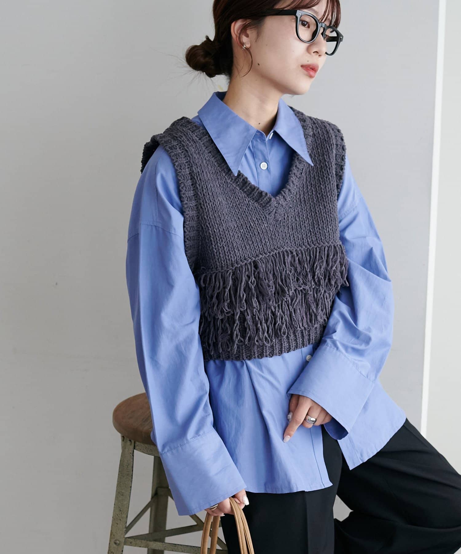 【主役級◎/ご好評につき新色追加!/着回し万能】Vネックフリンジベスト《WEB限定》