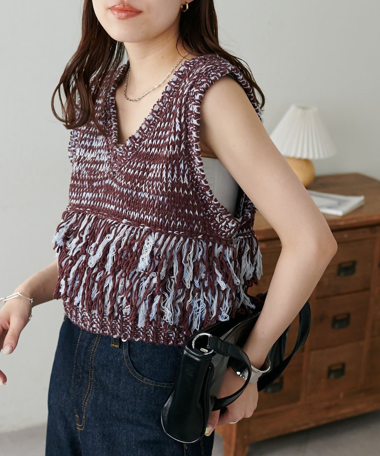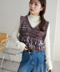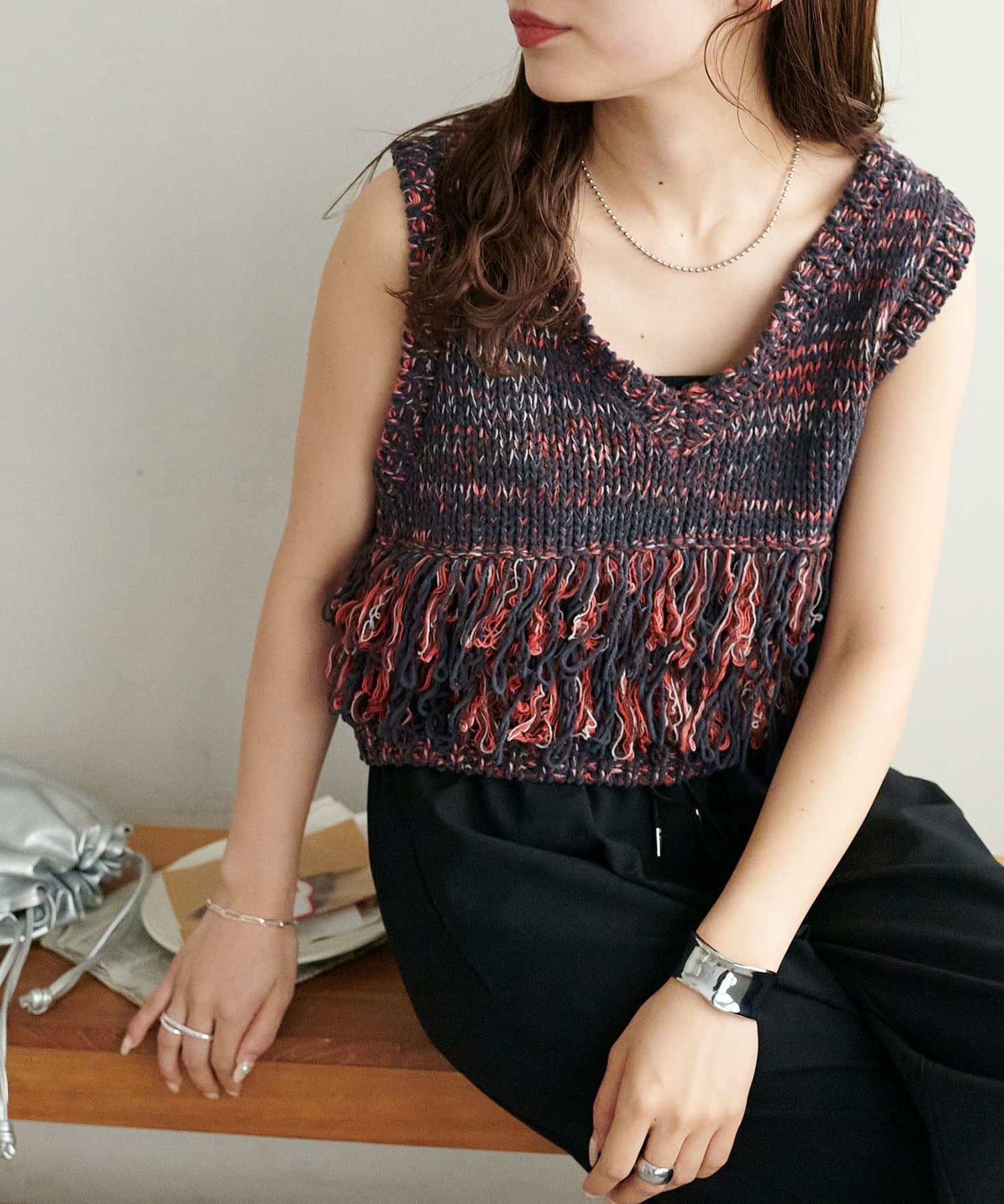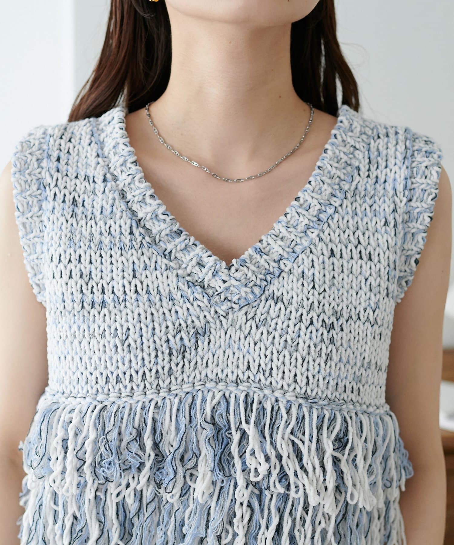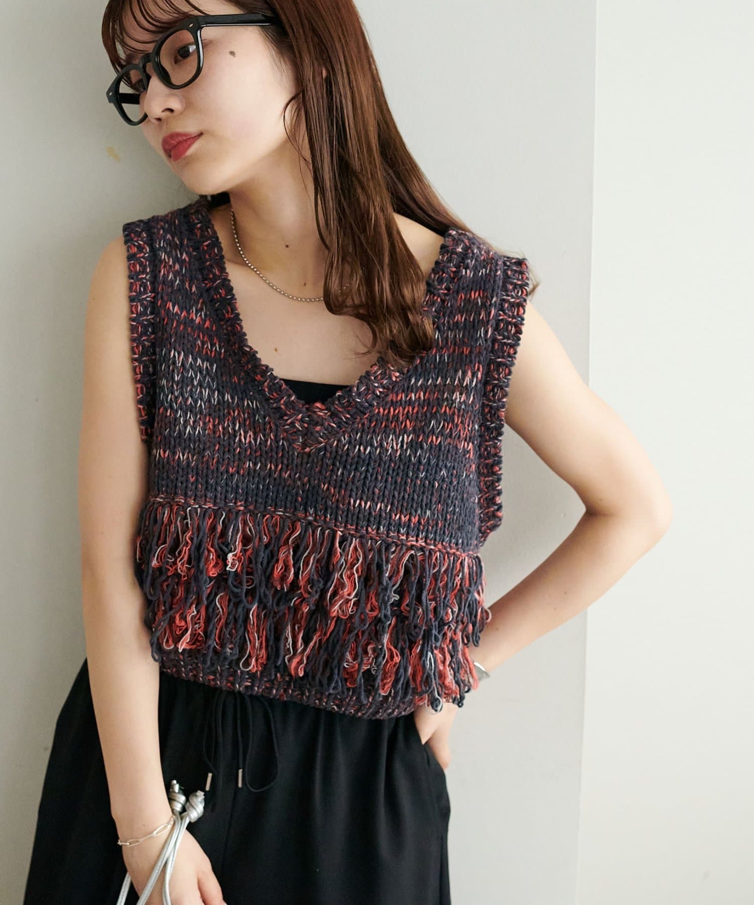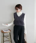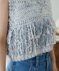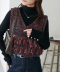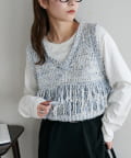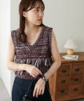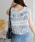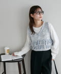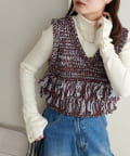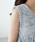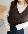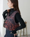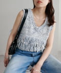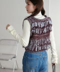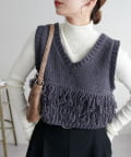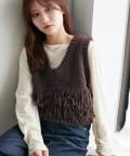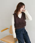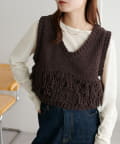 立体感のあるフリンジが目をひくVネックベスト。
