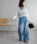 コンパクト丈なのでボリュームのあるボトムスともバランスよく、ワイドパンツやフレアスカートとの相性も◎。
