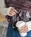 160cmスタッフ(Fサイズ着用):ハイウエストのボトムと合わせると、バランスよく着られます。
