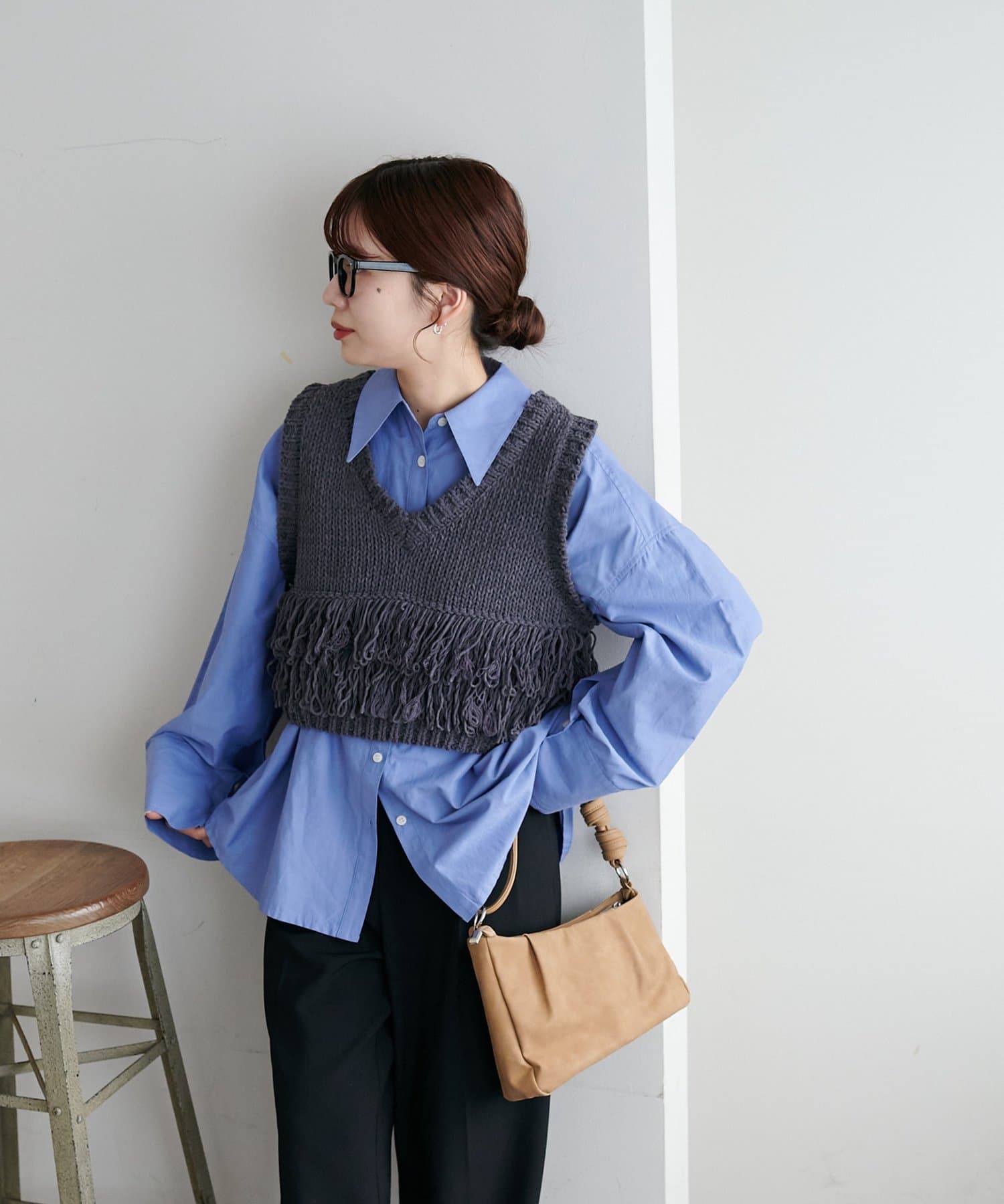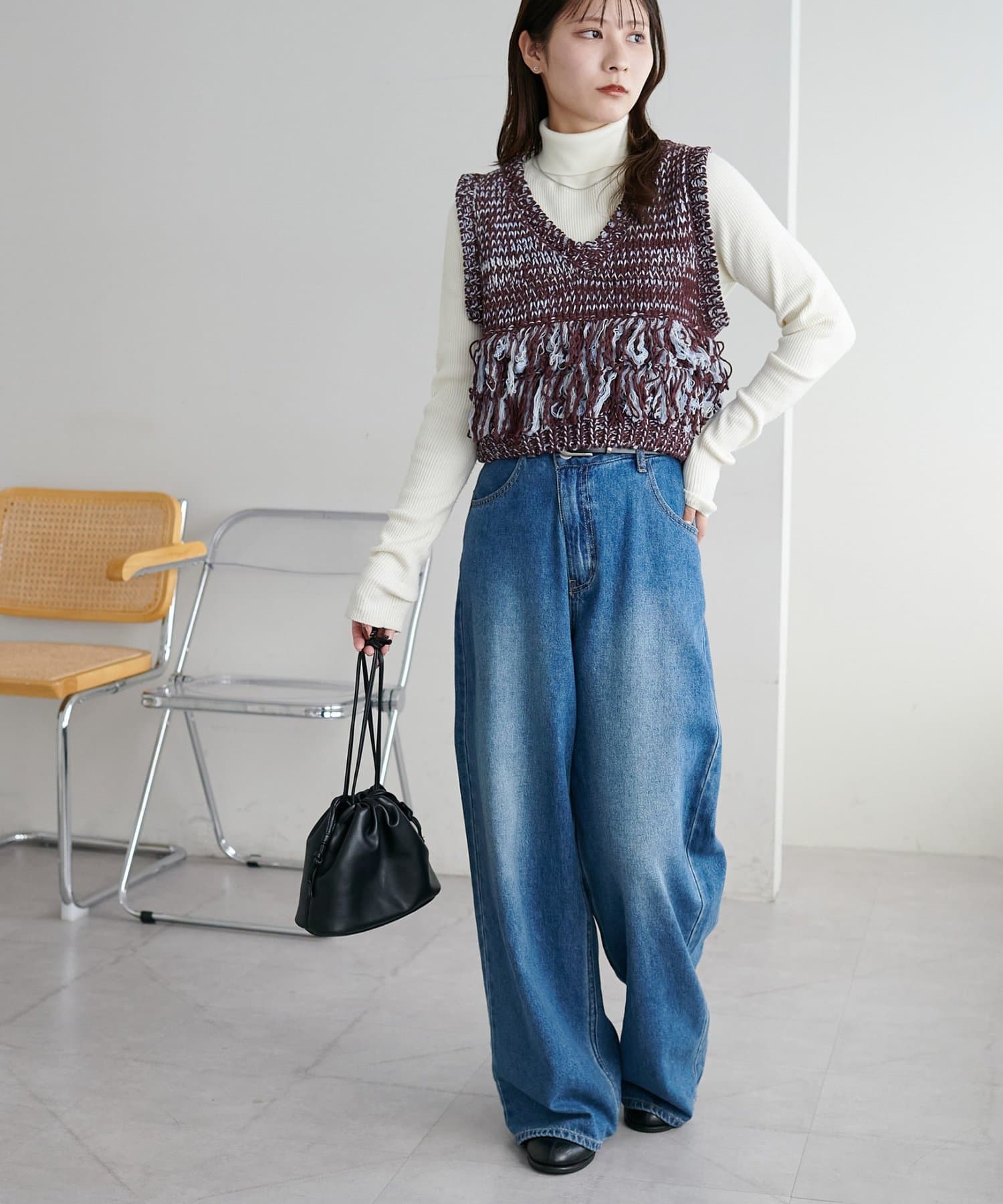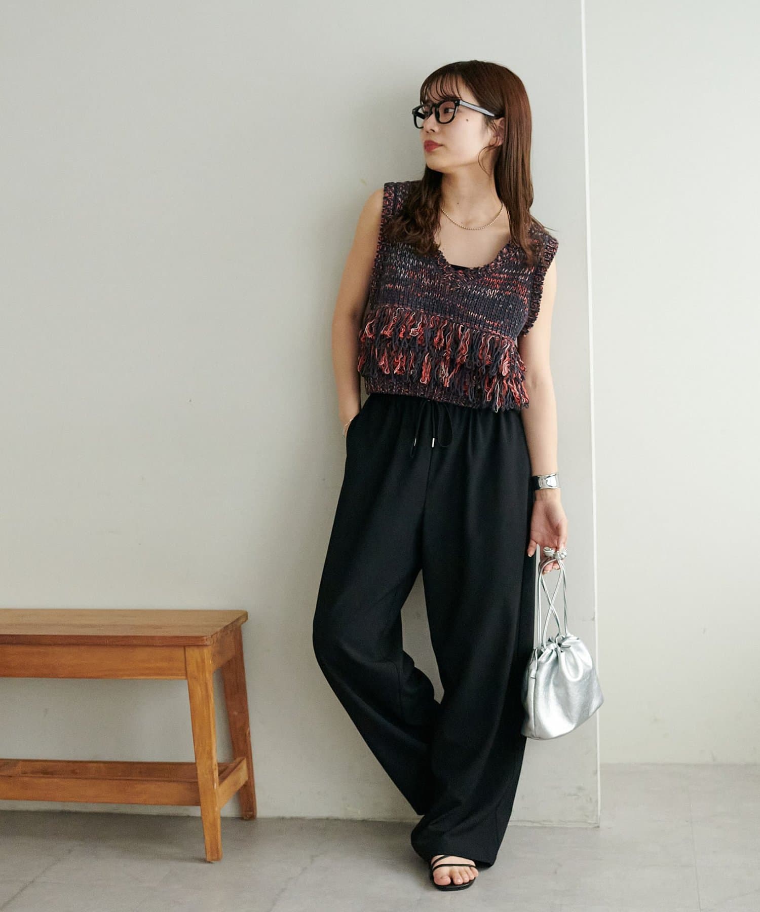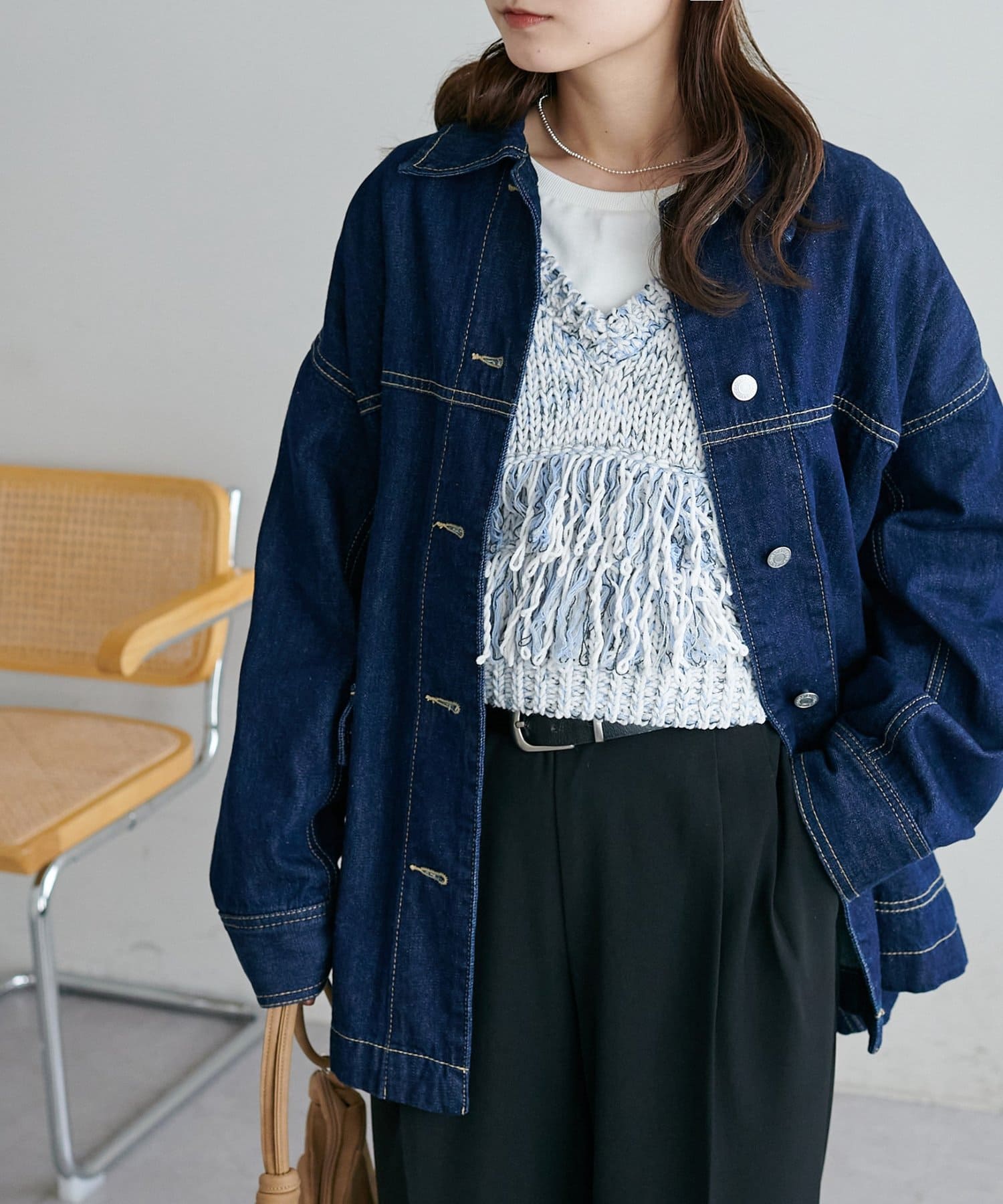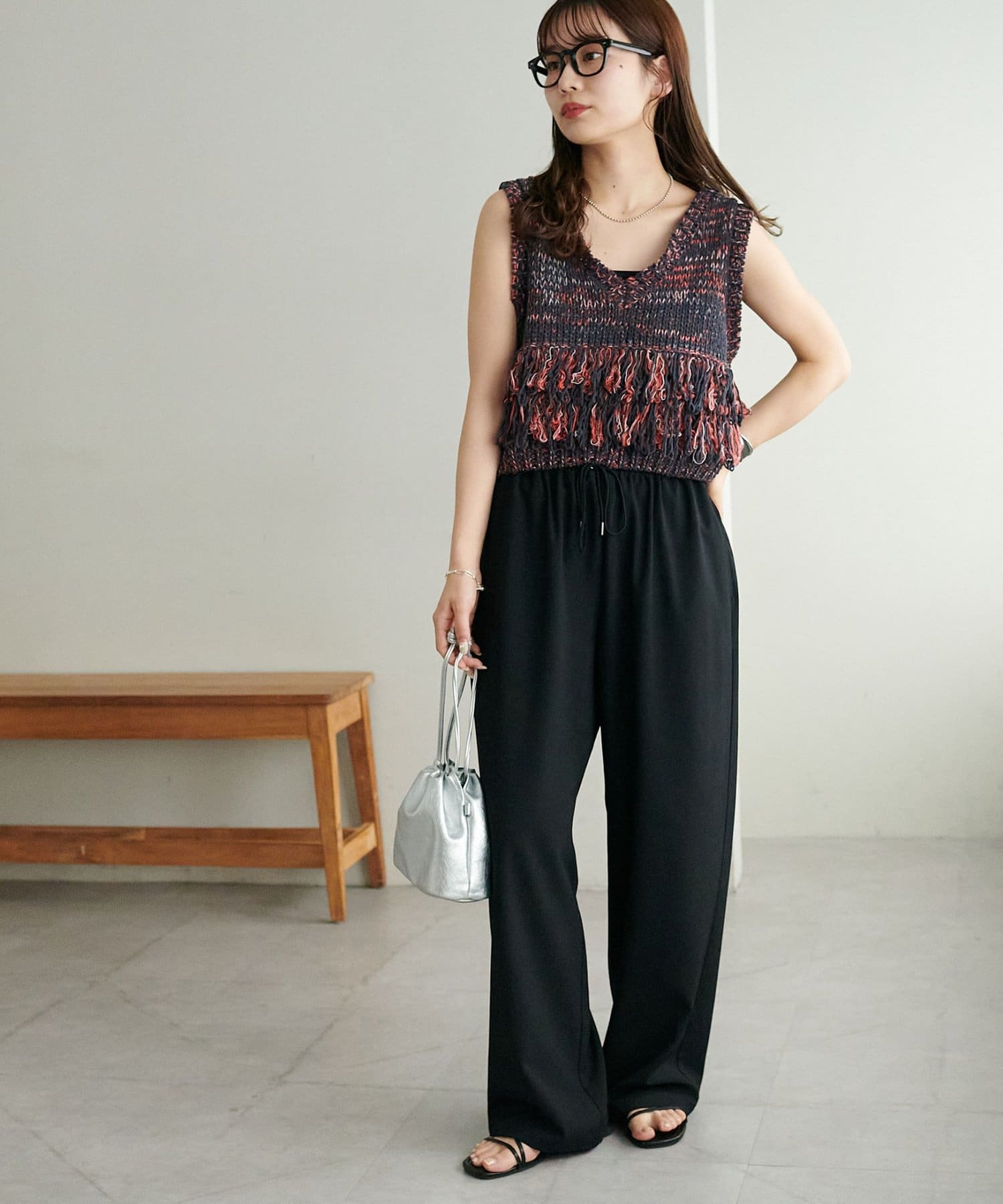 裾のフリンジが揺れて動きが出るので、シンプルなコーデも華やかに仕上がるのが◎
