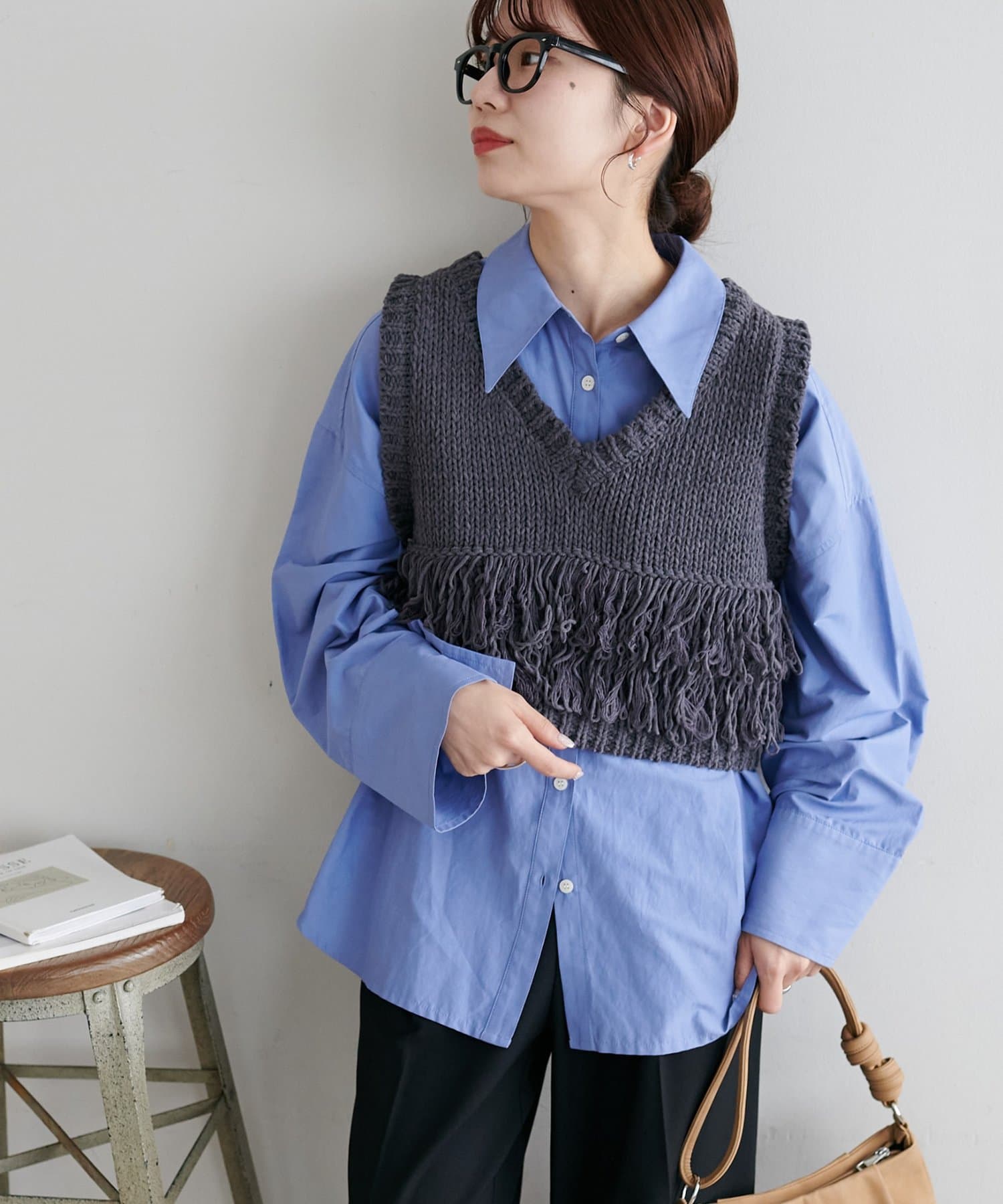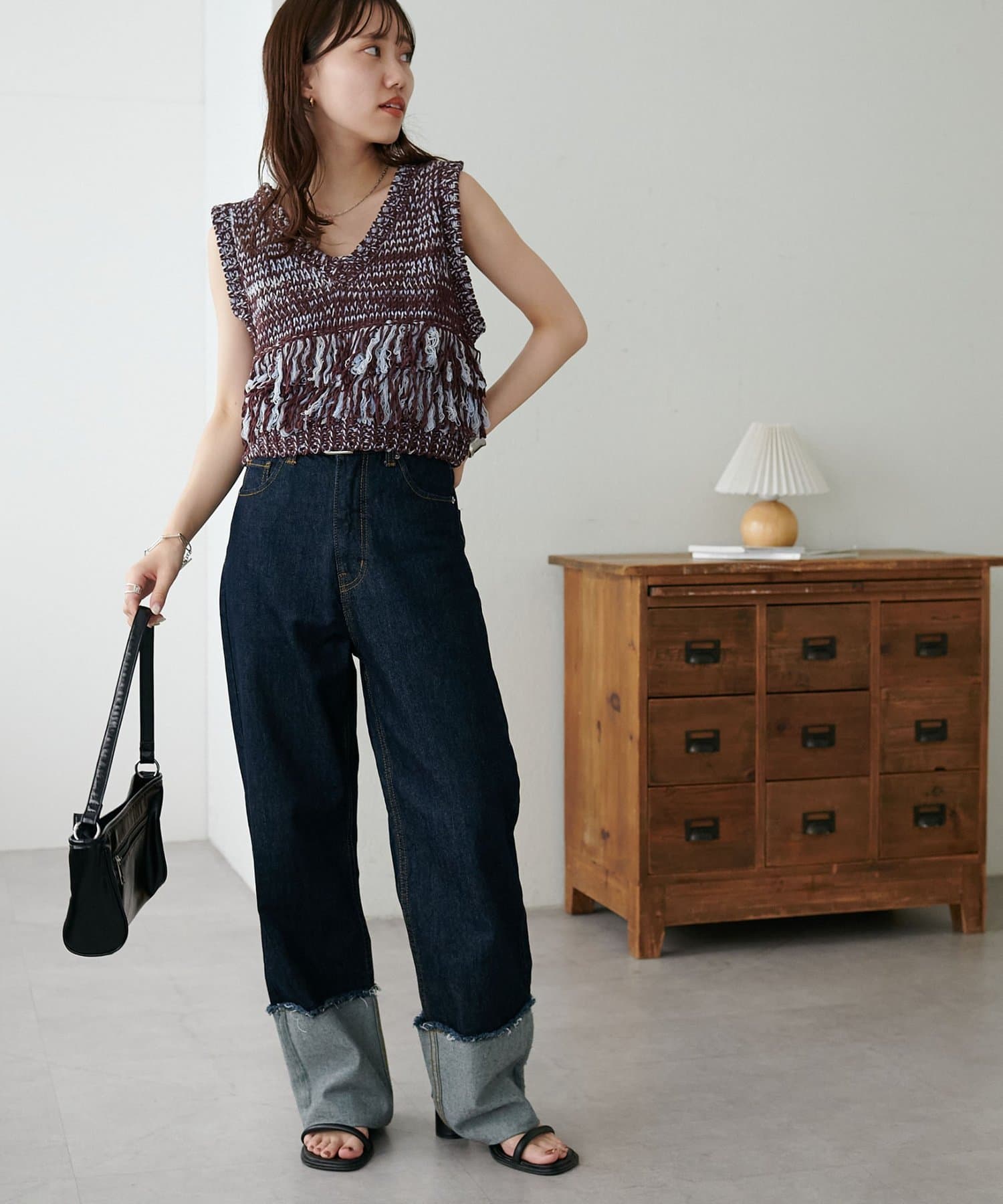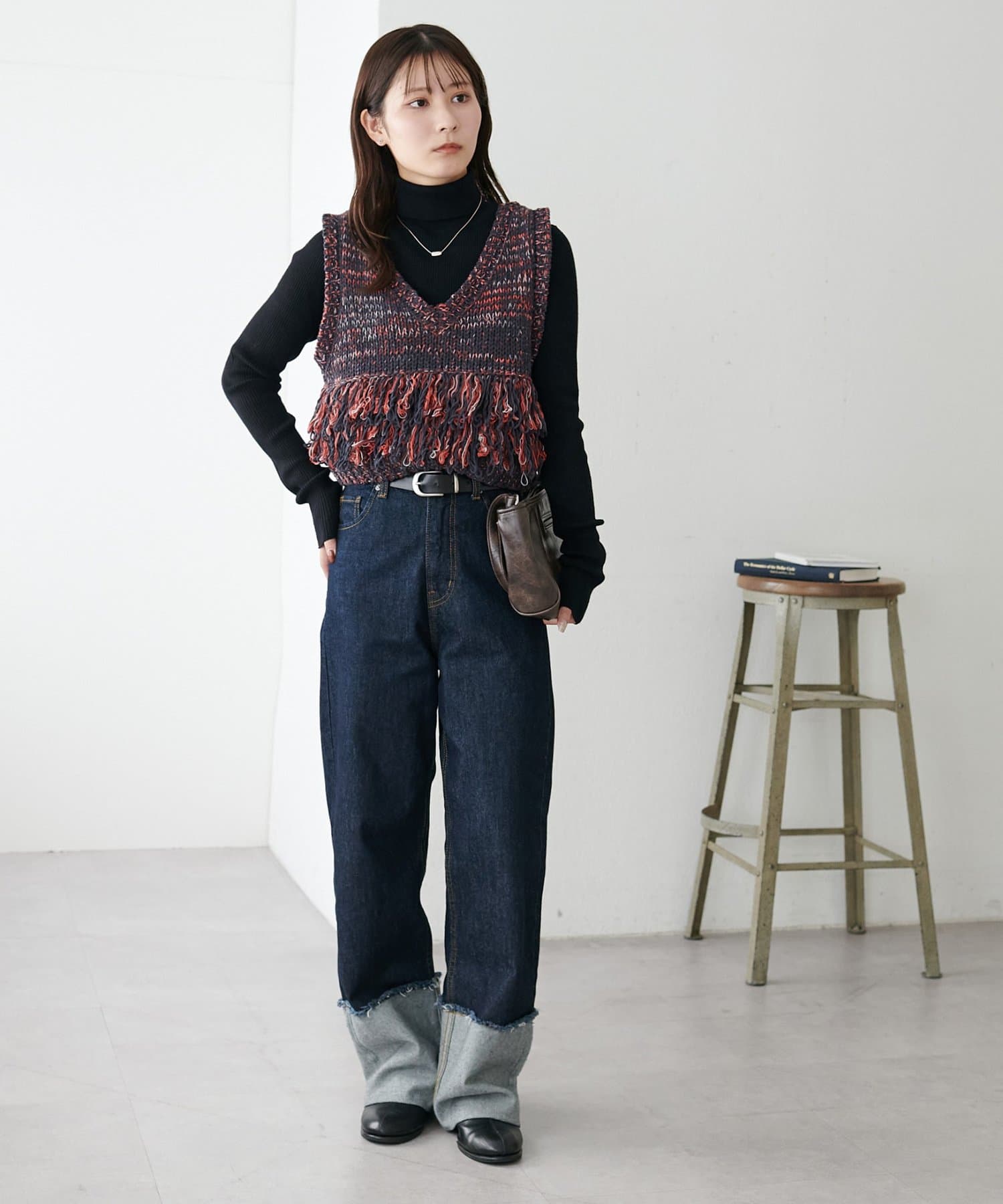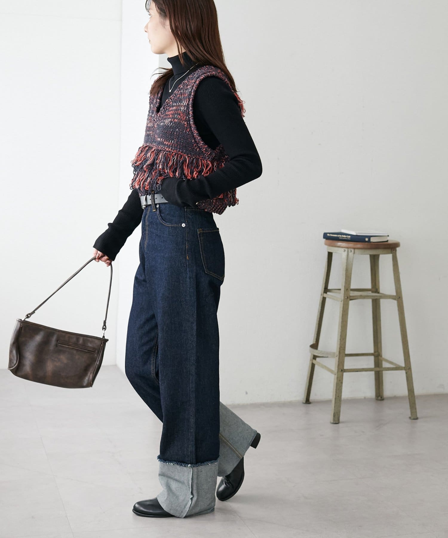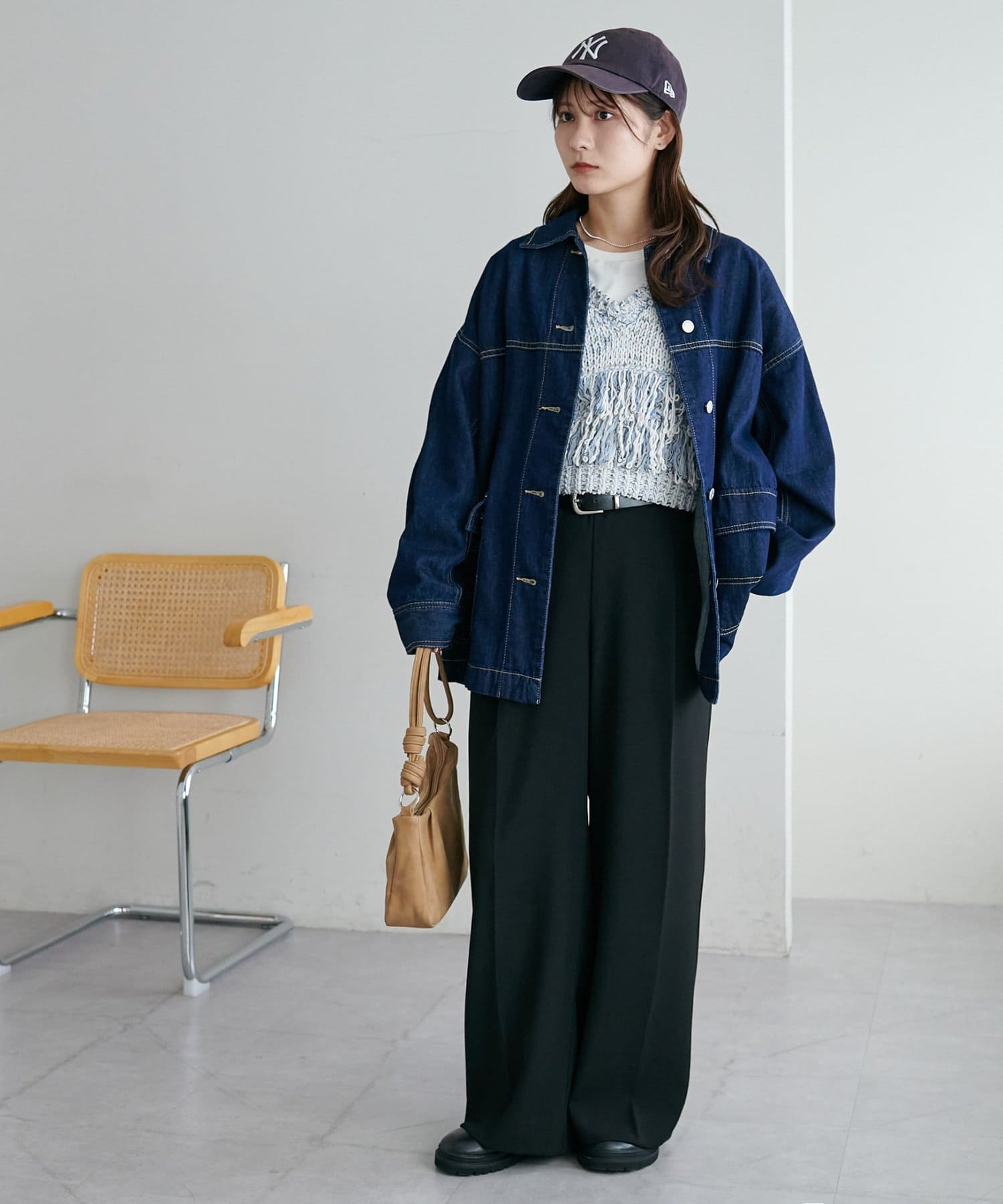 裾のフリンジが揺れて動きが出るので、シンプルなコーデも華やかに仕上がるのが◎