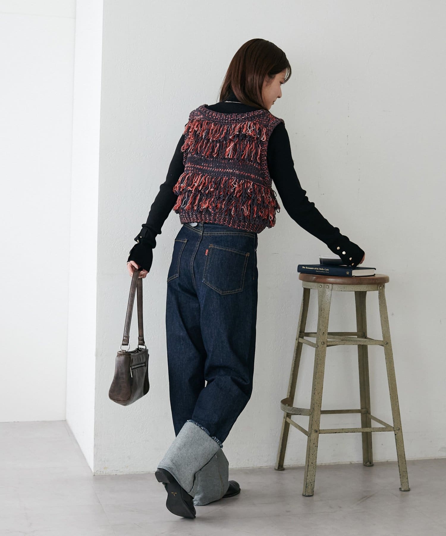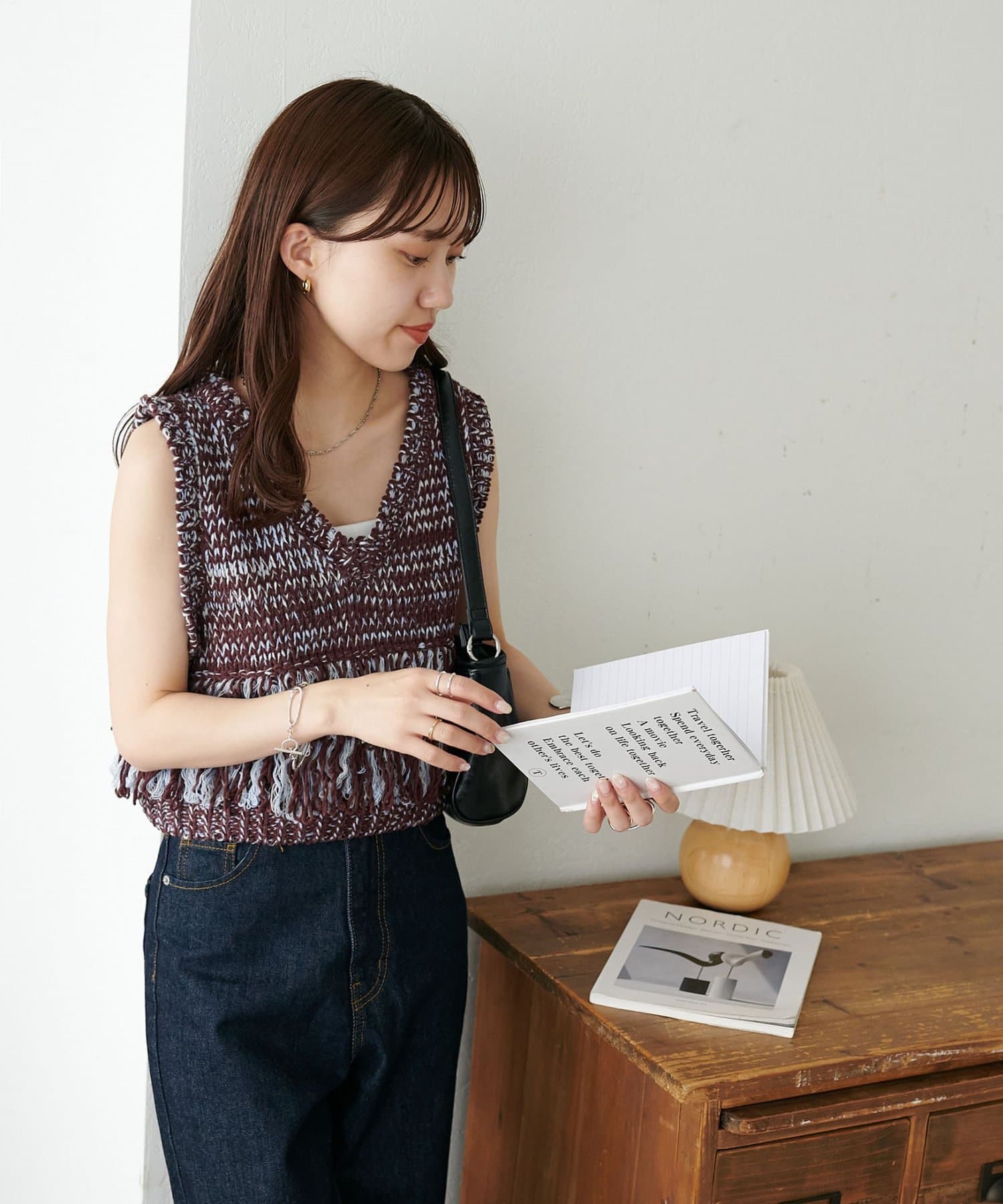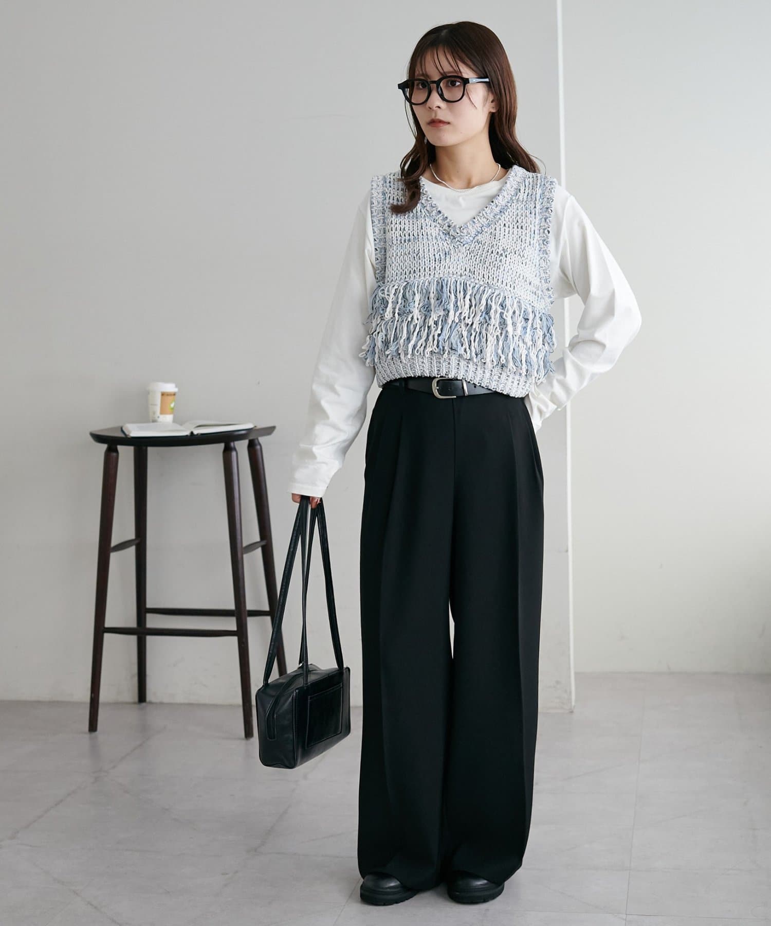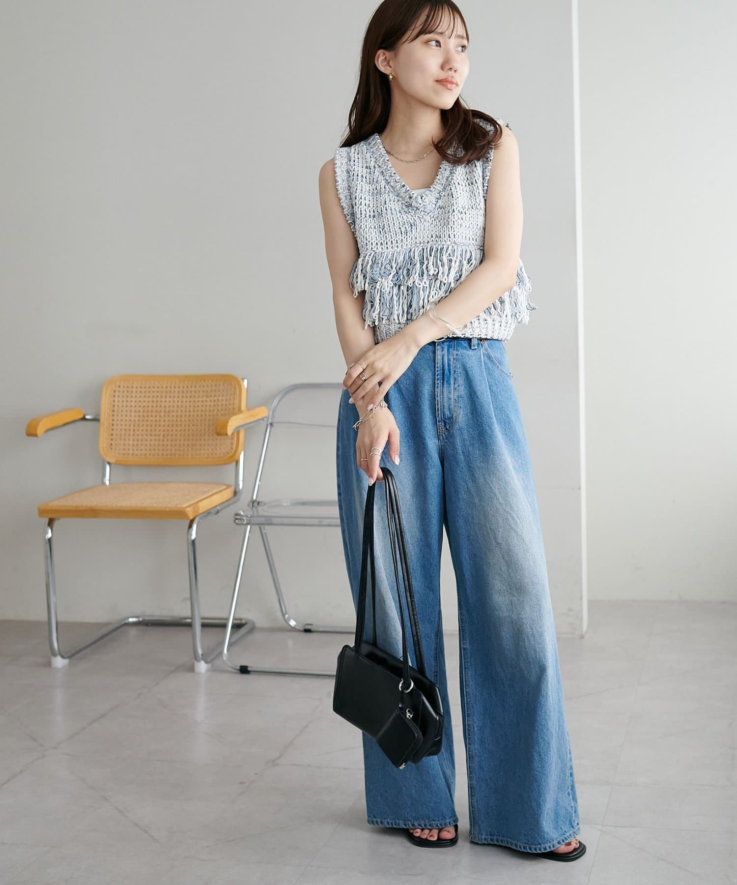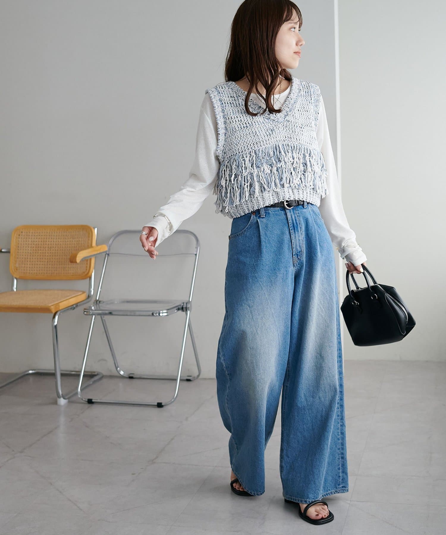 裾のフリンジが揺れて動きが出るので、シンプルなコーデも華やかに仕上がるのが◎