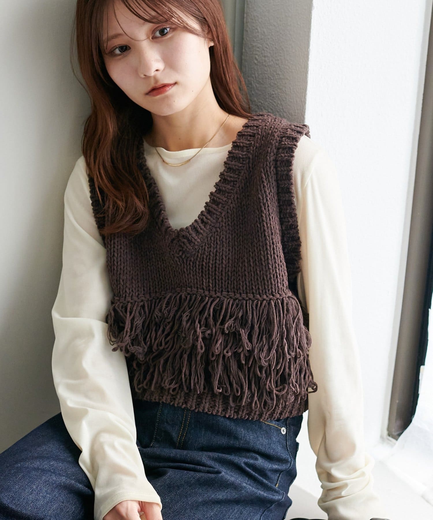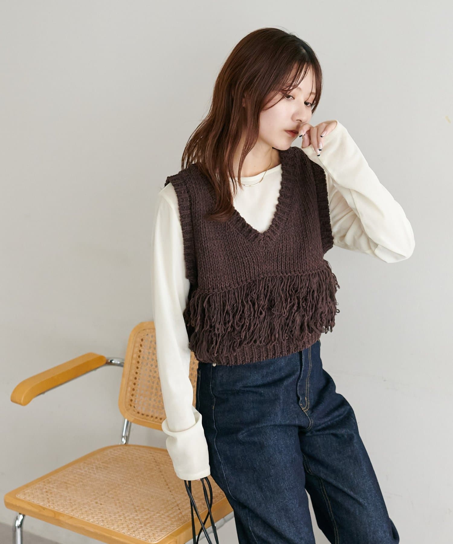 【主役級◎/ご好評につき新色追加!/着回し万能】Vネックフリンジベスト《WEB限定》