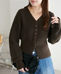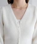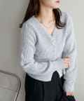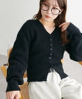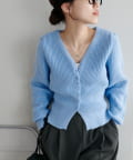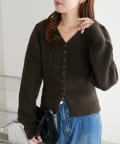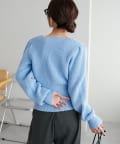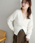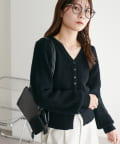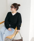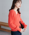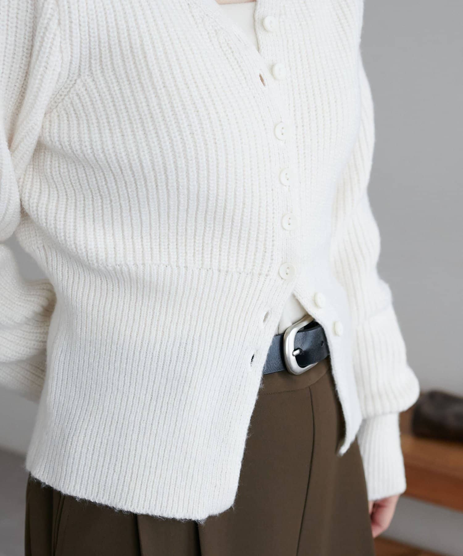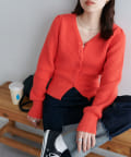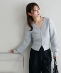 すっきりとしたVネックに、フロントボタンと前裾のスリットがアクセントになったニットプルオーバー。