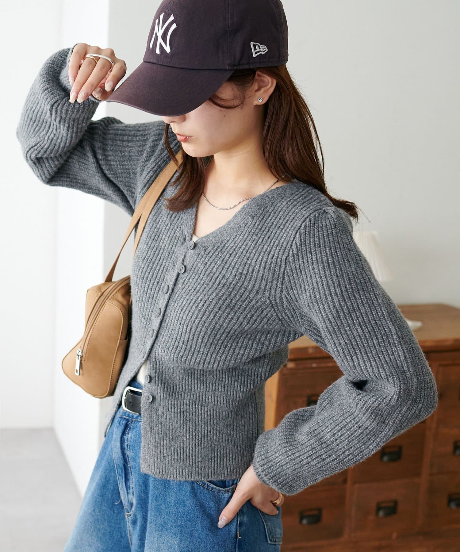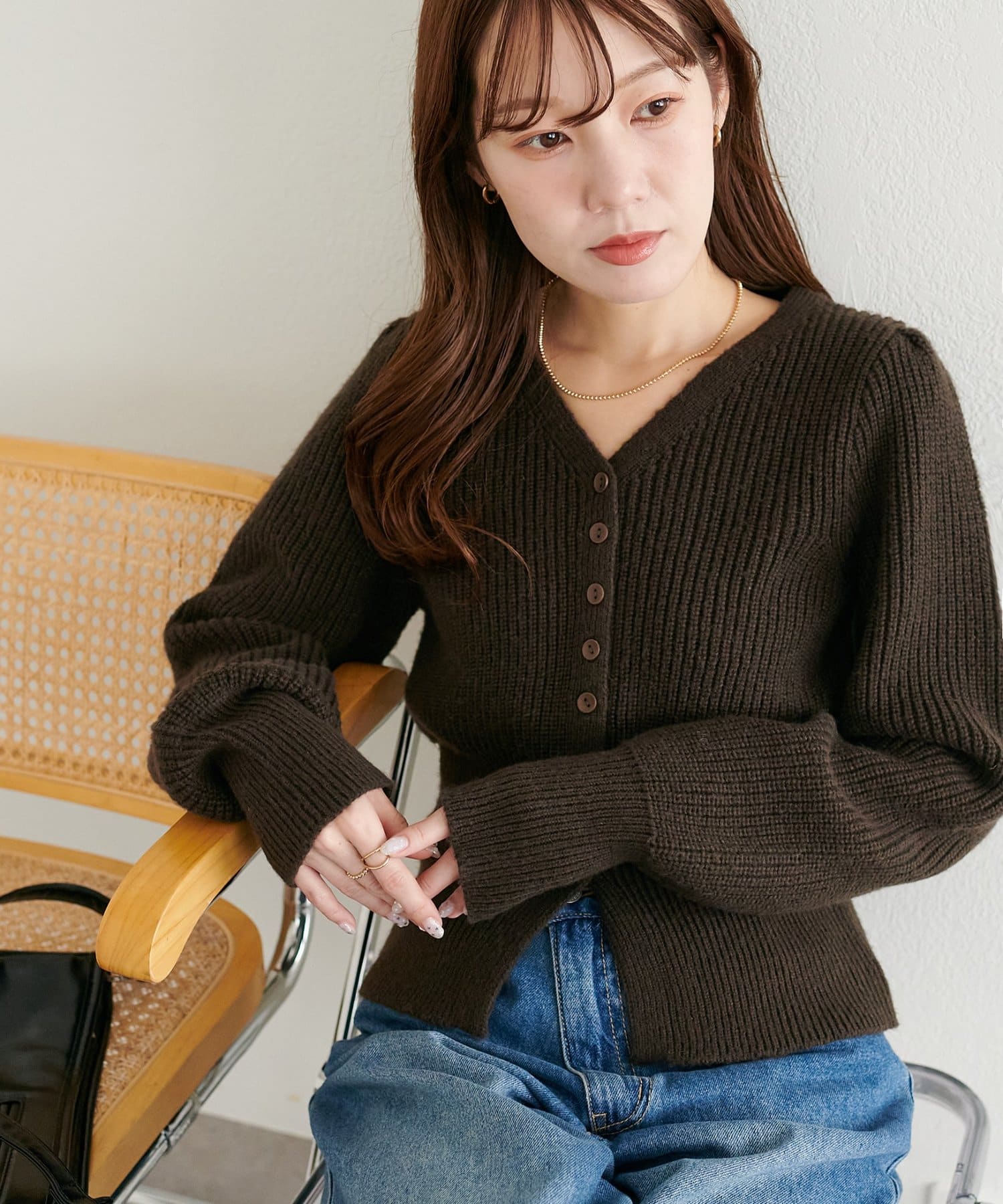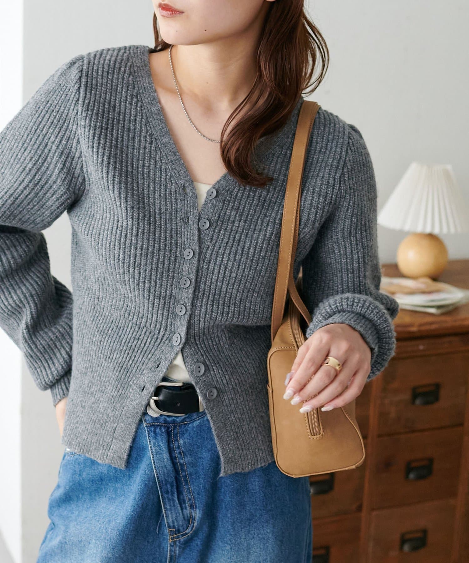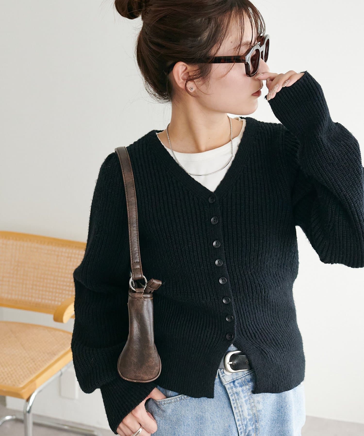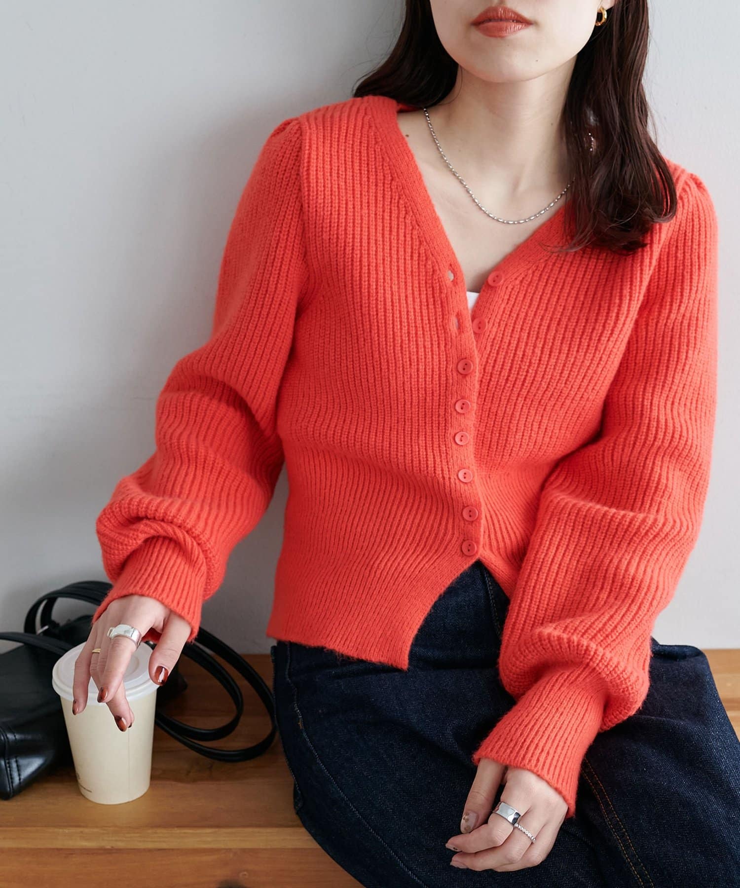 コンパクトなシルエットながらも、リブ編み特有の伸縮性があり、体のラインを拾いすぎず程よくフィット。