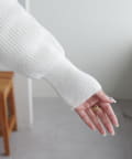 155cmスタッフ:袖のリブが少し長めで、手元にくしゅっとたまるシルエットが可愛いです。柔らかく伸びる生地で着心地も抜群!