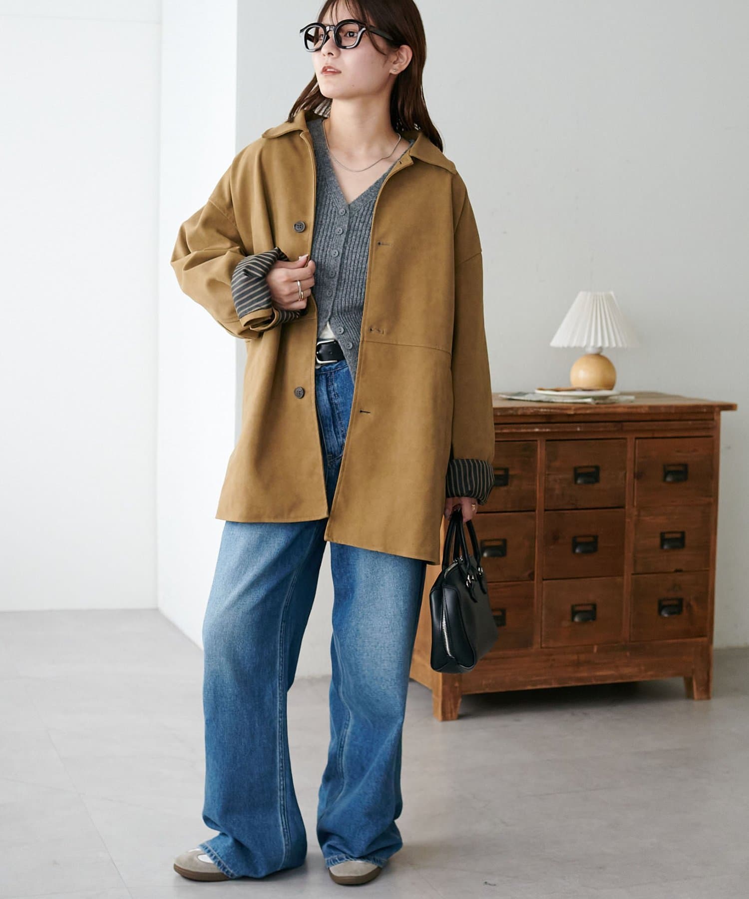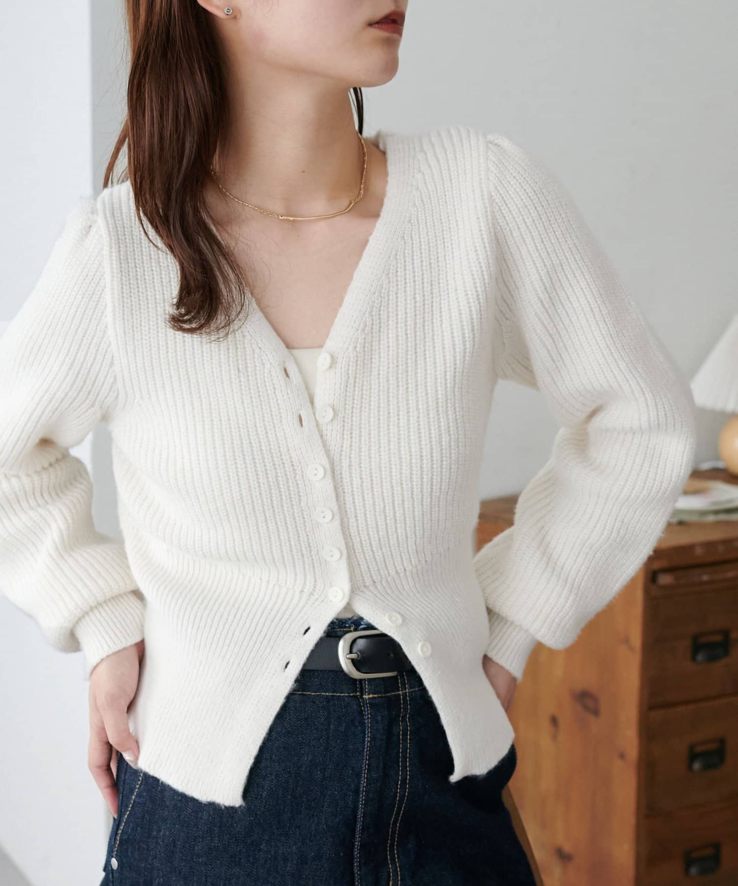 ボタンをすべて留めてプルオーバーとして着るのはもちろん、インナーを覗かせて羽織り風に着こなすのもおすすめ♪