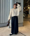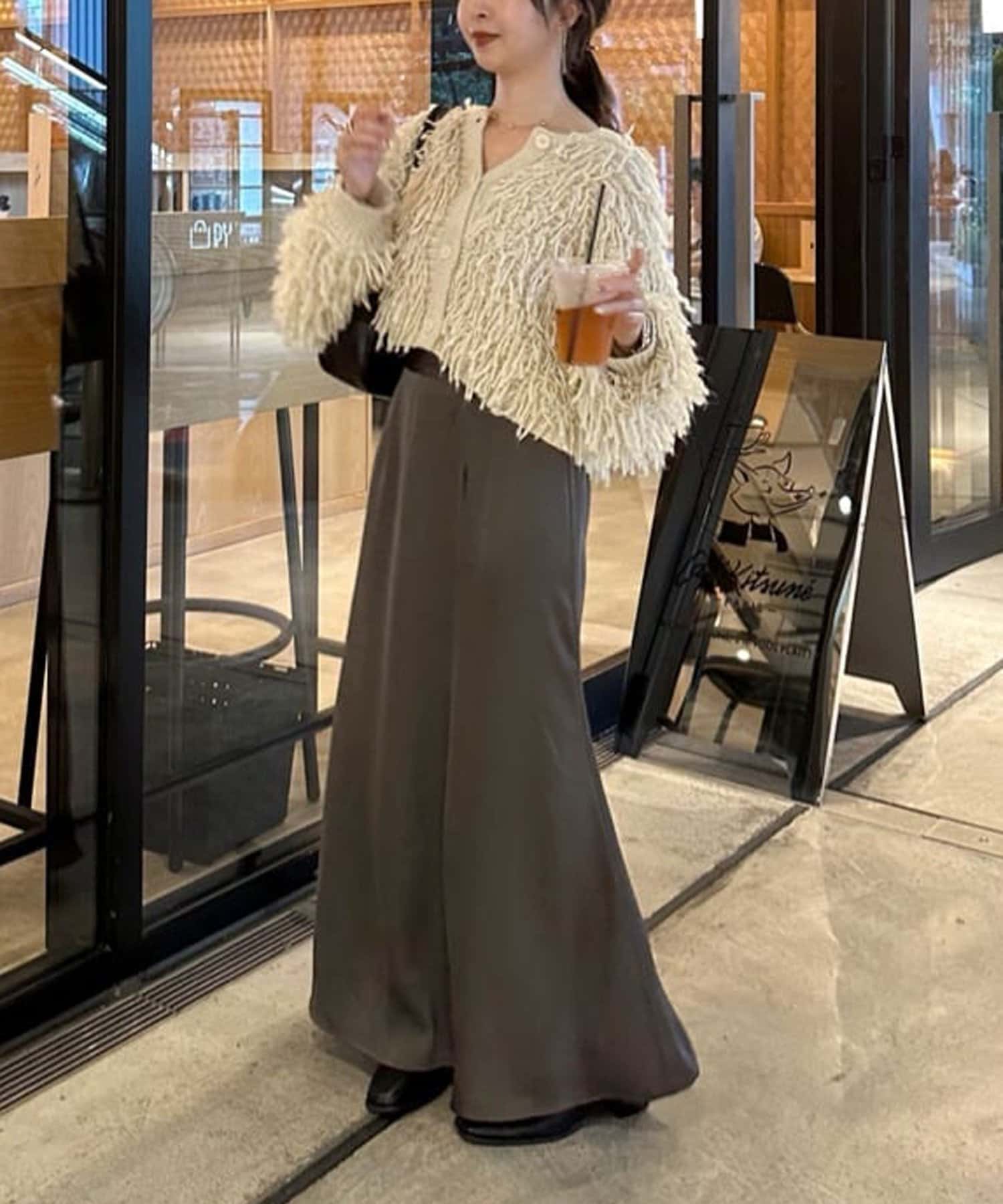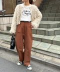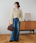 デニムやスラックス合わせで大人カジュアルに、サテンスカートやベロアスカートを合わせてきれいめにも◎ショート丈のアイテムなので、ハイウエストやワイドパンツがおすすめです♩