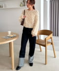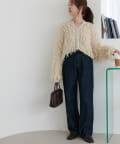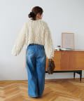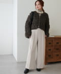 ショート丈なのでボリュームのあるボトムともバランスが取りやすく、スタイルアップして見えます。