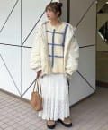 157cmスタッフ:存在感のあるデザインなのでシンプルなボトムスと合わせるだけでコーデがきまります◎お尻まで隠れる丈感なので体型カバーも◎