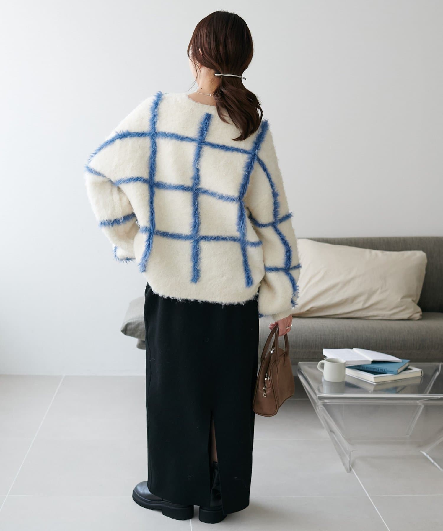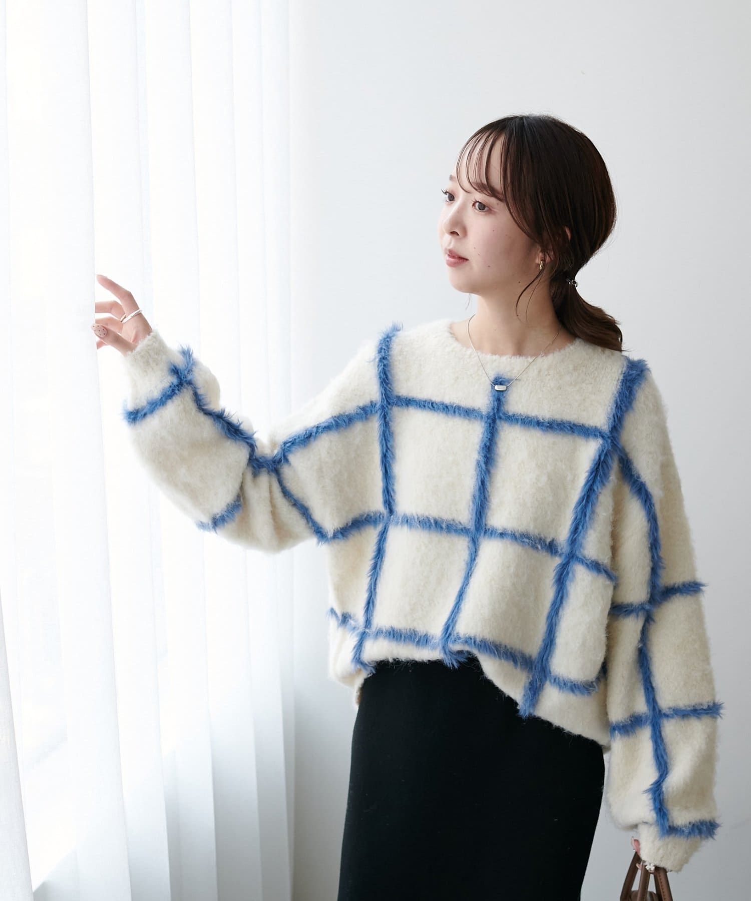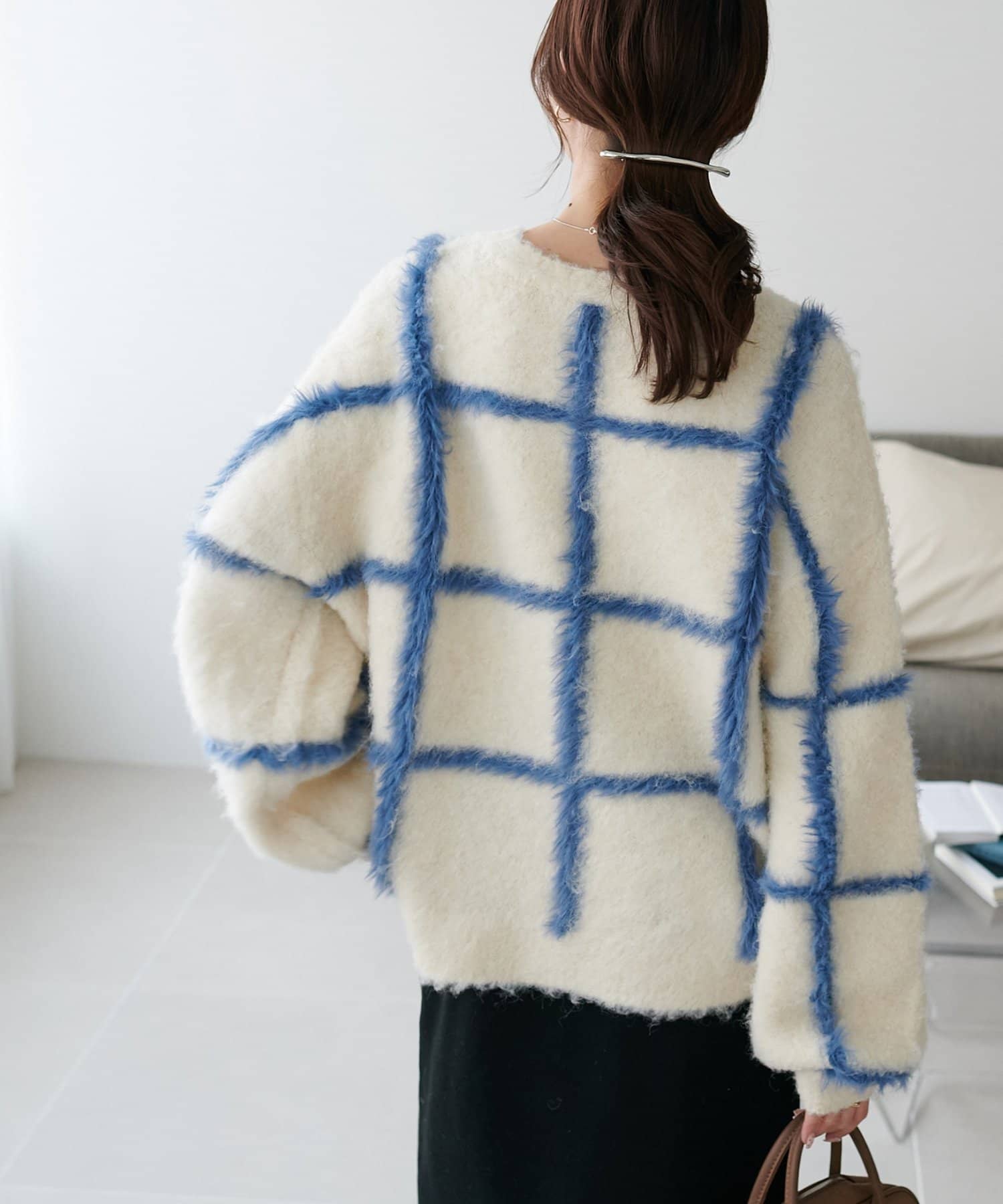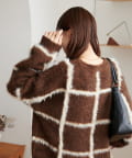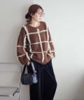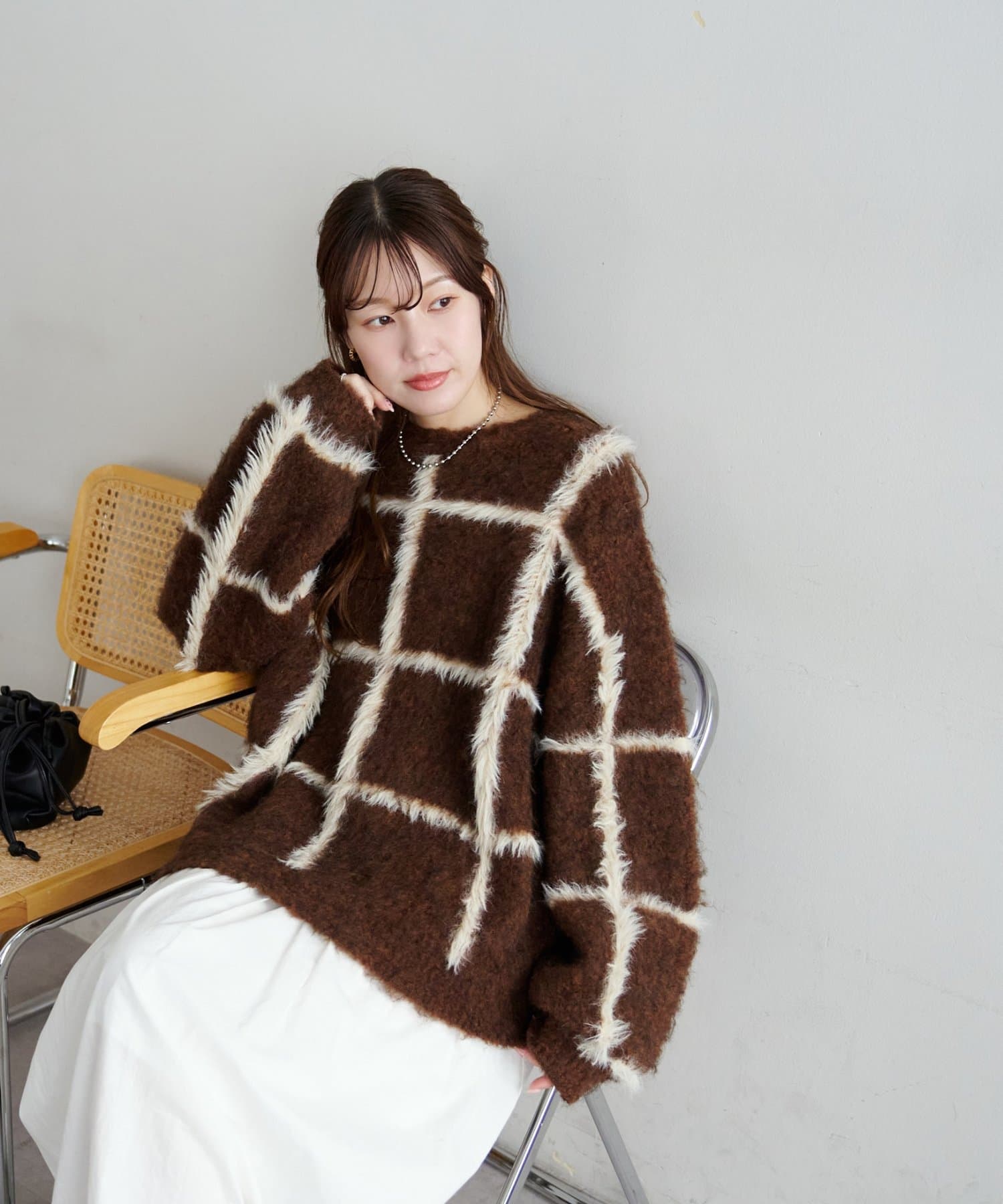 大胆でインパクトのあるチェック柄を全面にあしらったニット。