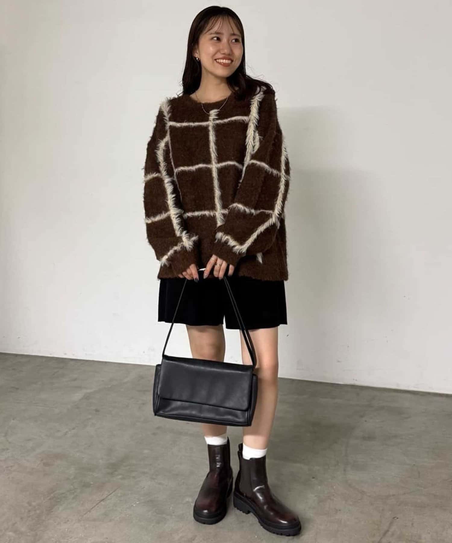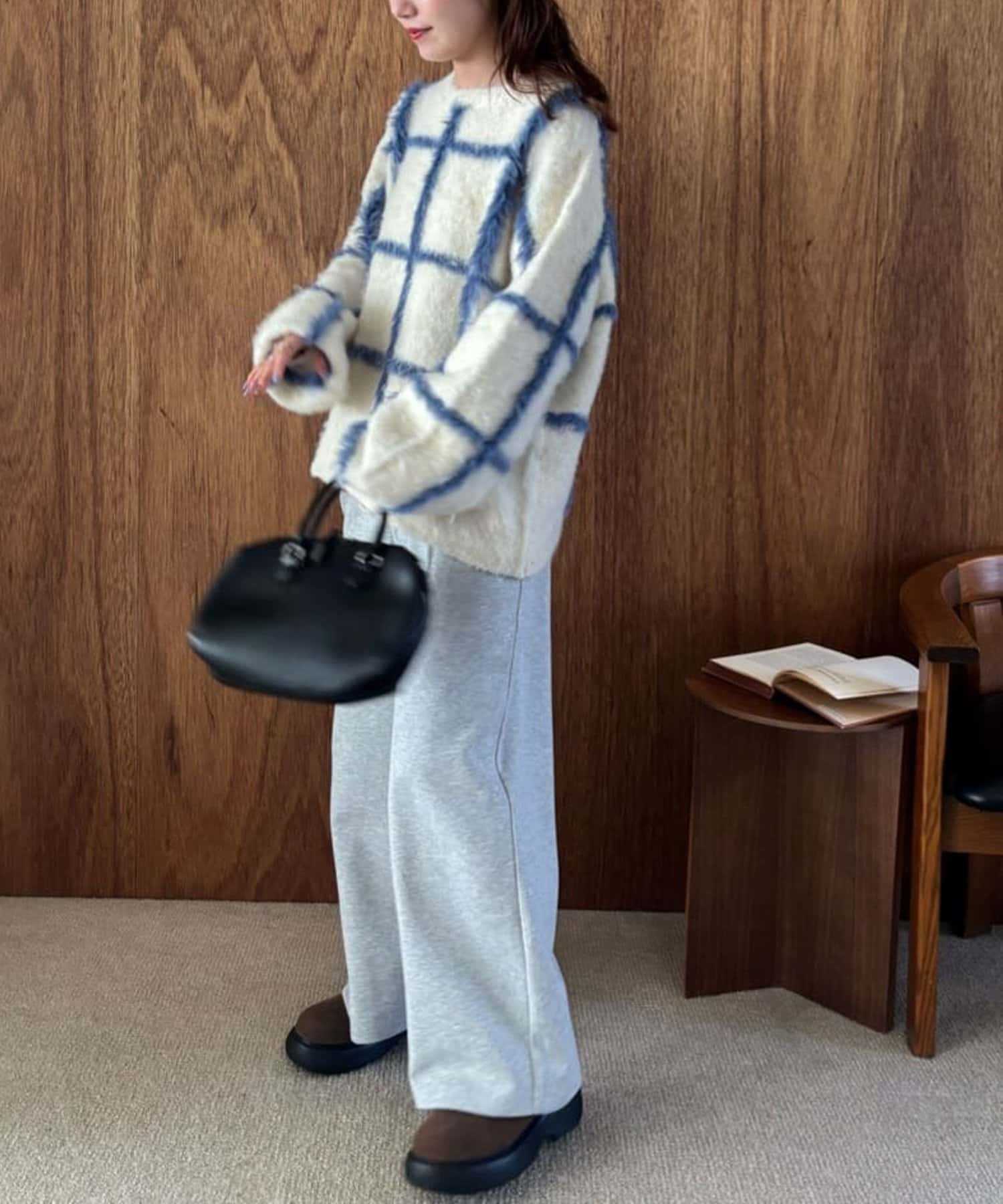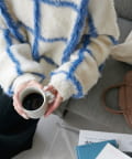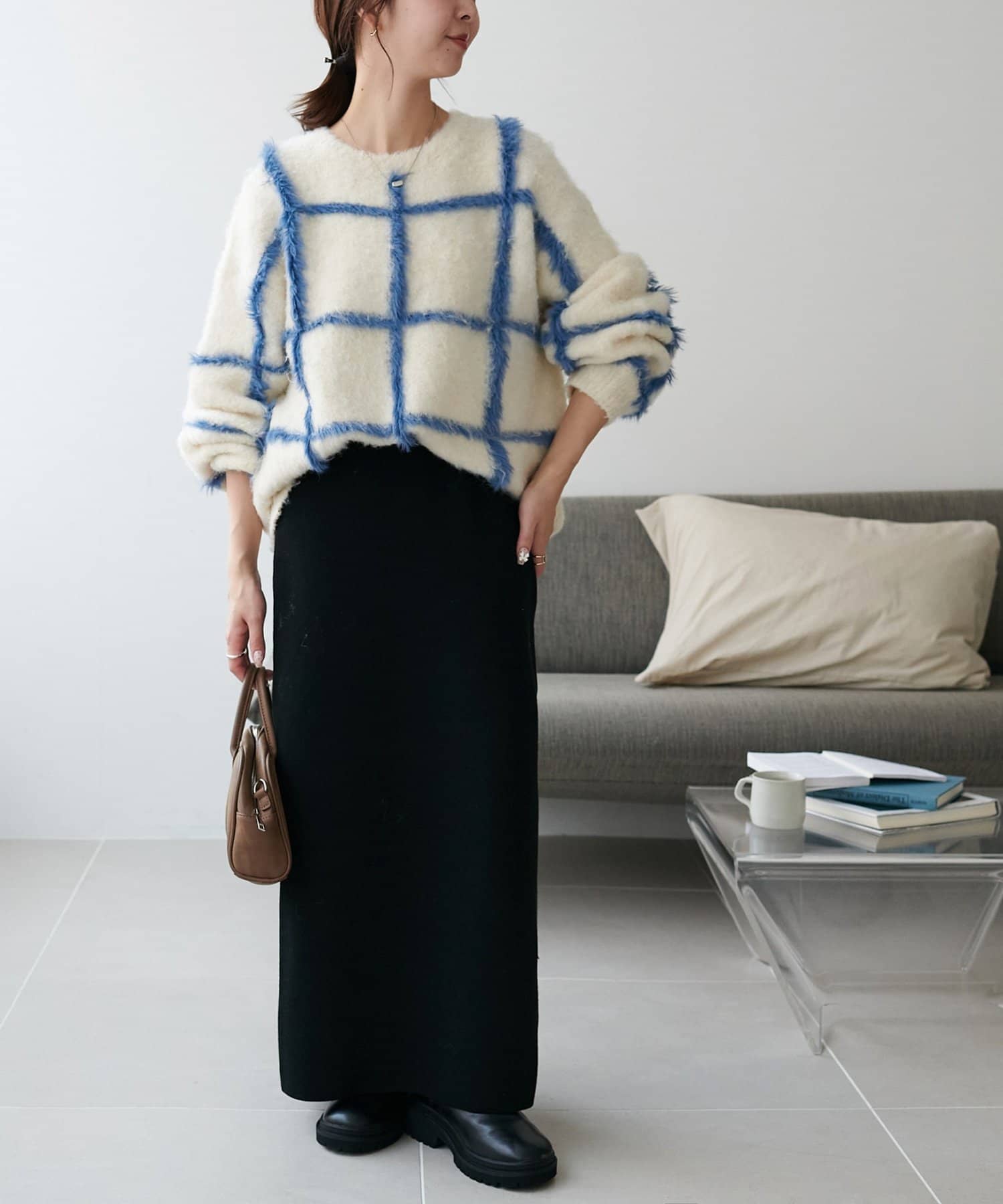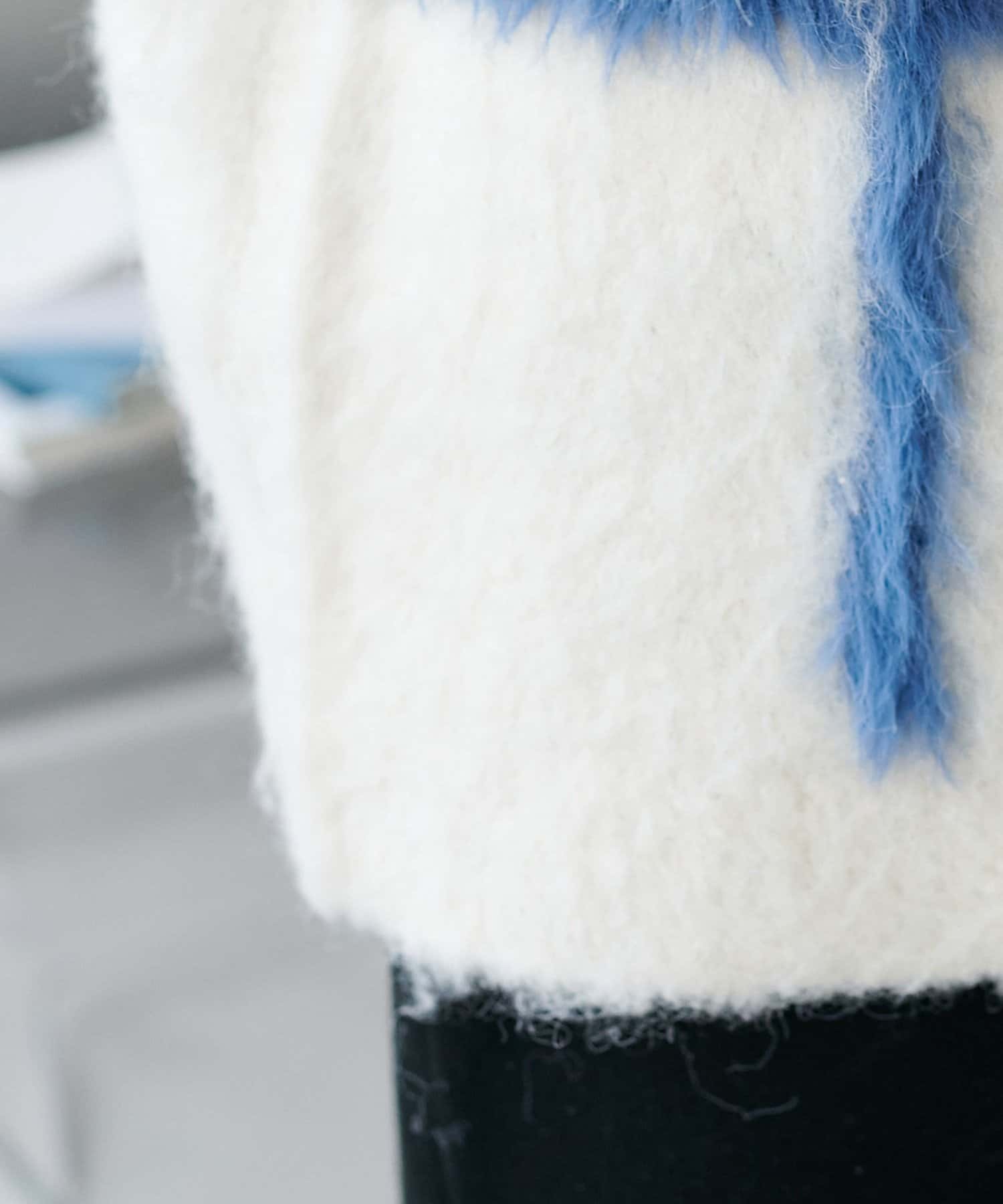 大胆でインパクトのあるチェック柄を全面にあしらったニット。