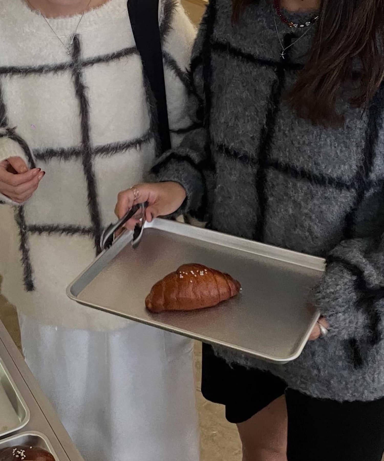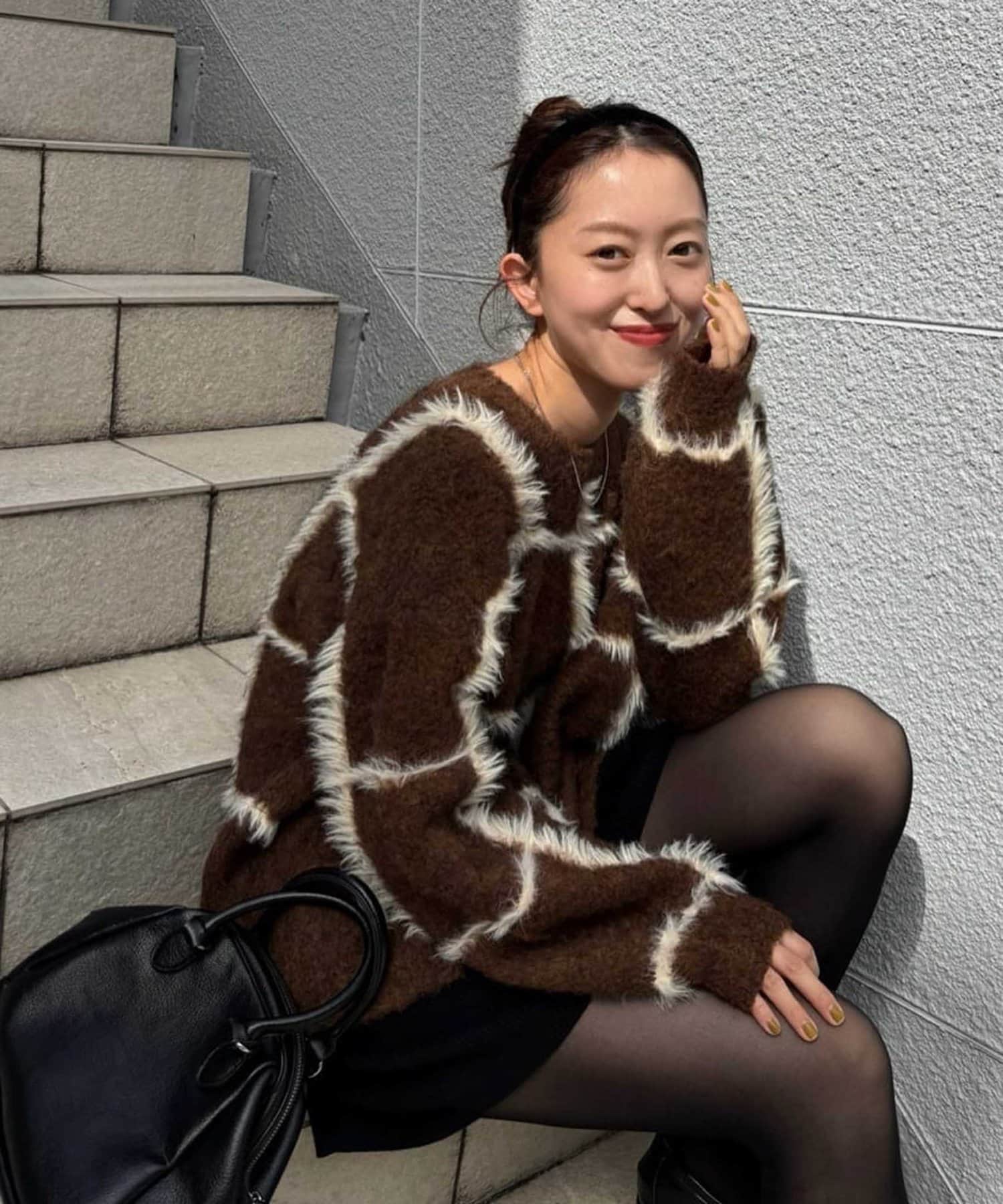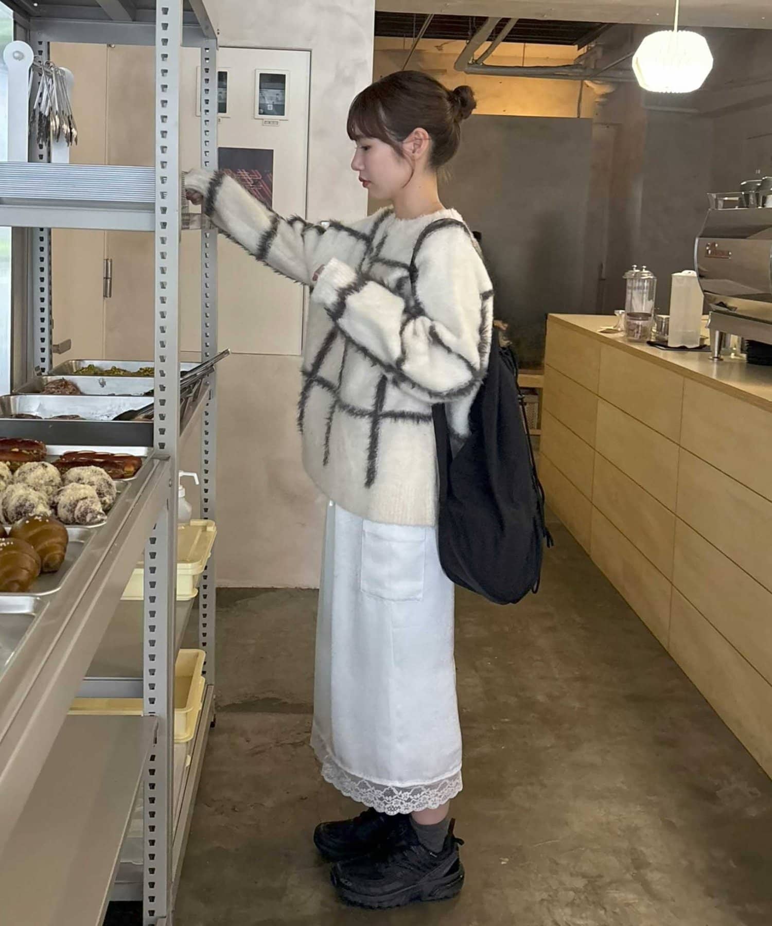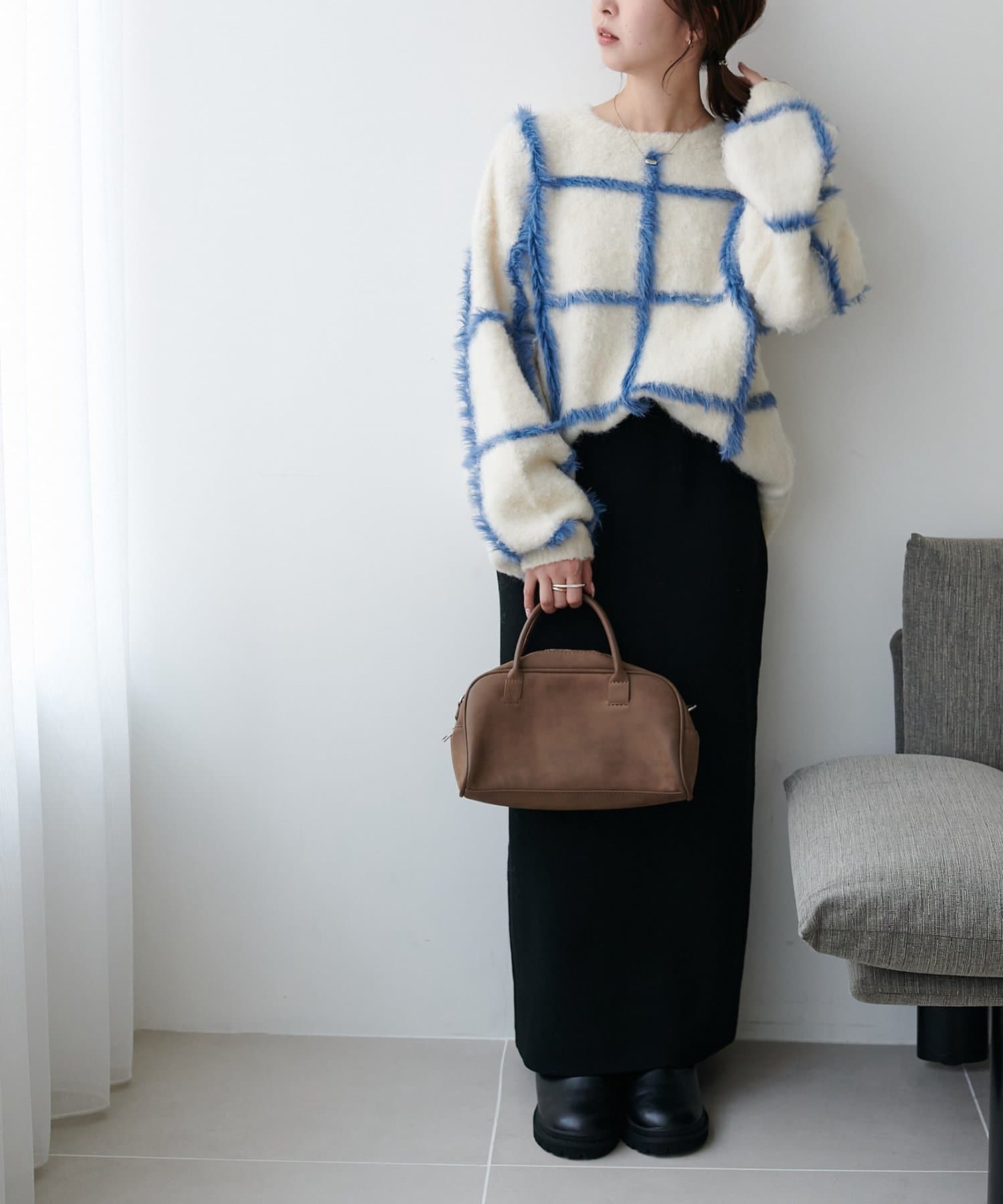 大胆でインパクトのあるチェック柄を全面にあしらったニット。
