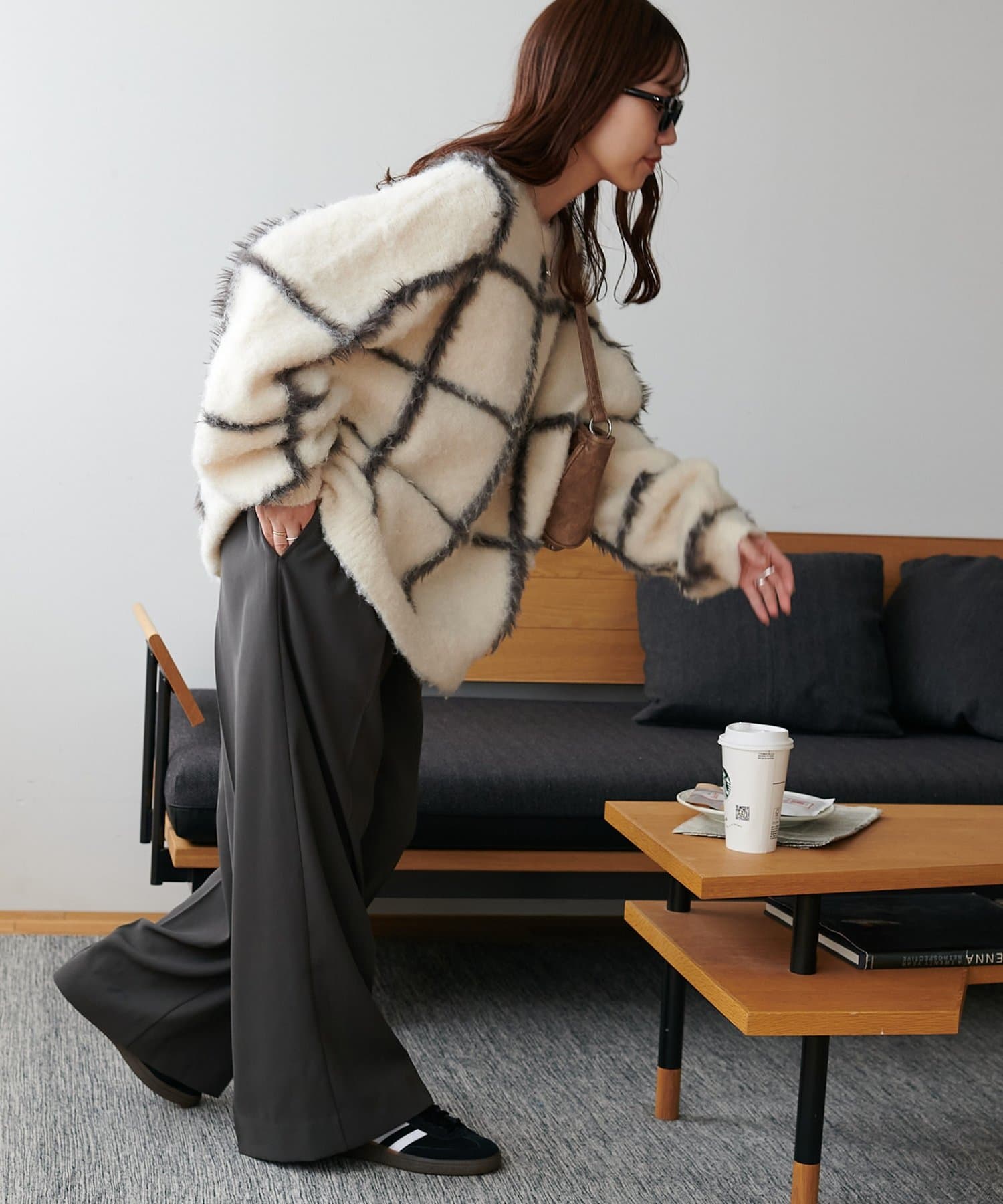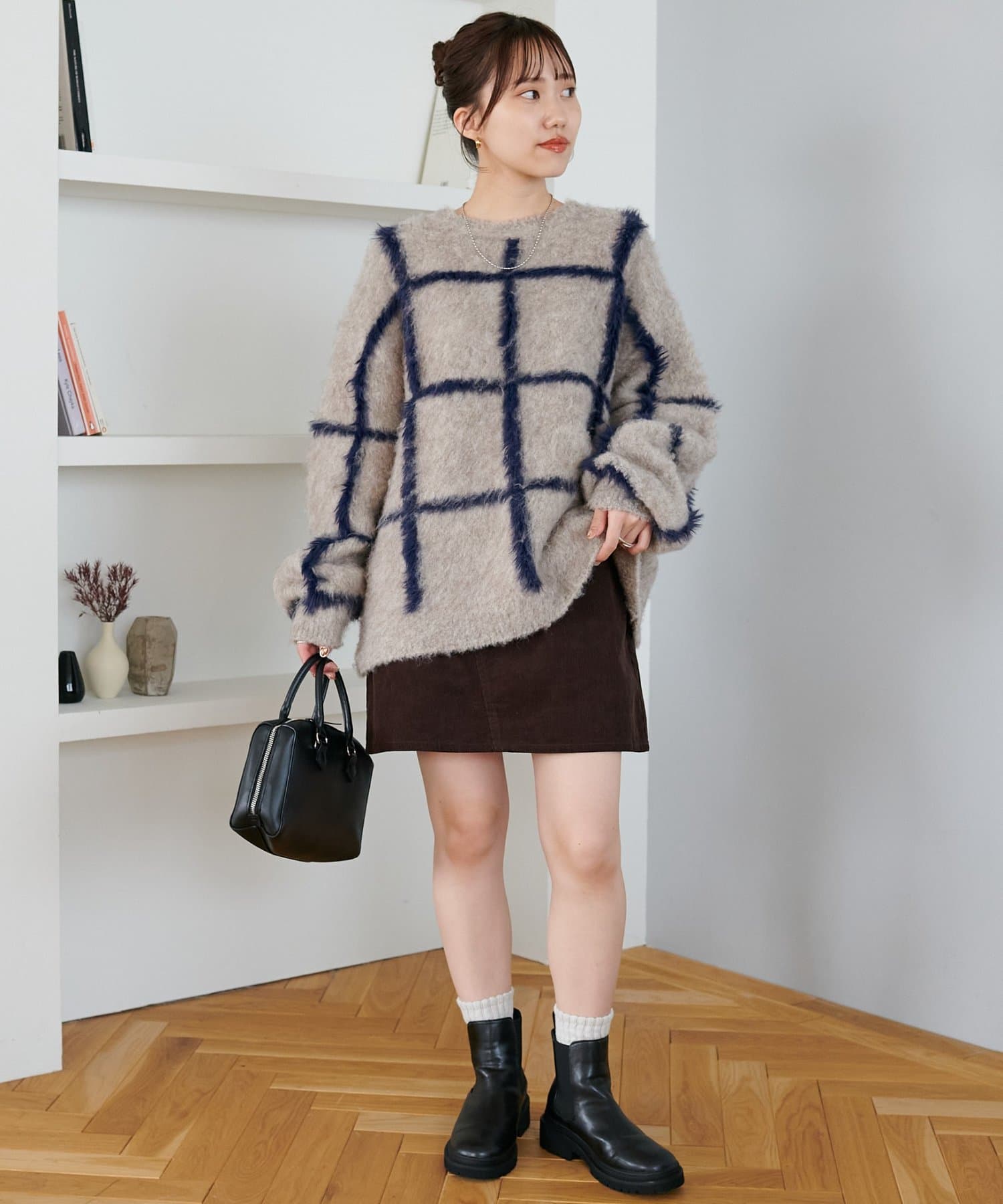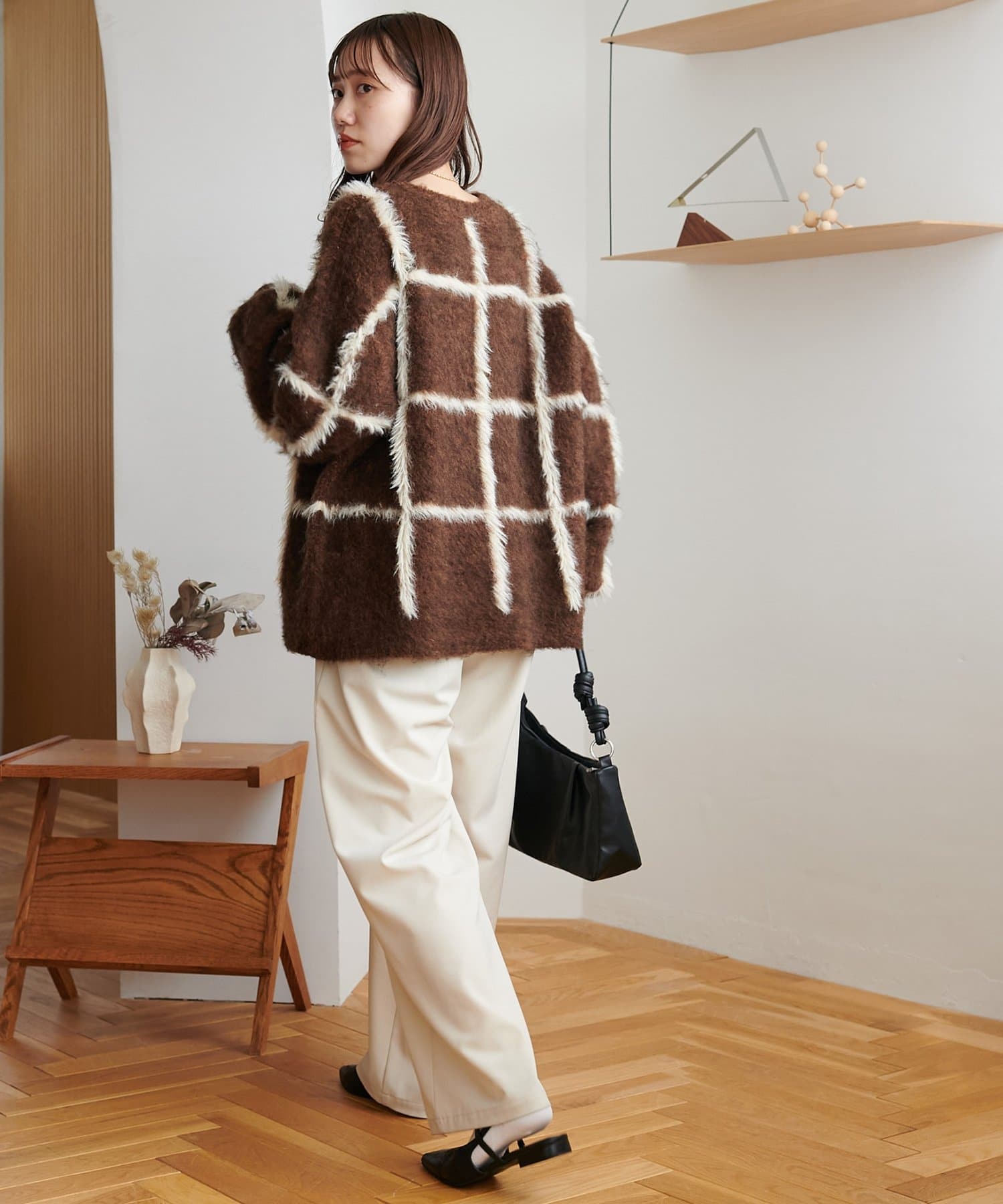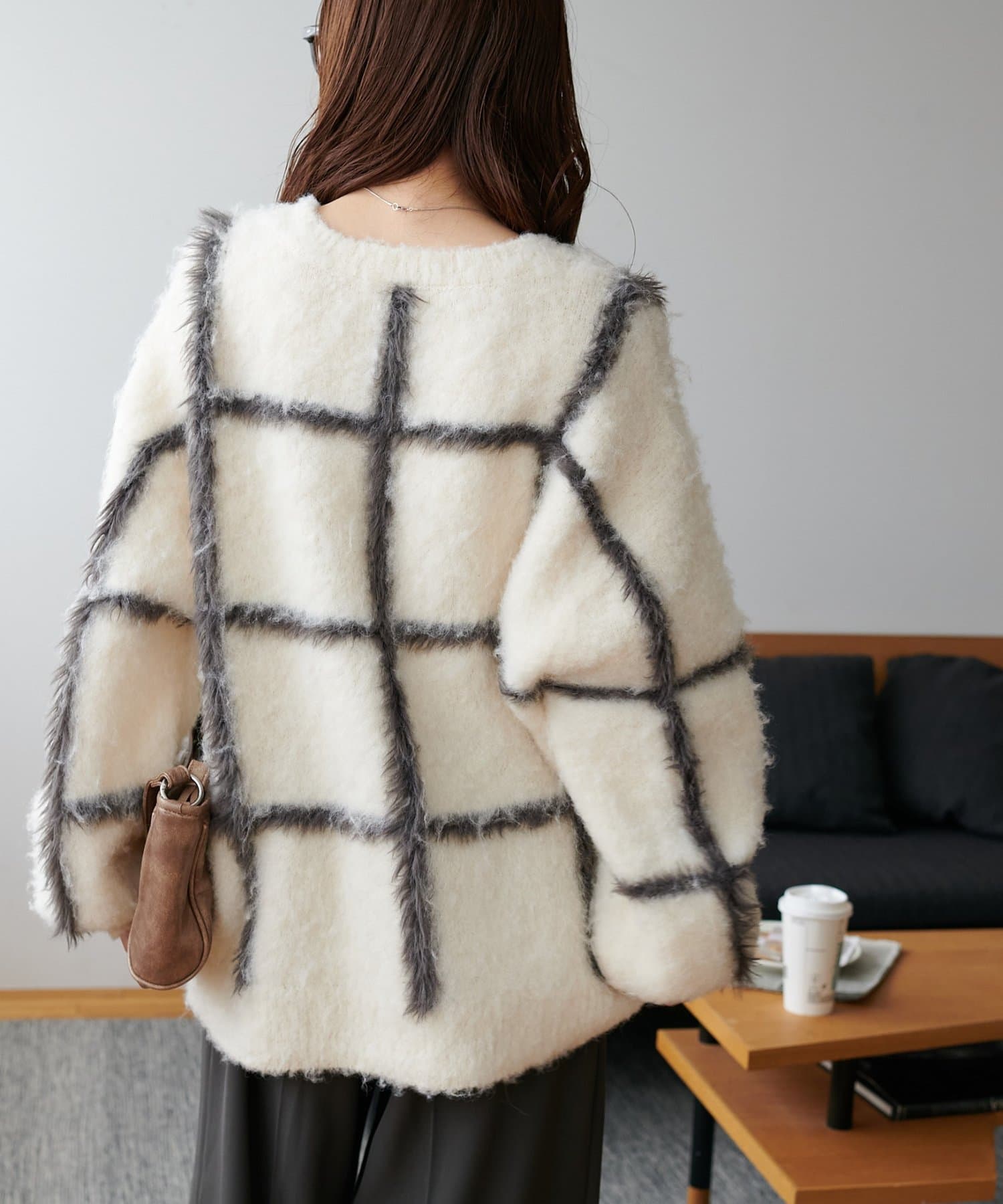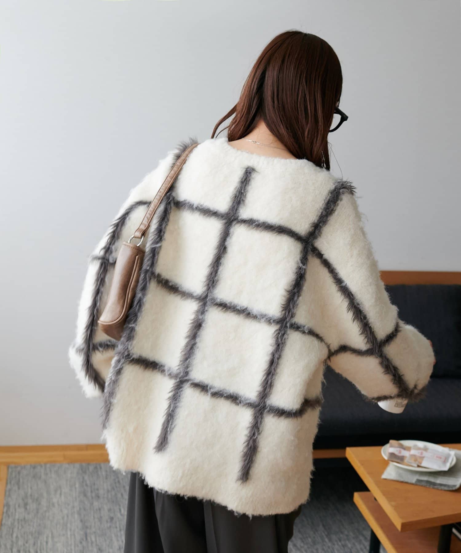 162cmスタッフ:目を惹くチェック柄にふんわりとしたシャギーの素材が可愛いです。ゆったり着られるのでリラックス感抜群!