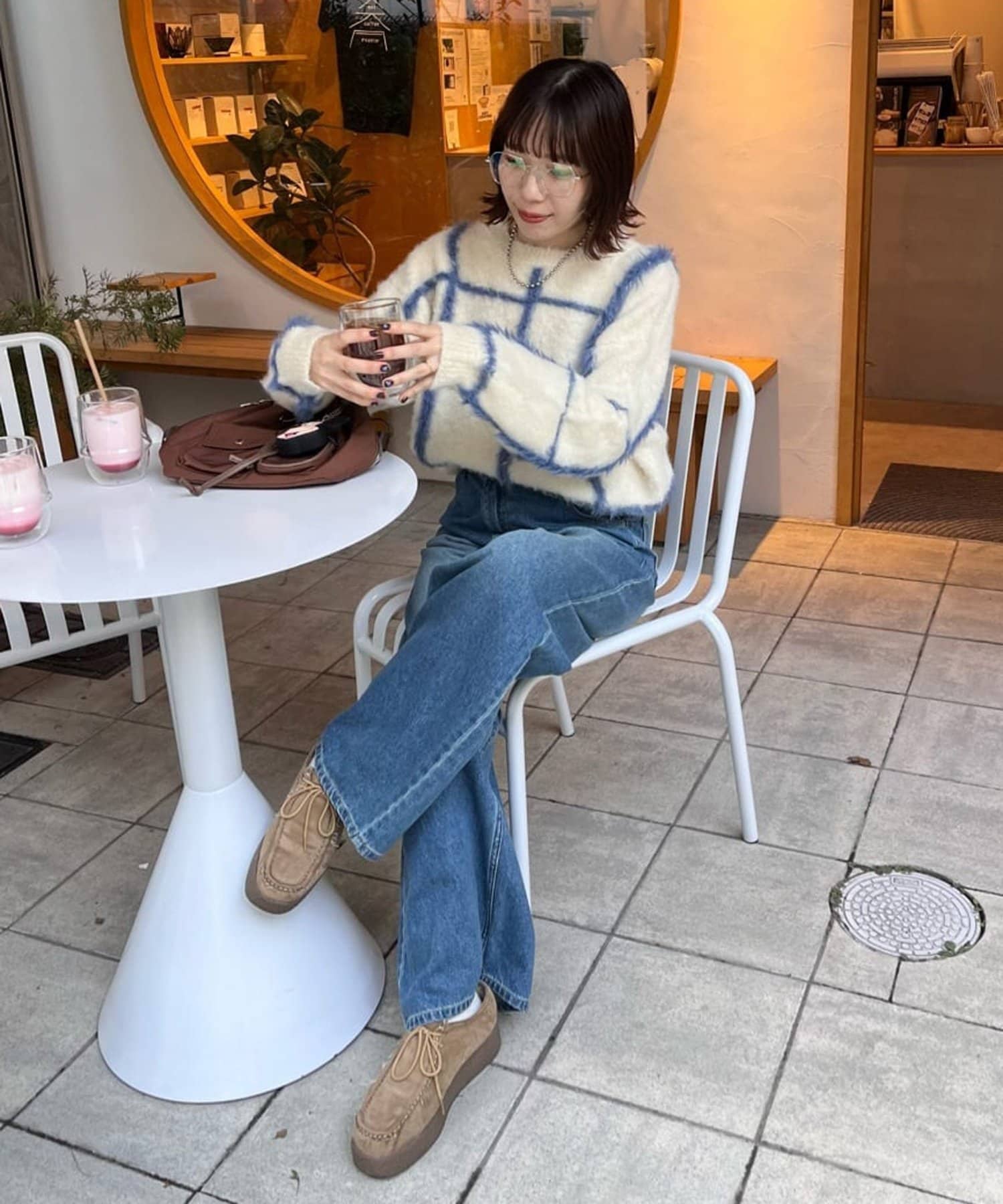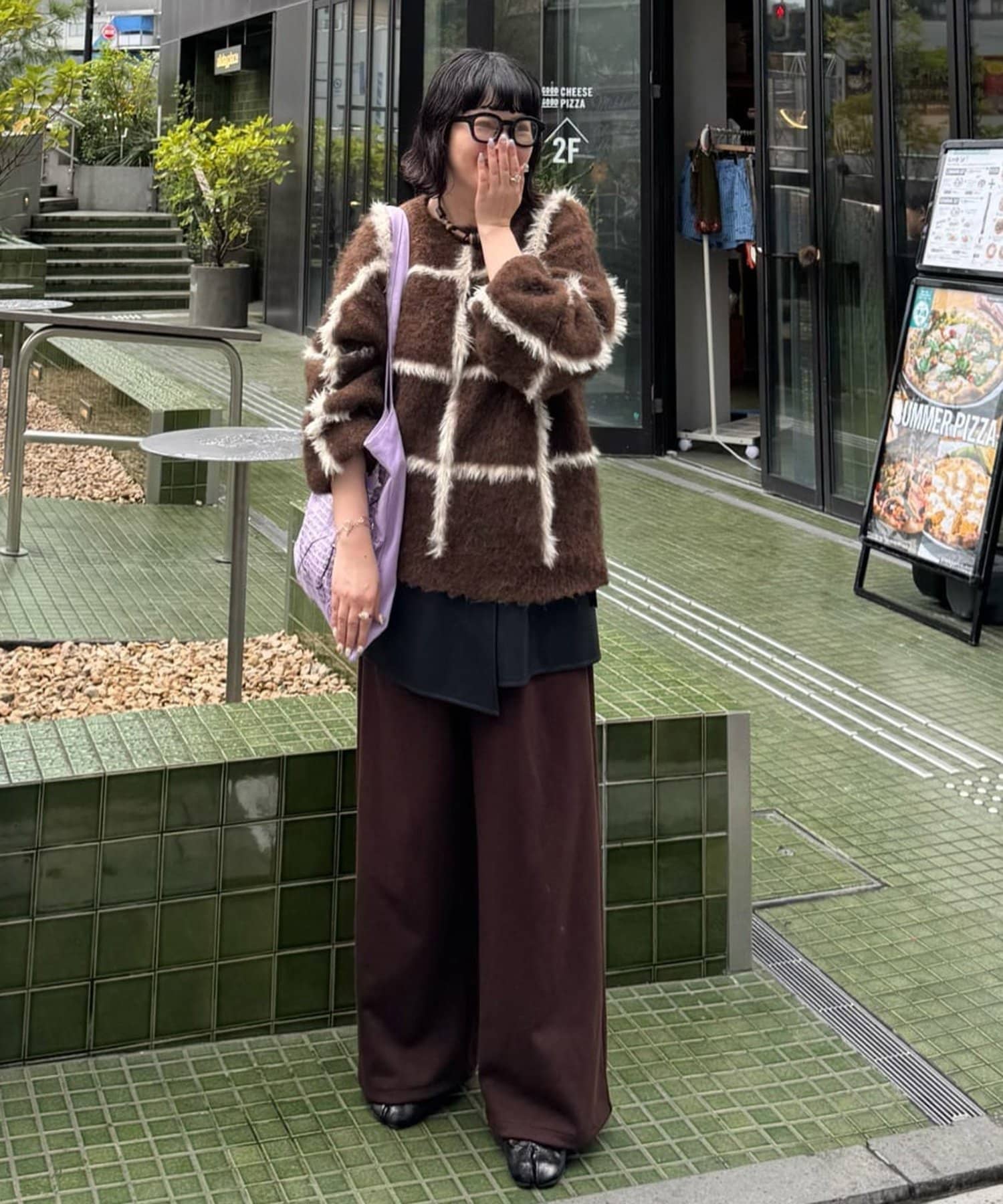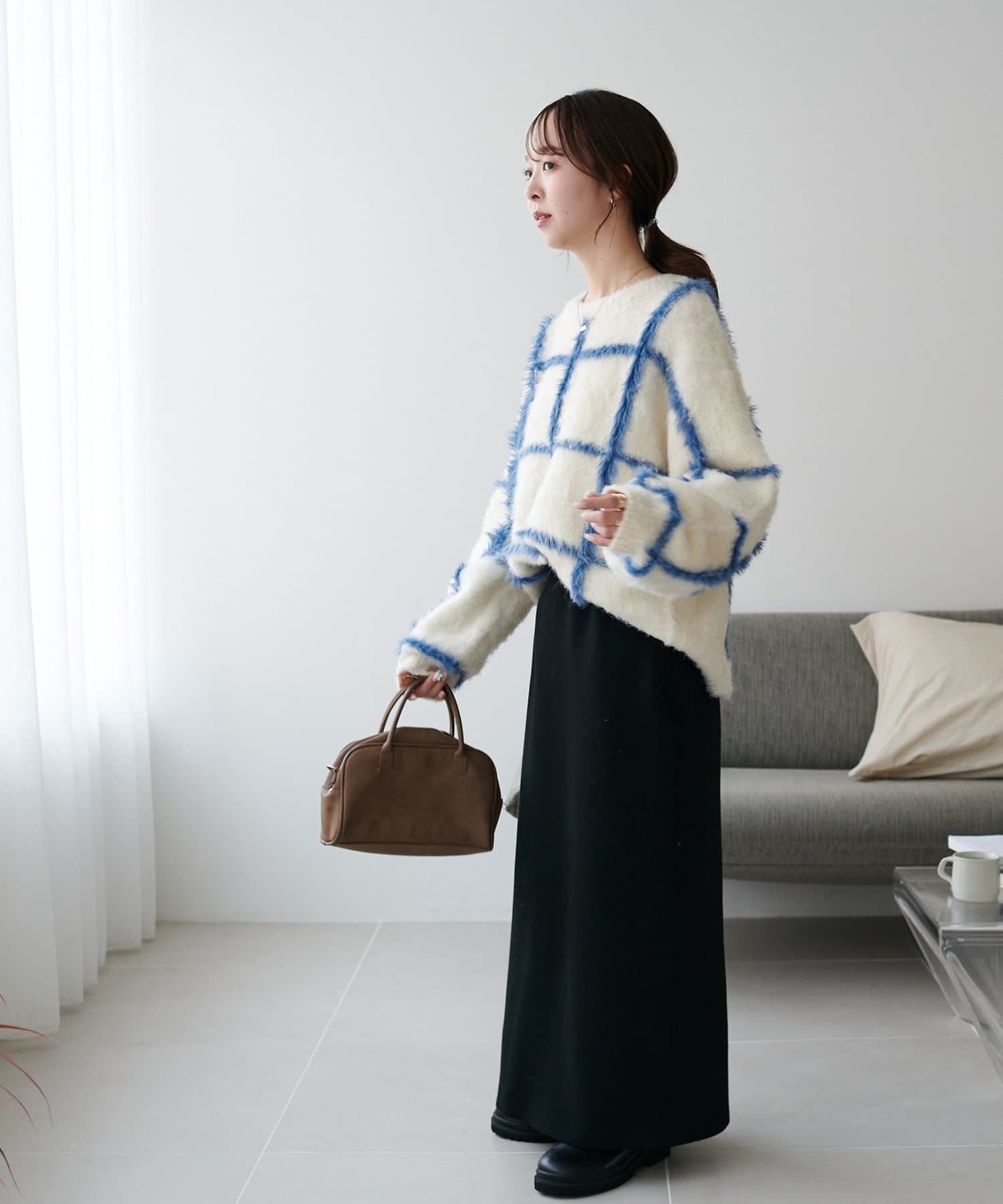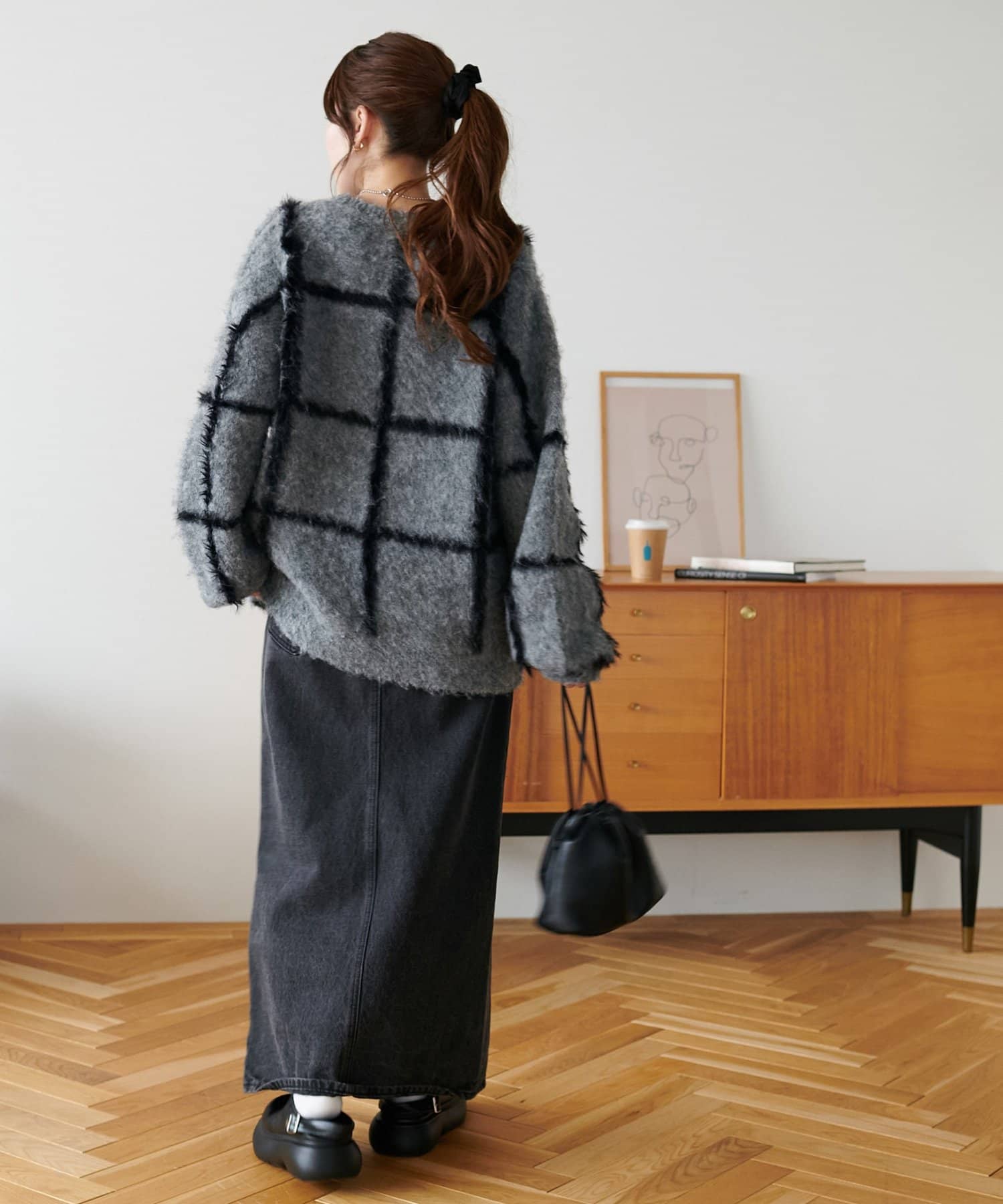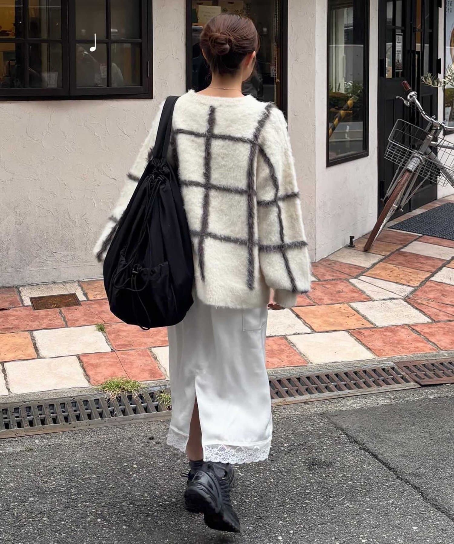 162cmスタッフ:目を惹くチェック柄にふんわりとしたシャギーの素材が可愛いです。ゆったり着られるのでリラックス感抜群!