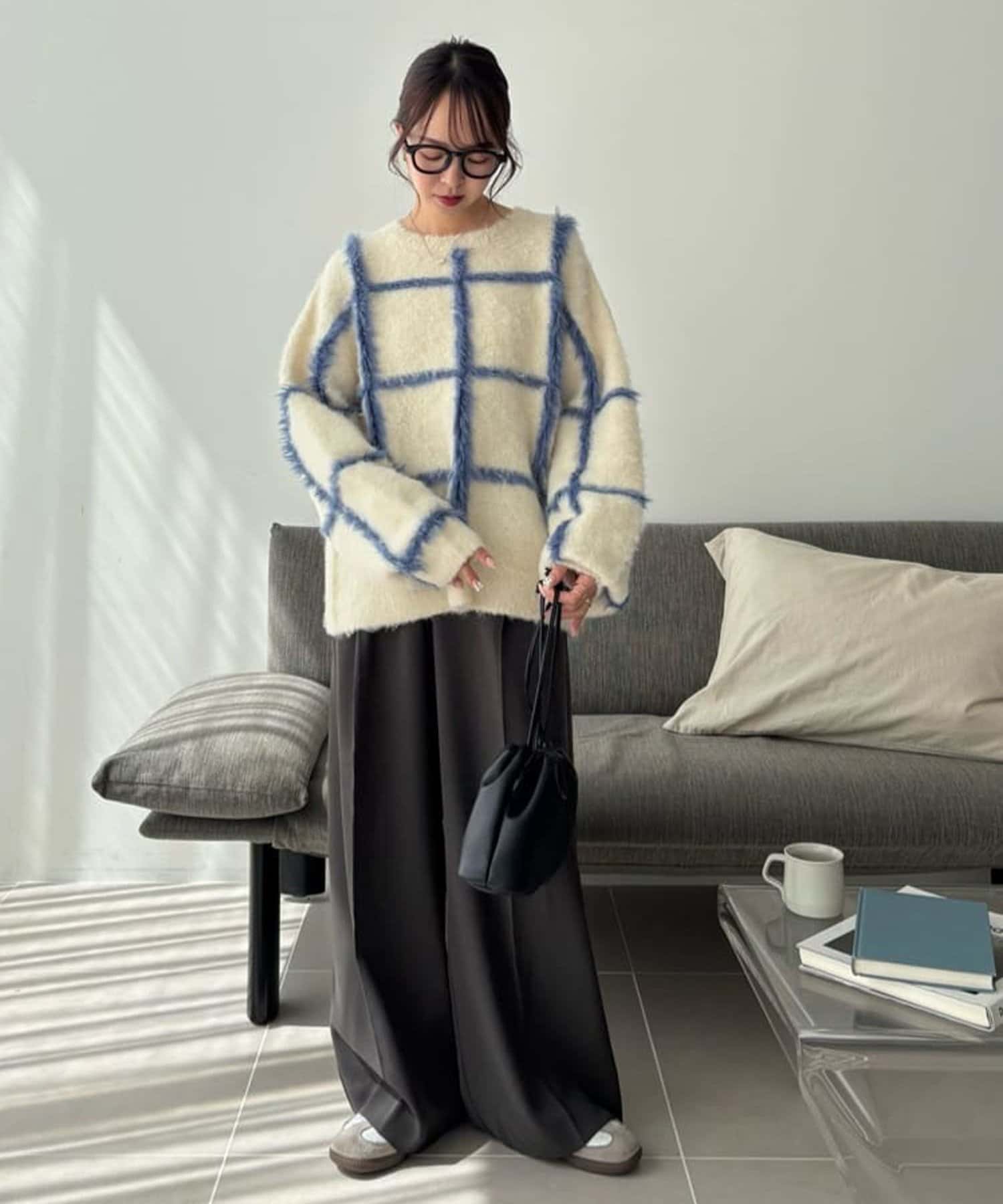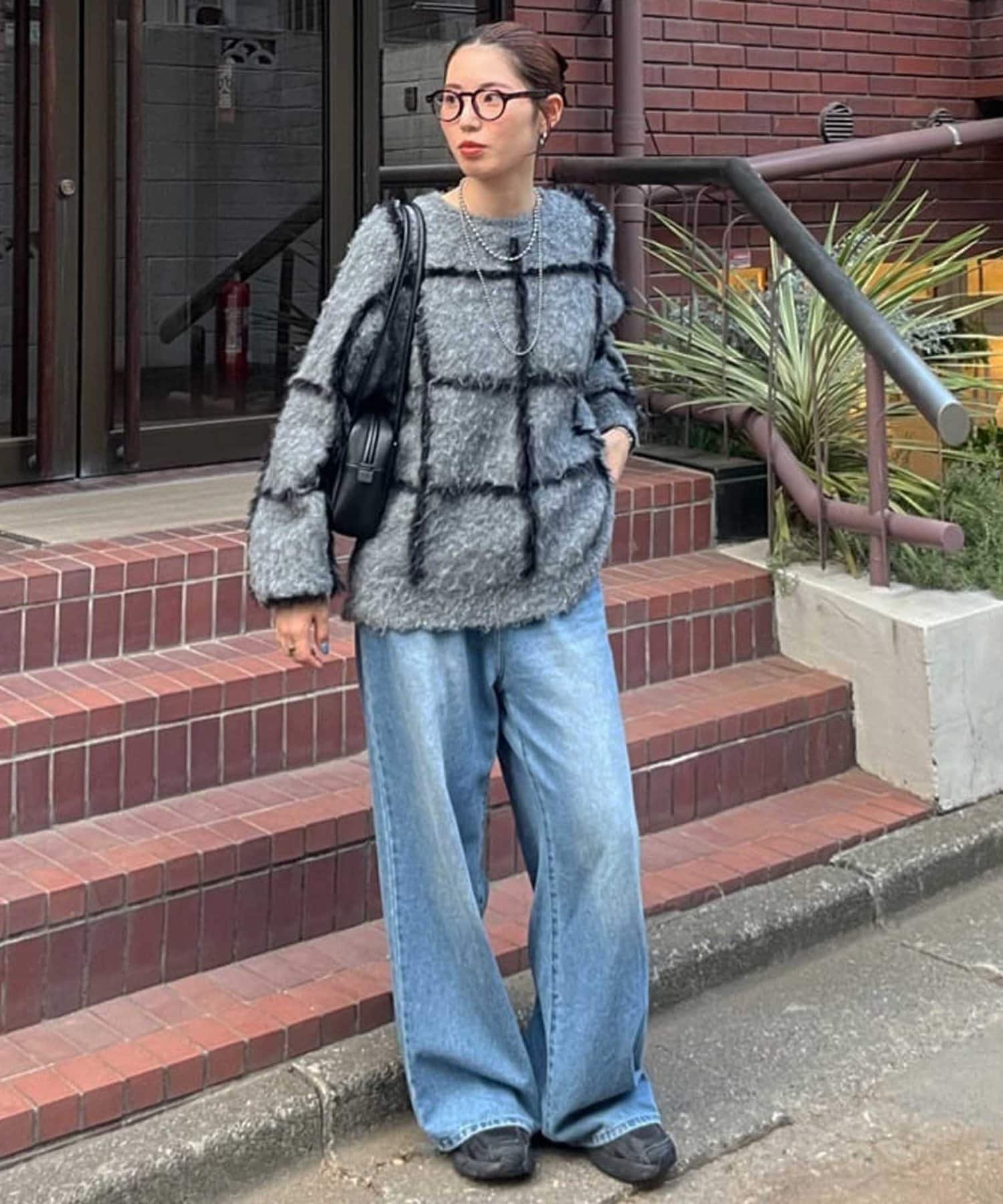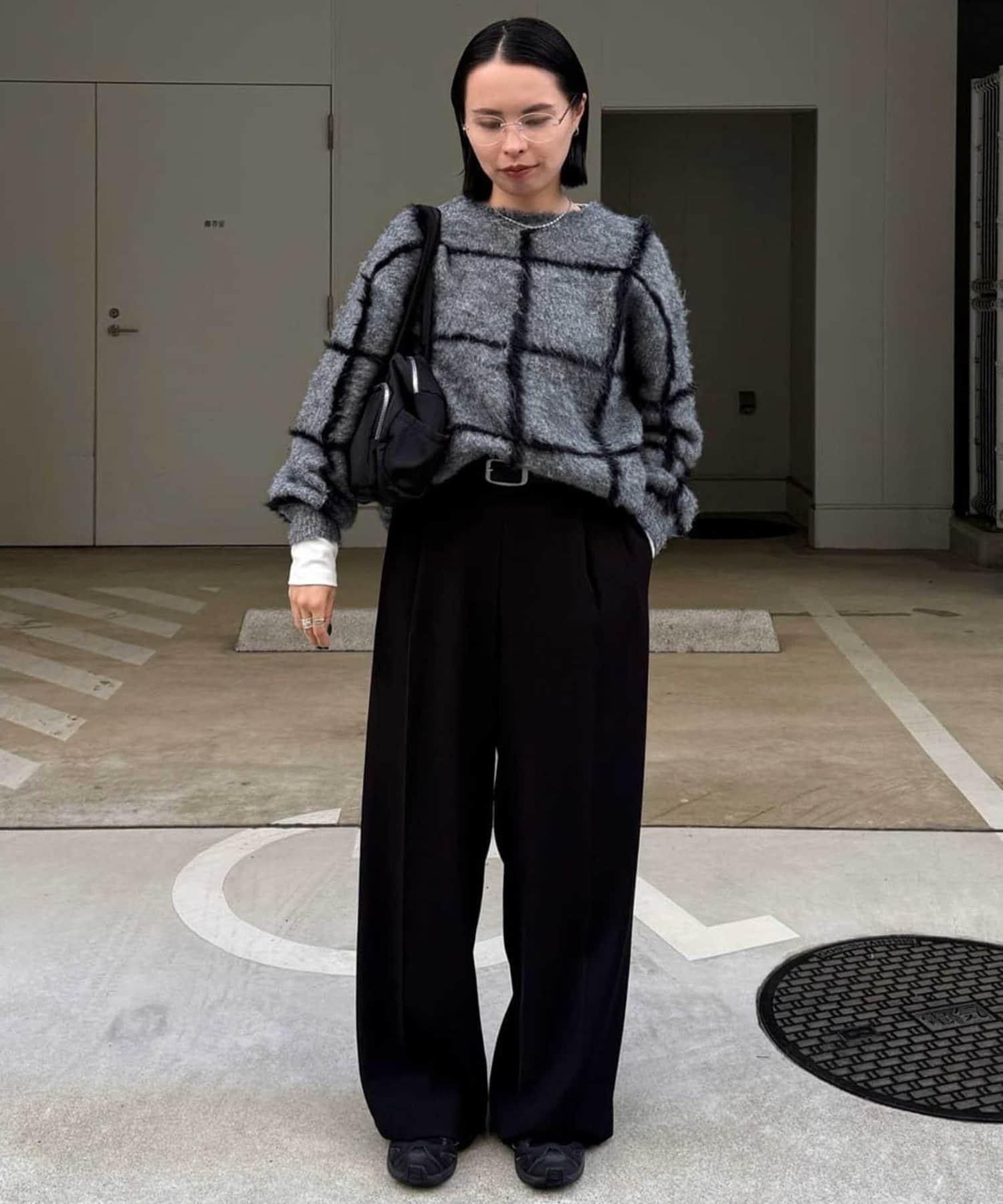 チェック柄で魅せる、ゆったりシルエットの旬スタイル