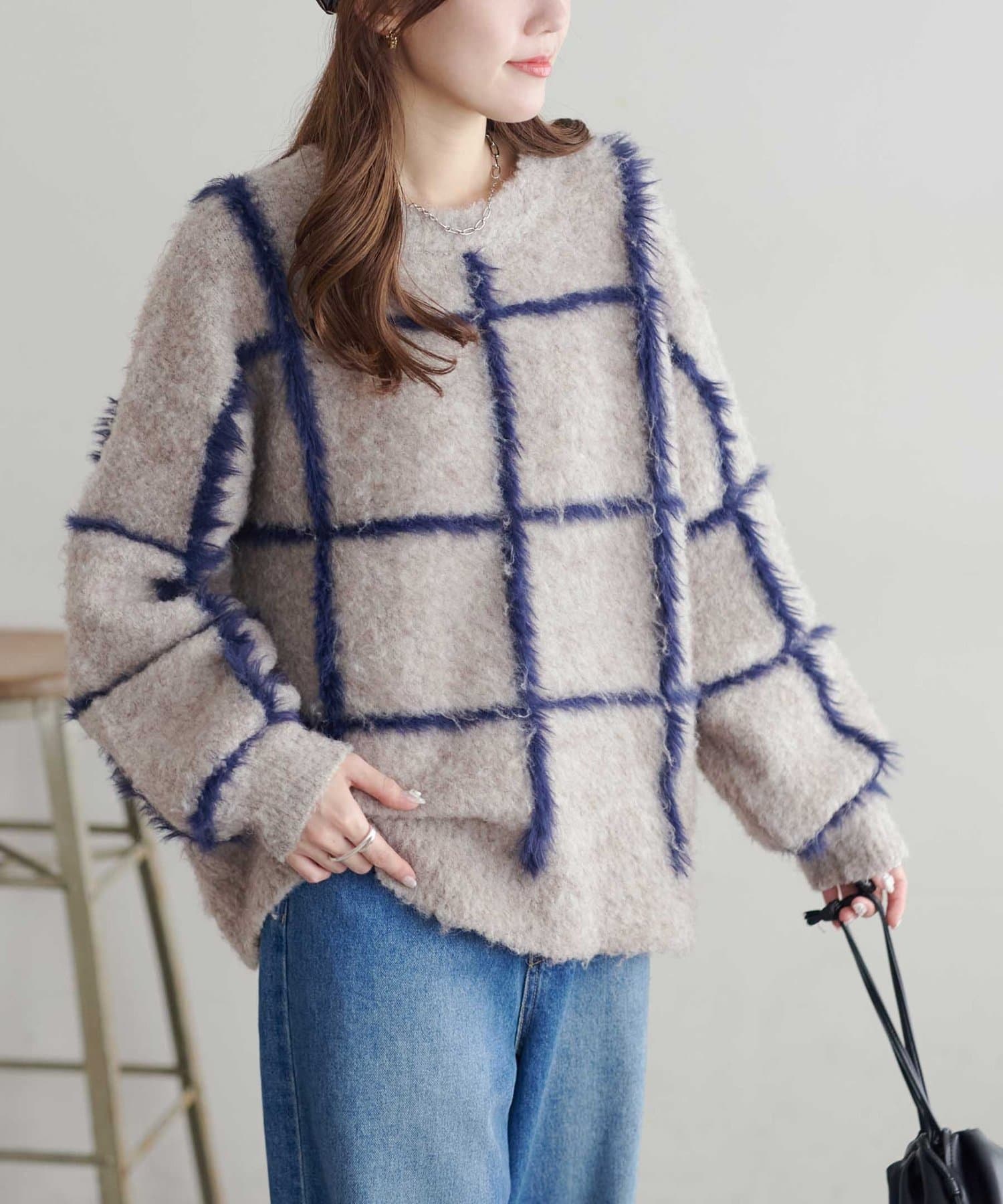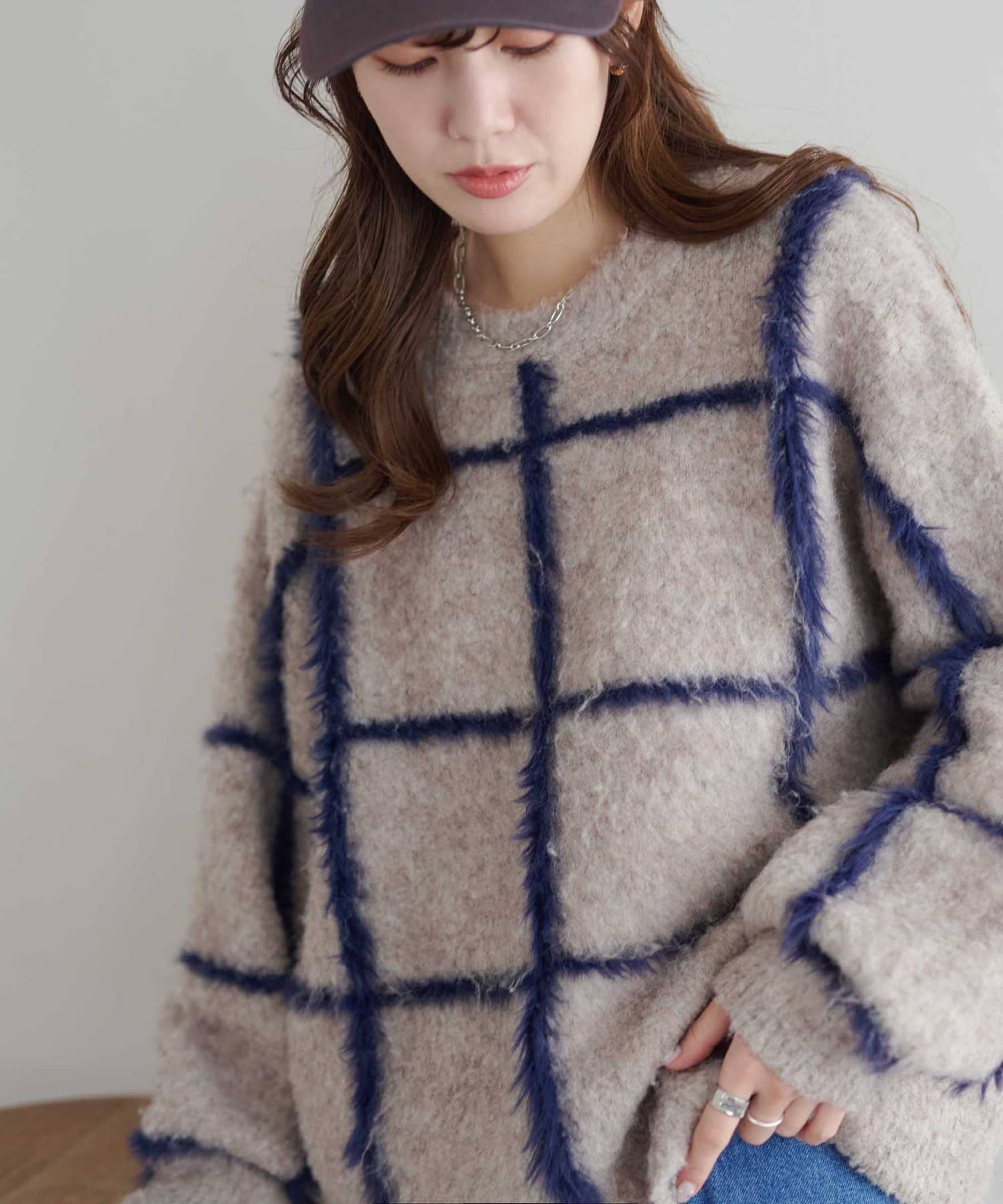 【今年選ぶべきニットはこれ!】チェック柄プルオーバー《WEB限定カラーあり》