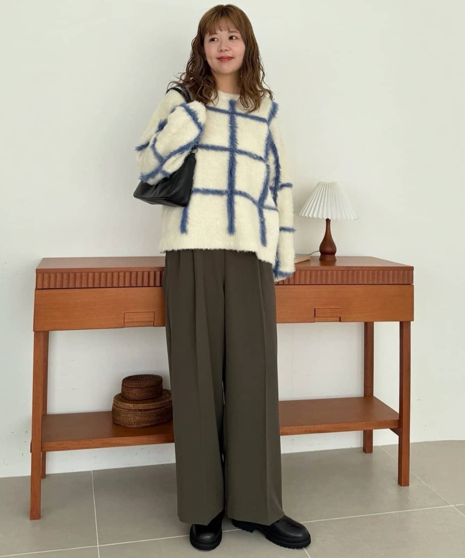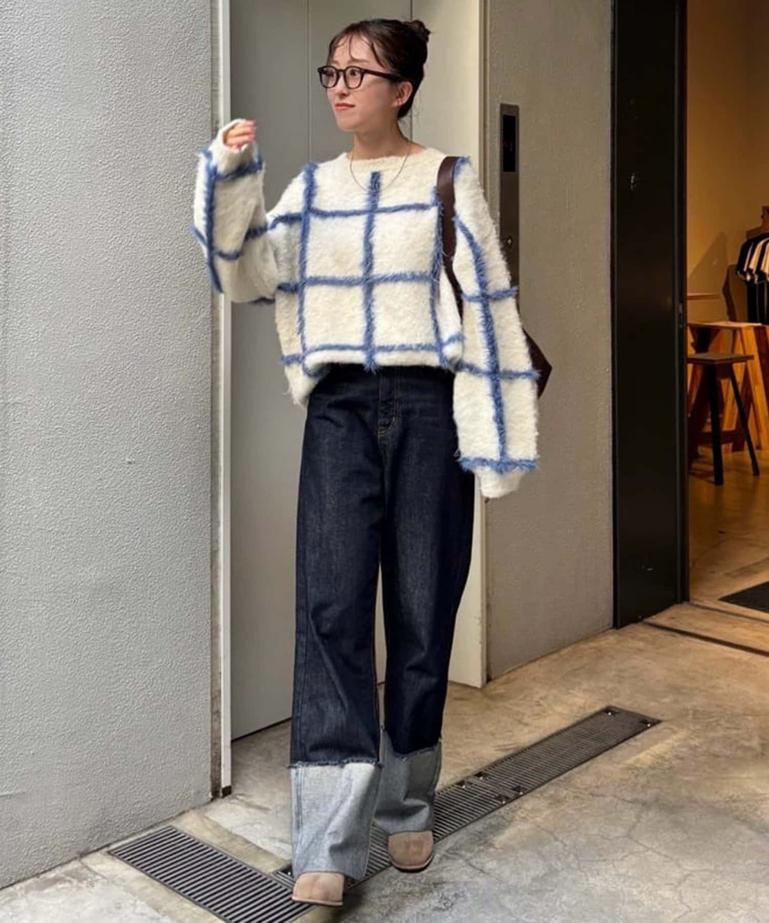 チェック柄で魅せる、ゆったりシルエットの旬スタイル