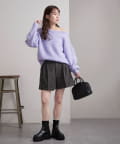157cmスタッフ:ワンショルデザインで女性らしさのあるニット。裾がリブになっていることで、タックインせず着てももたつかずスッキリ見えします!