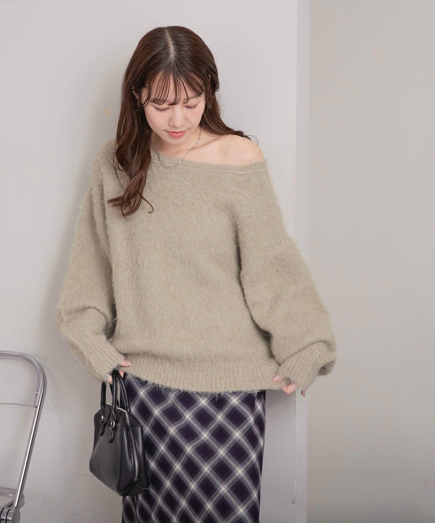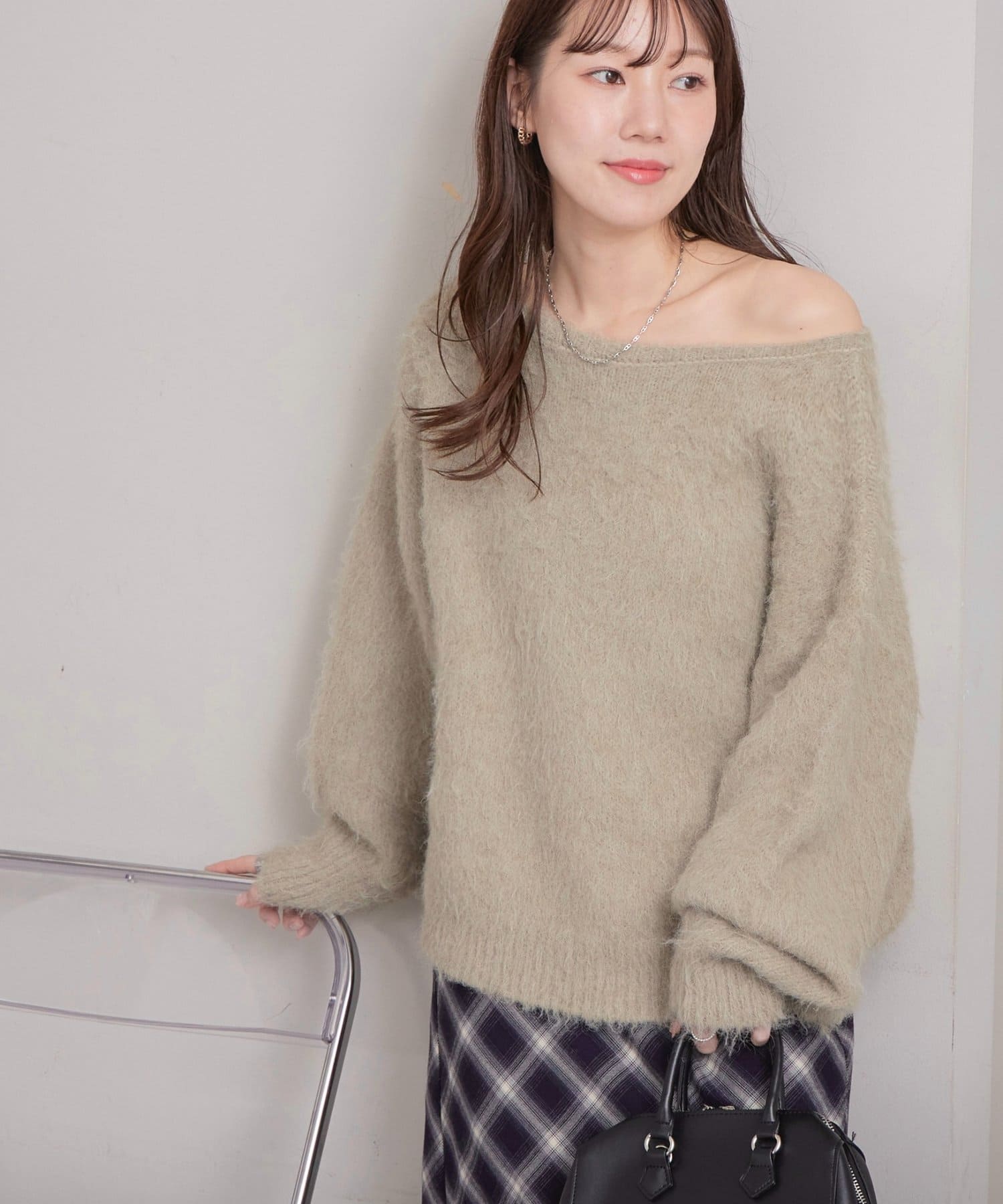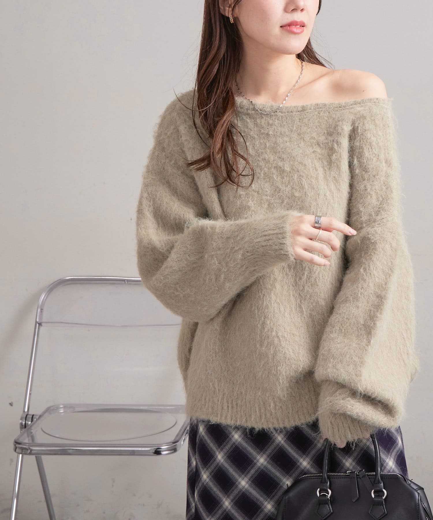 抜け感ただよう大人のワンショルニット