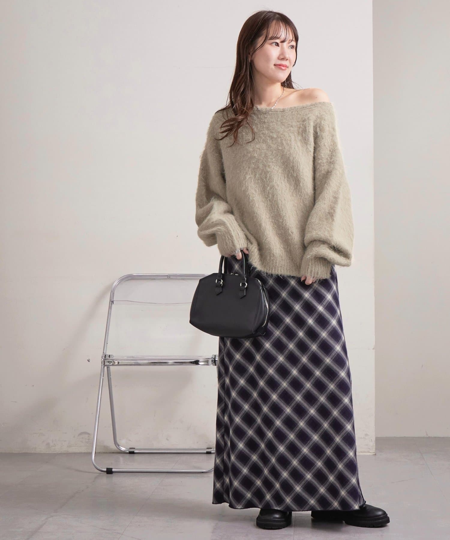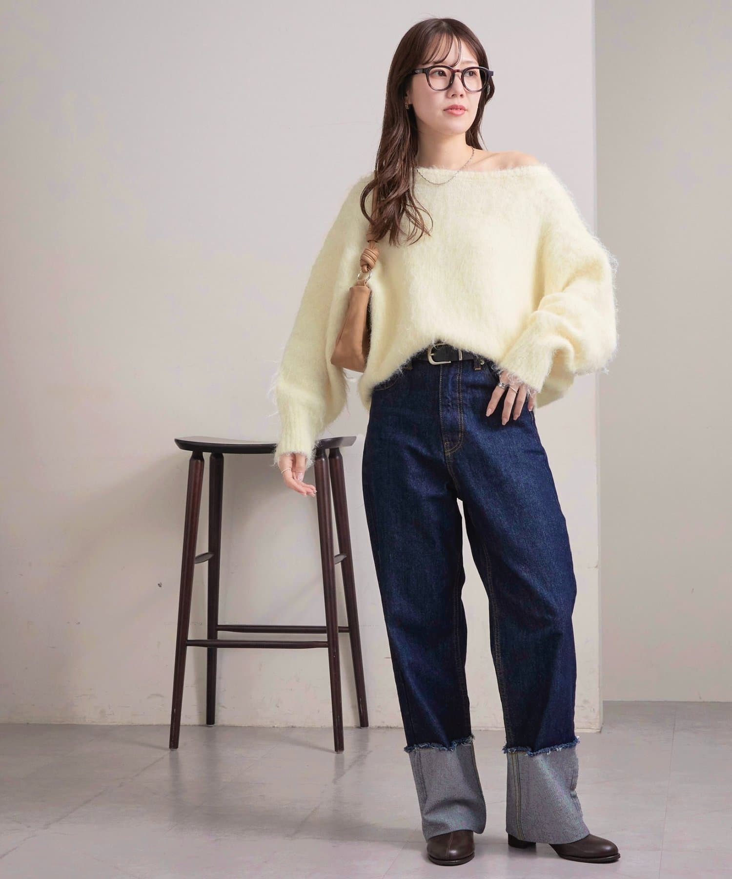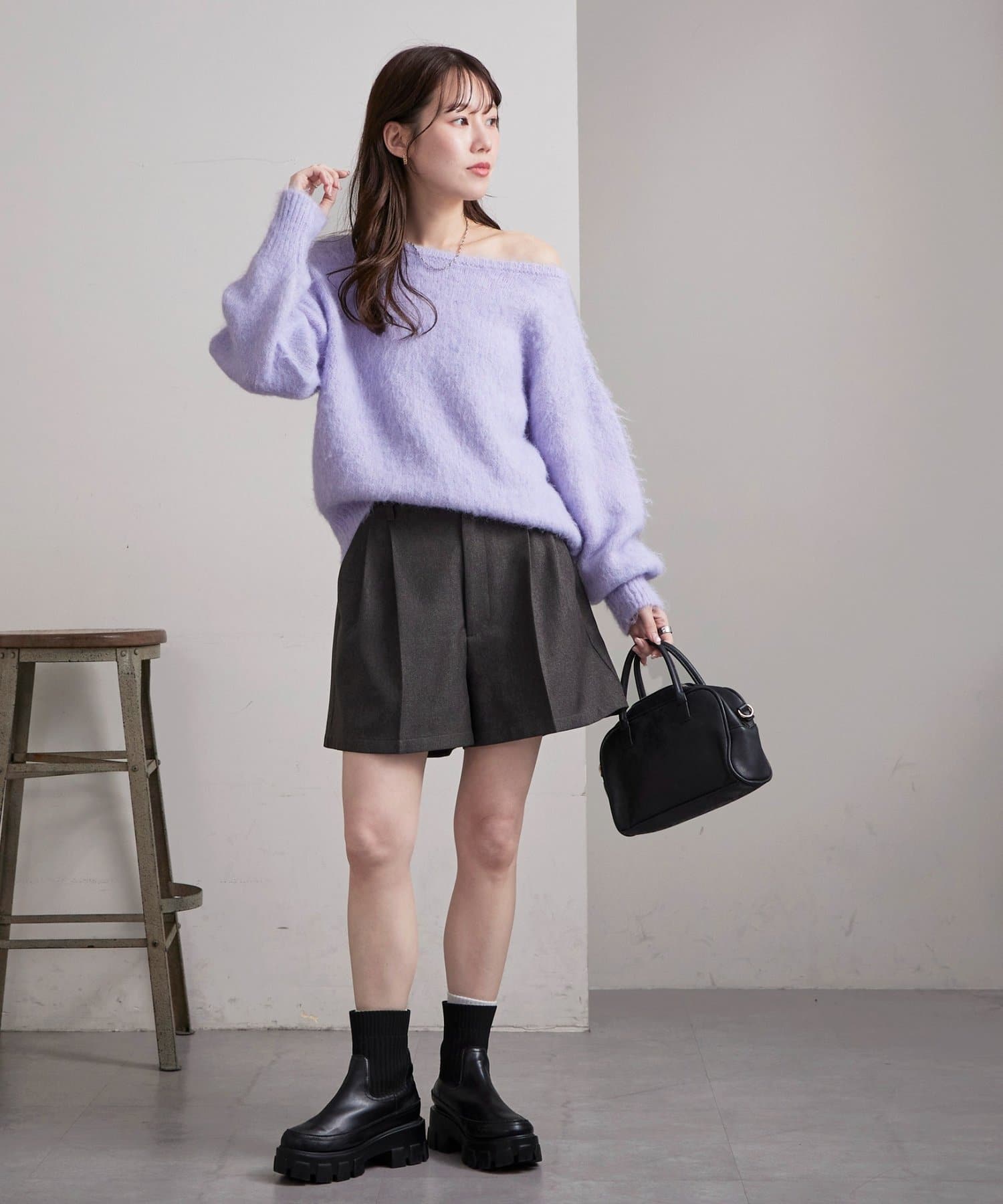 抜け感ただよう大人のワンショルニット