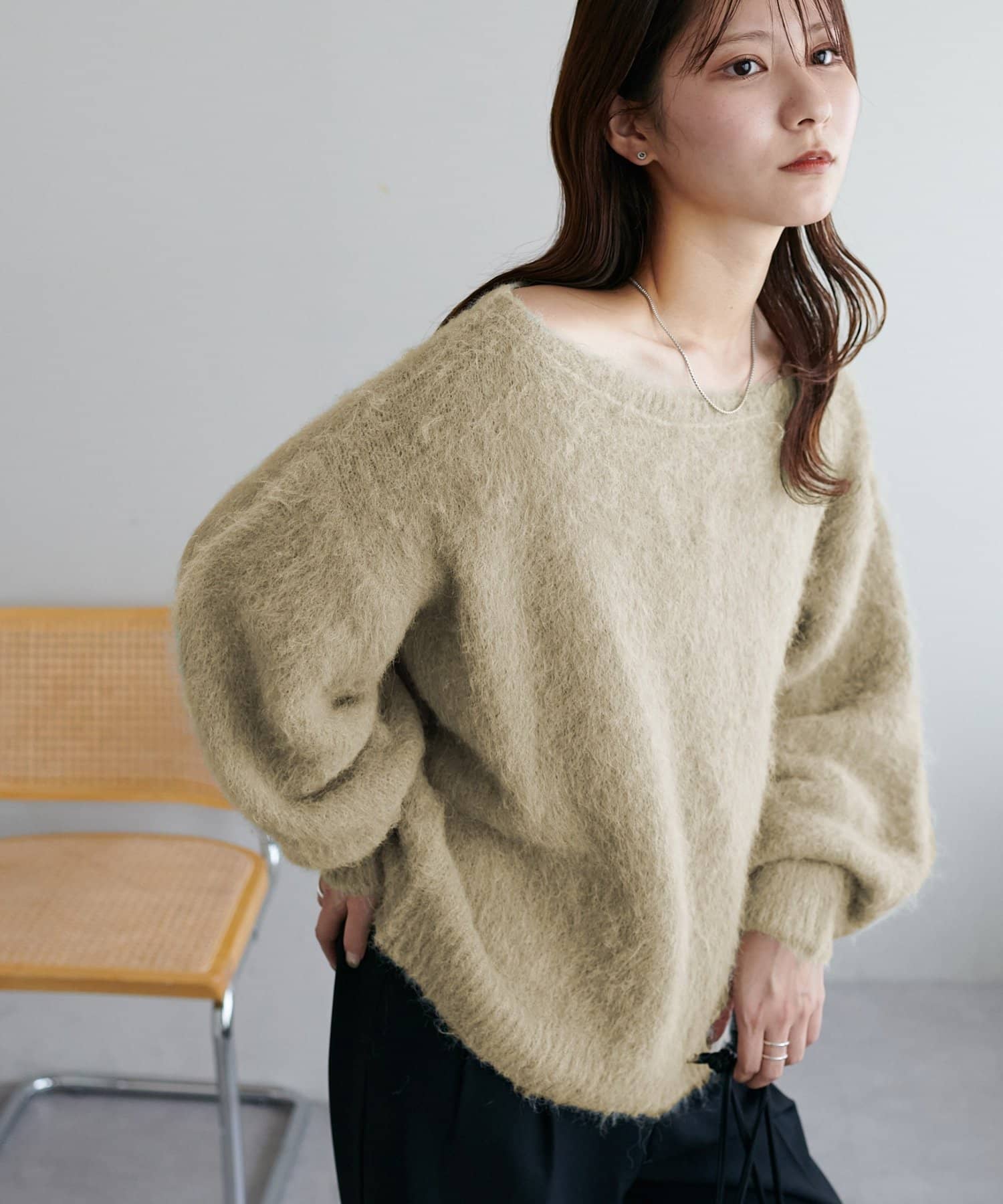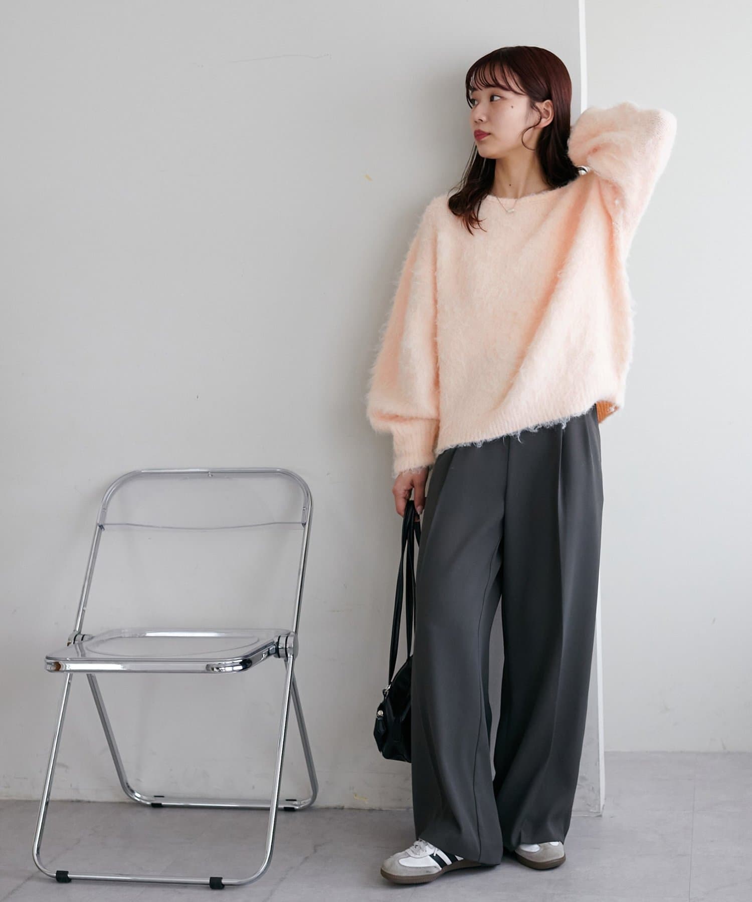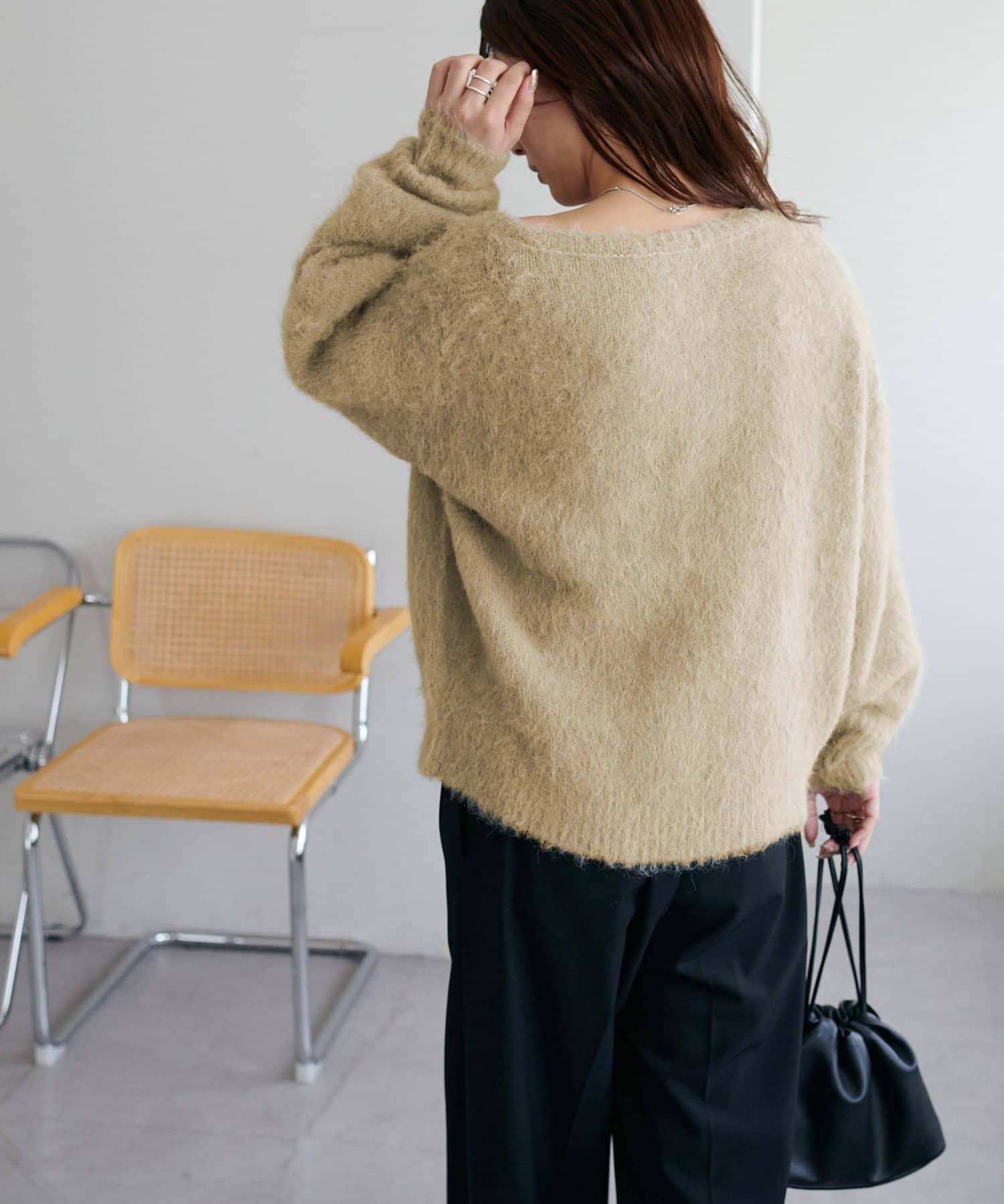 ふんわりとしたシャギー素材がシーズンムードたっぷりなプルオーバー。