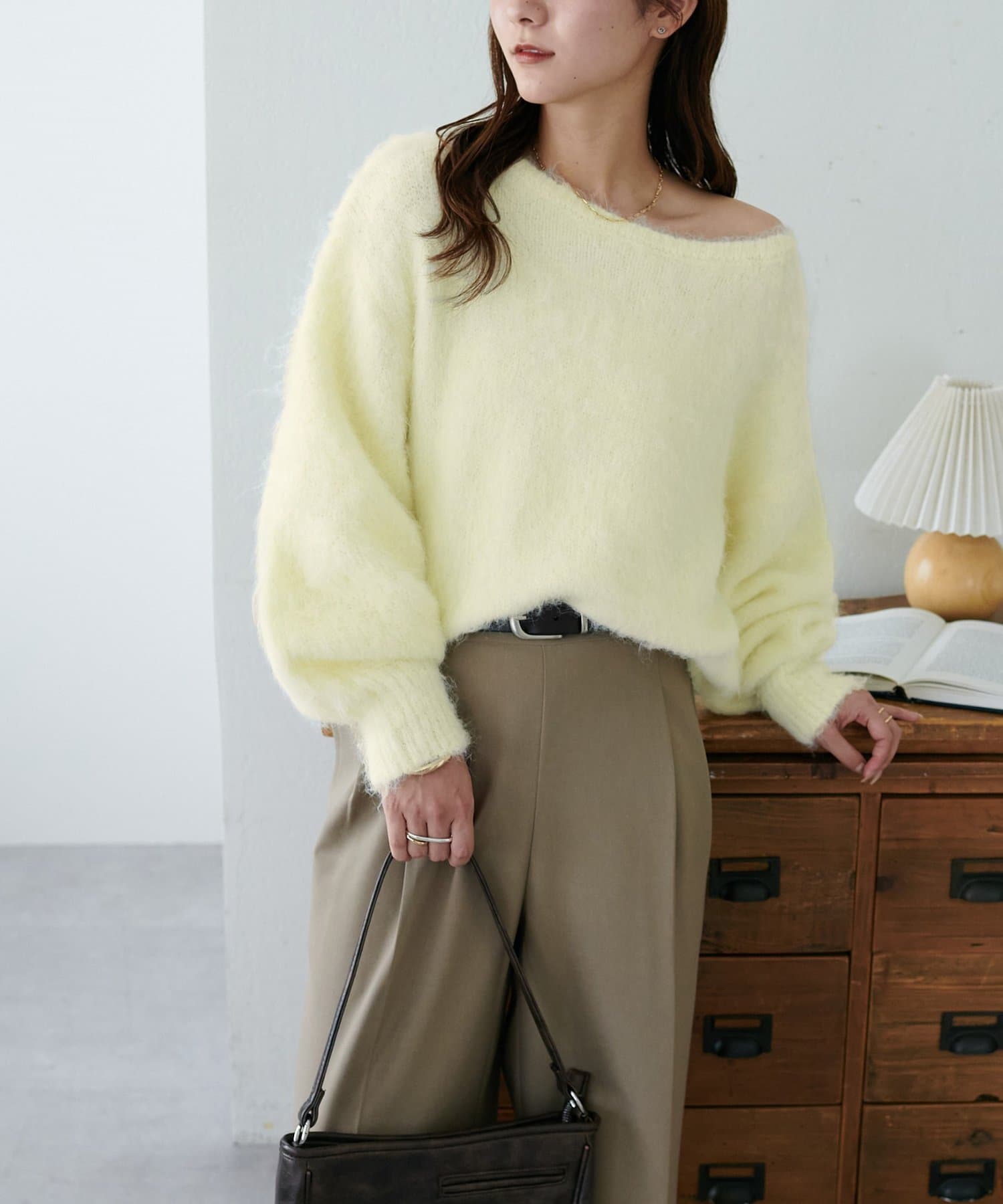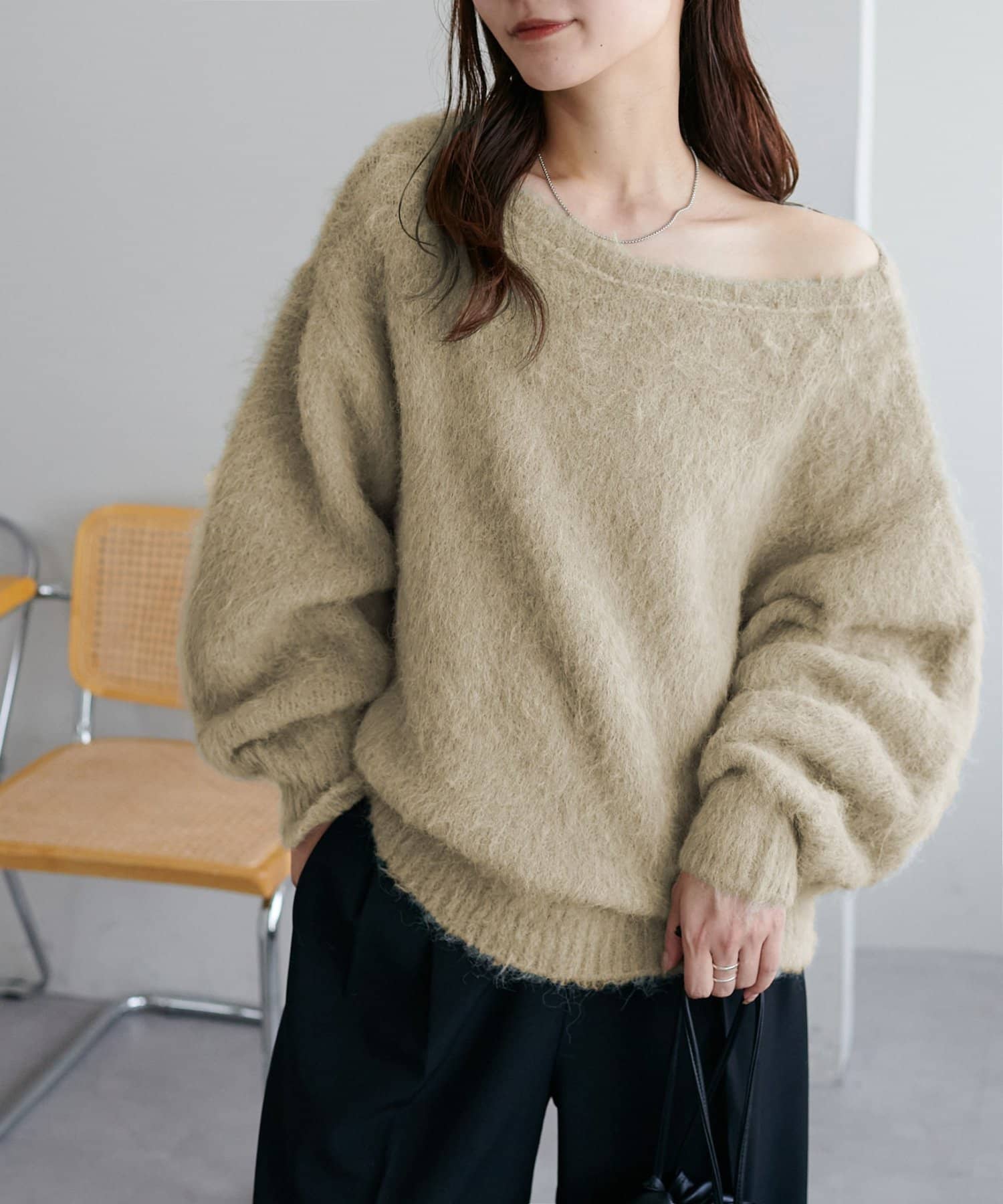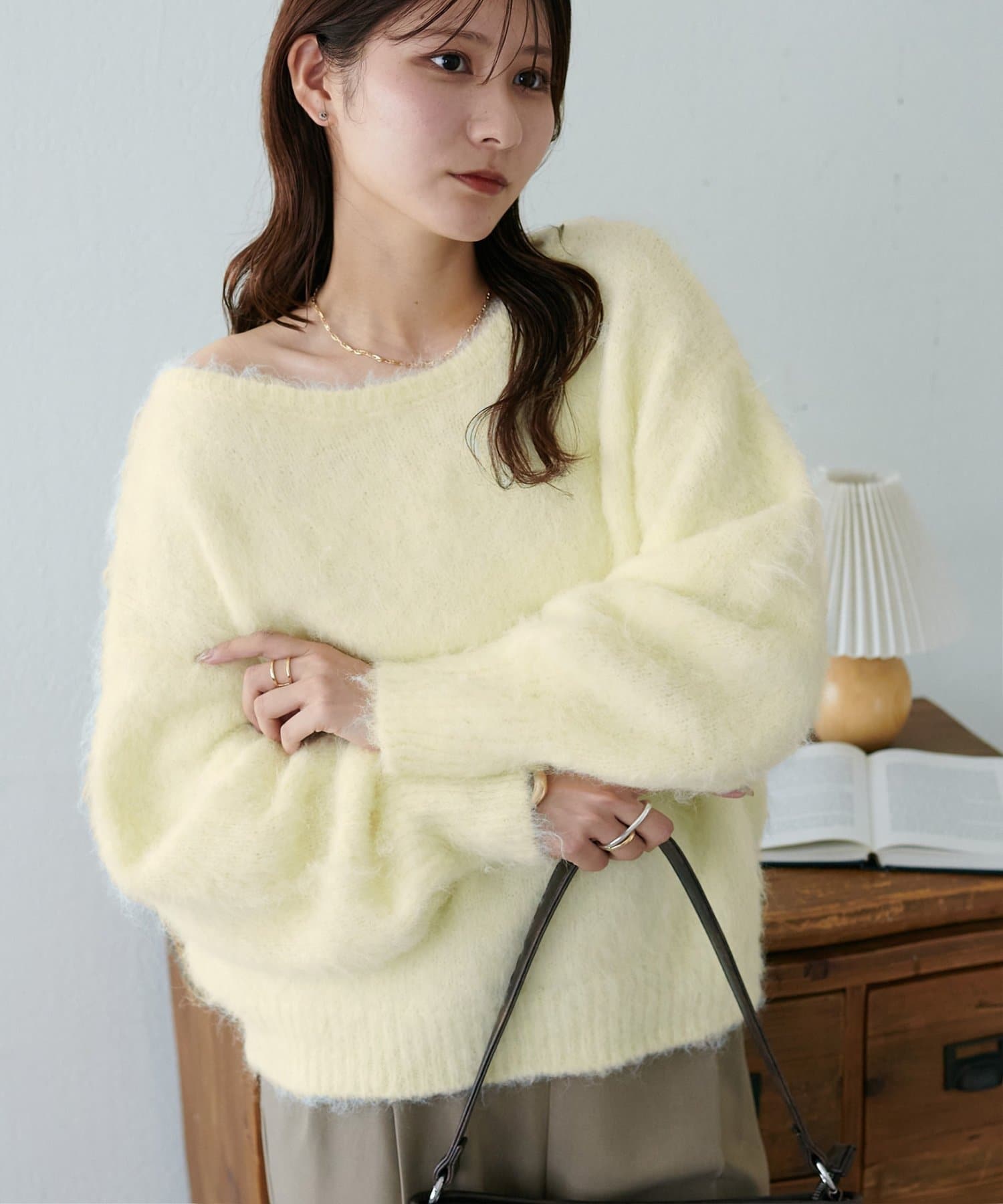 ふんわりとしたシャギー素材がシーズンムードたっぷりなプルオーバー。