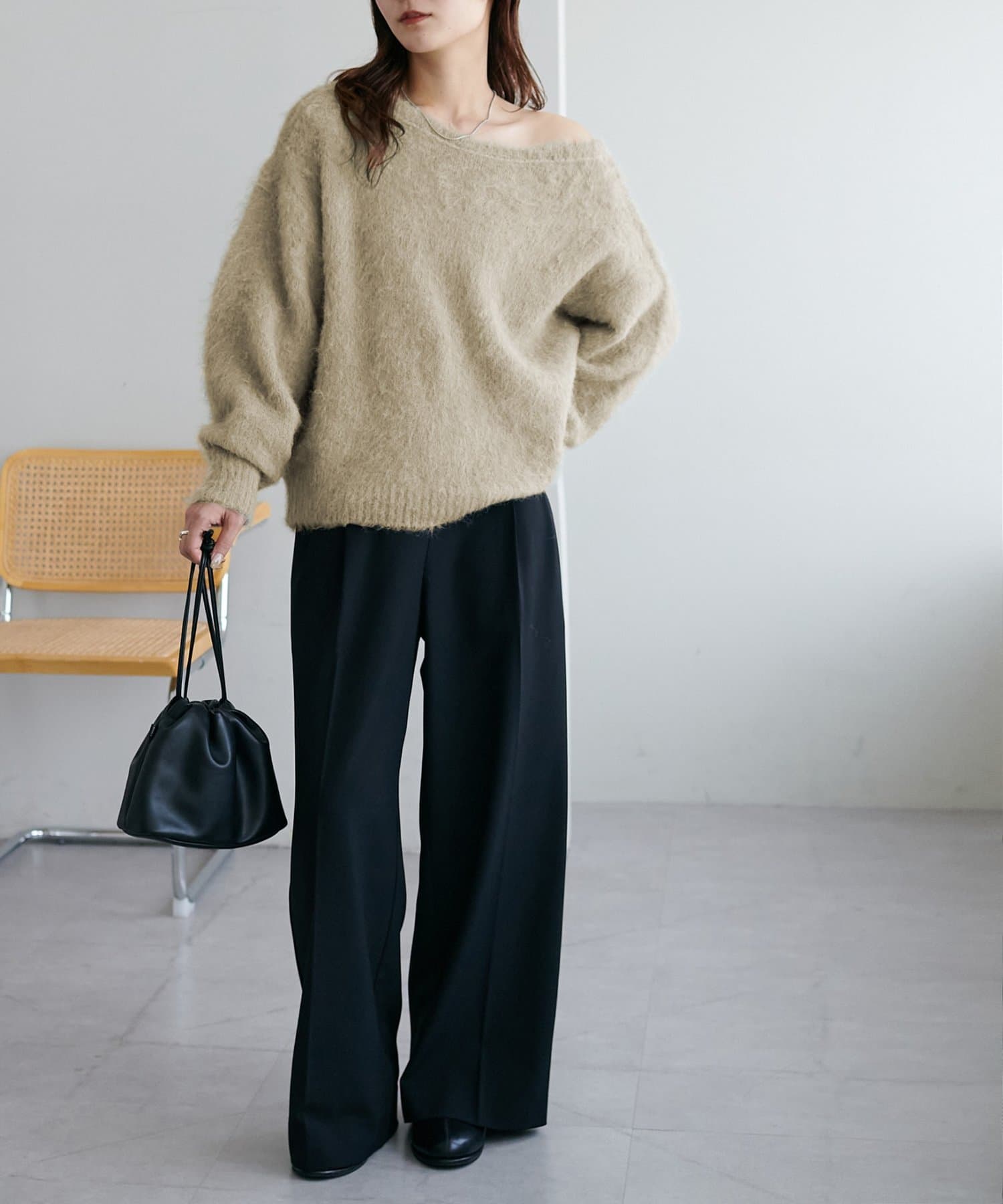 程よい開きのワンショルダーデザインが、リラックス感の中にも大人の抜け感を演出します。
