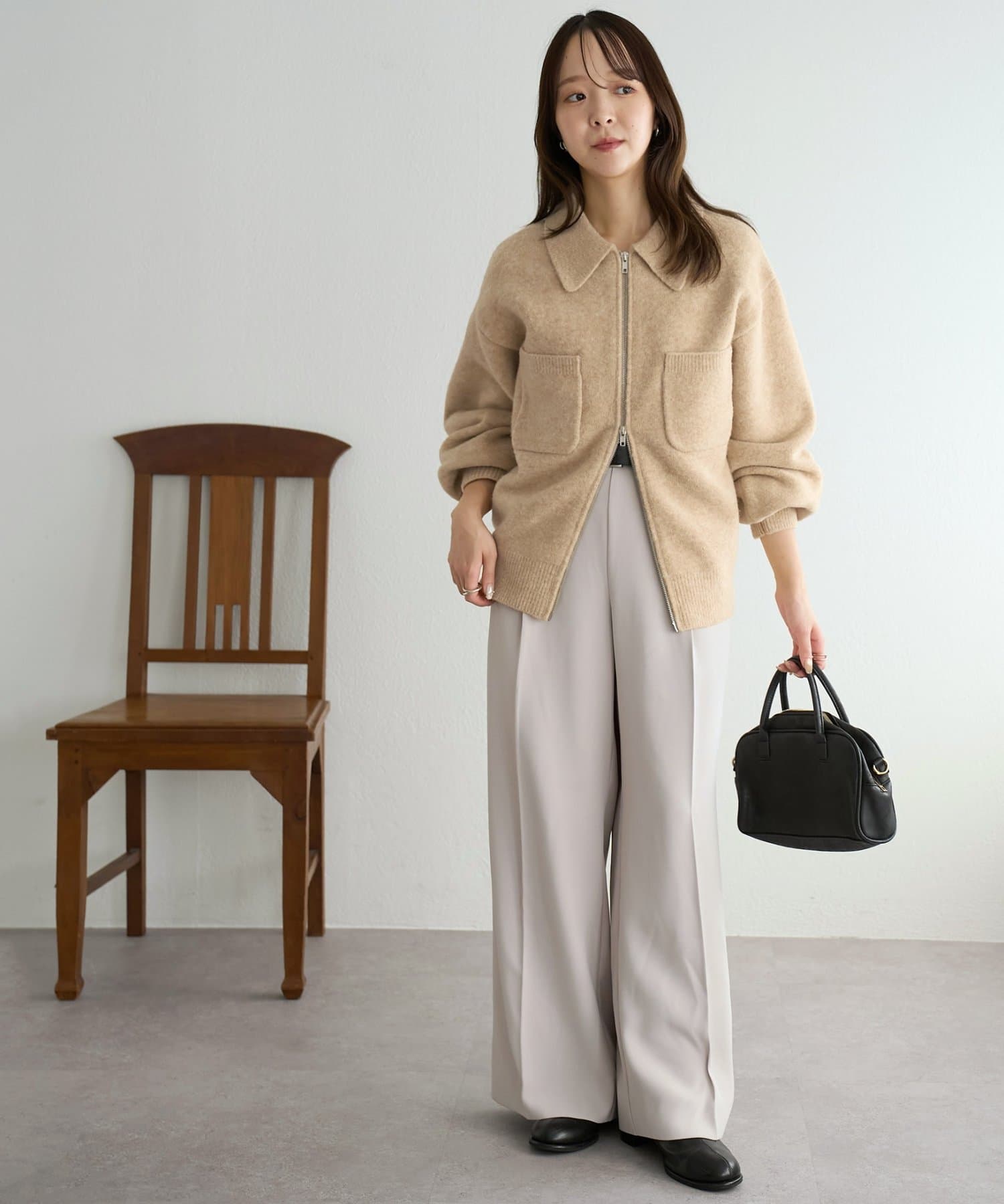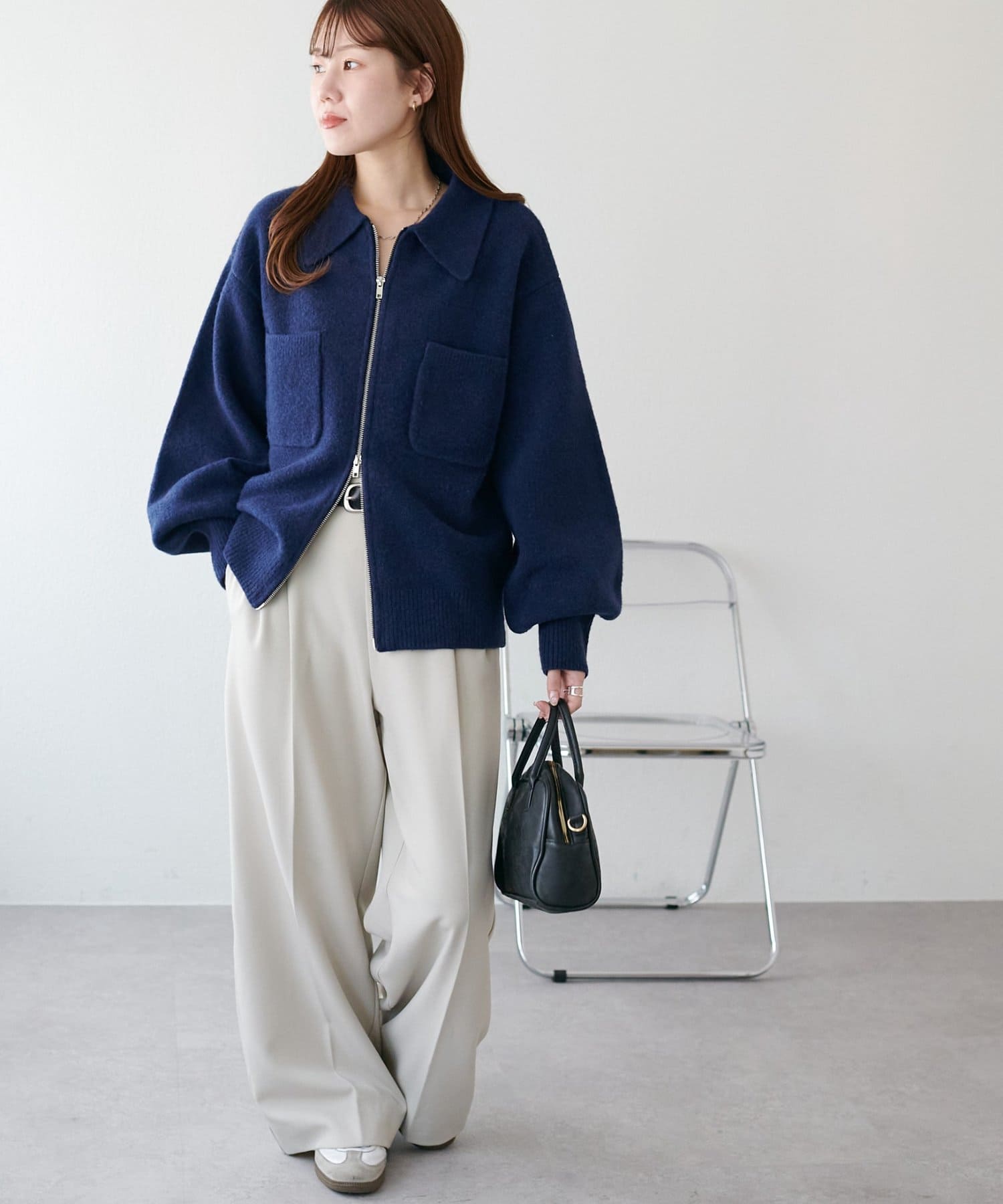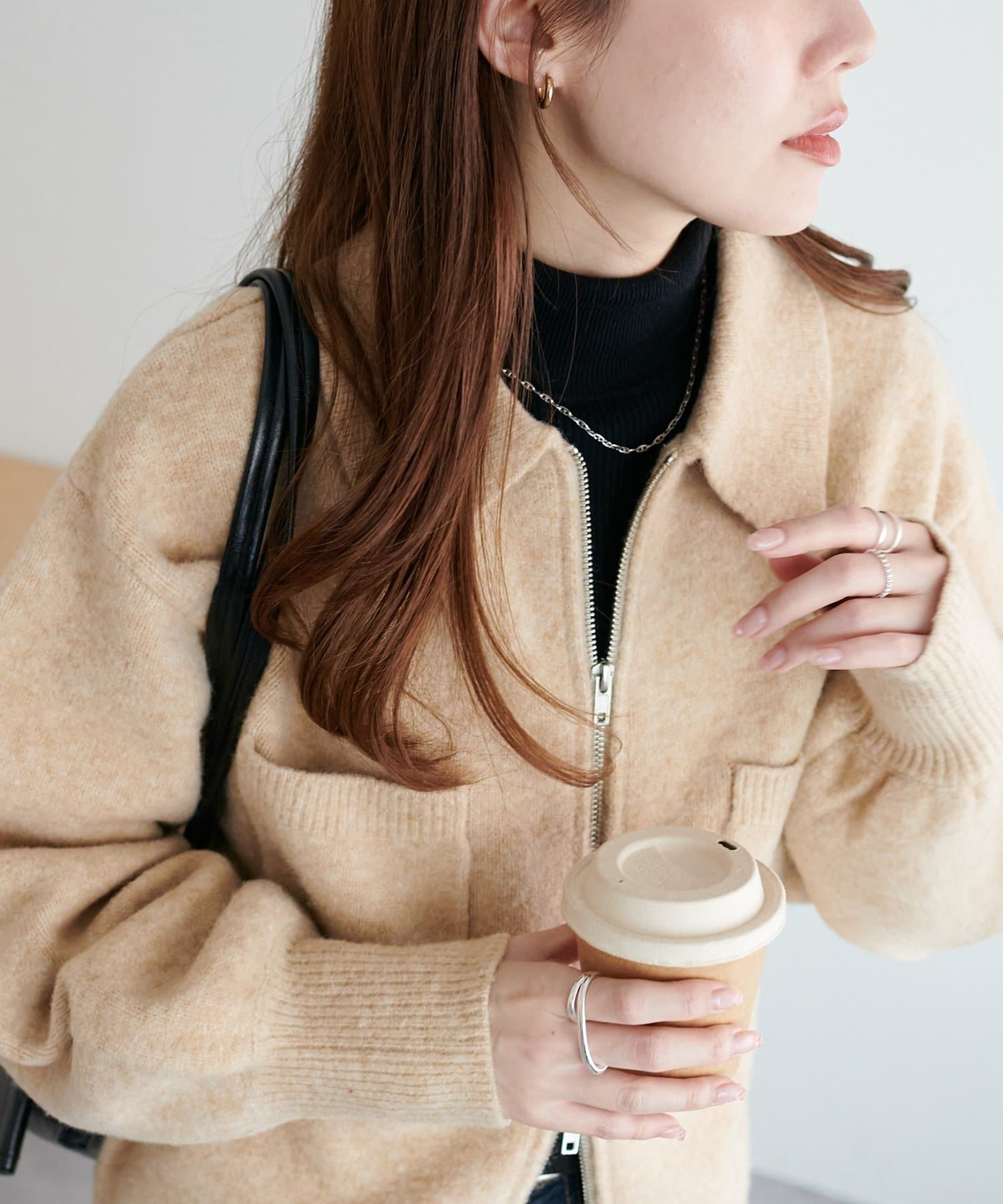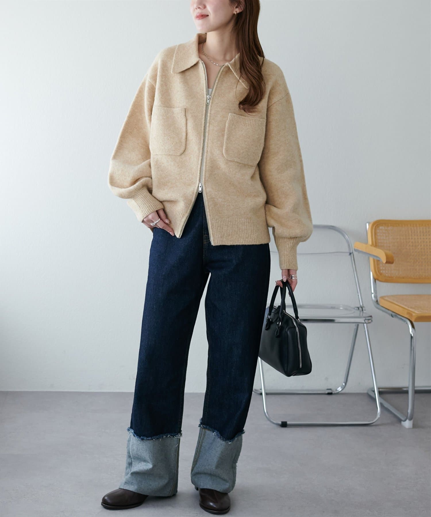 ジップの開け具合でコーデの雰囲気が変わるのもポイントです!