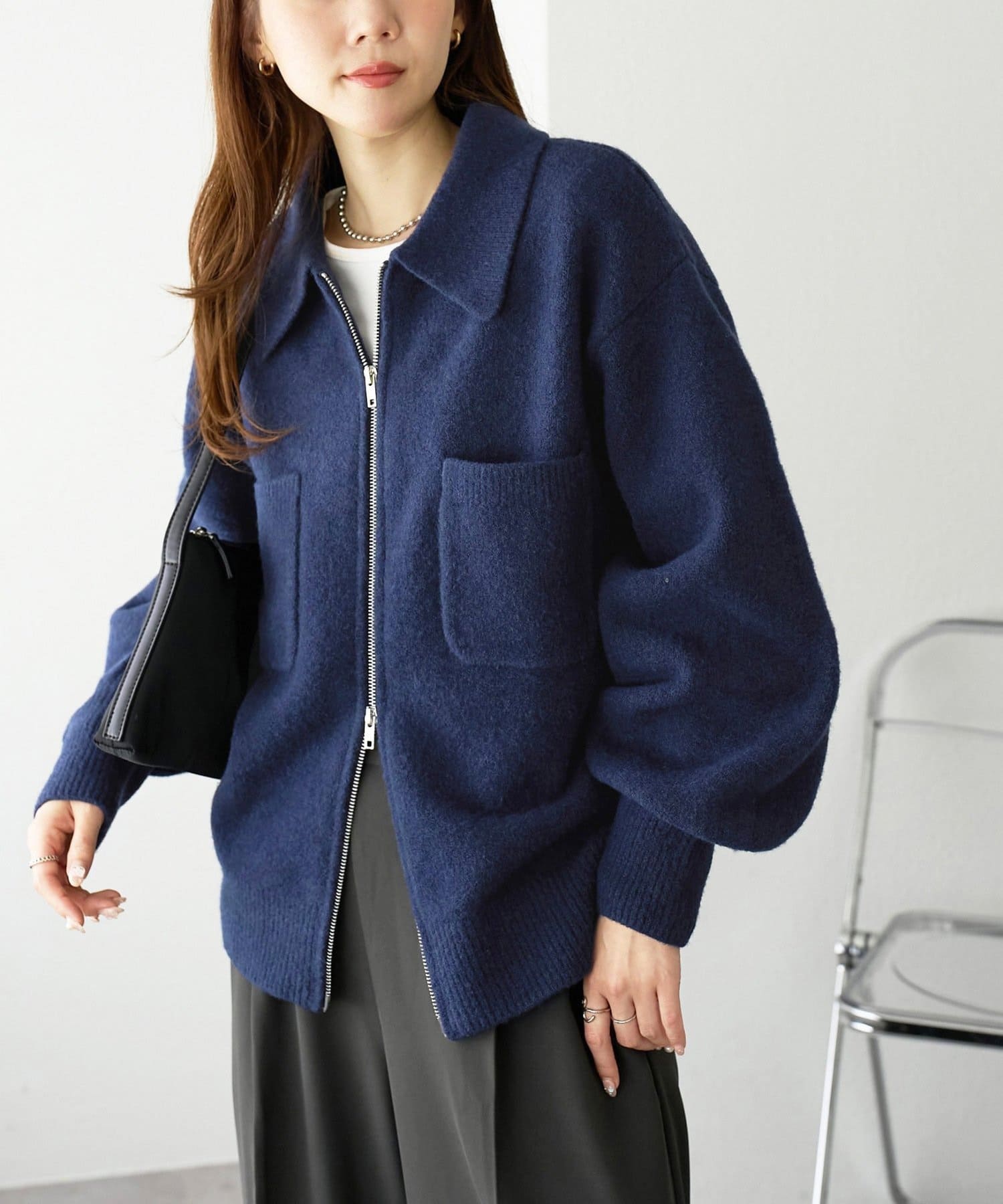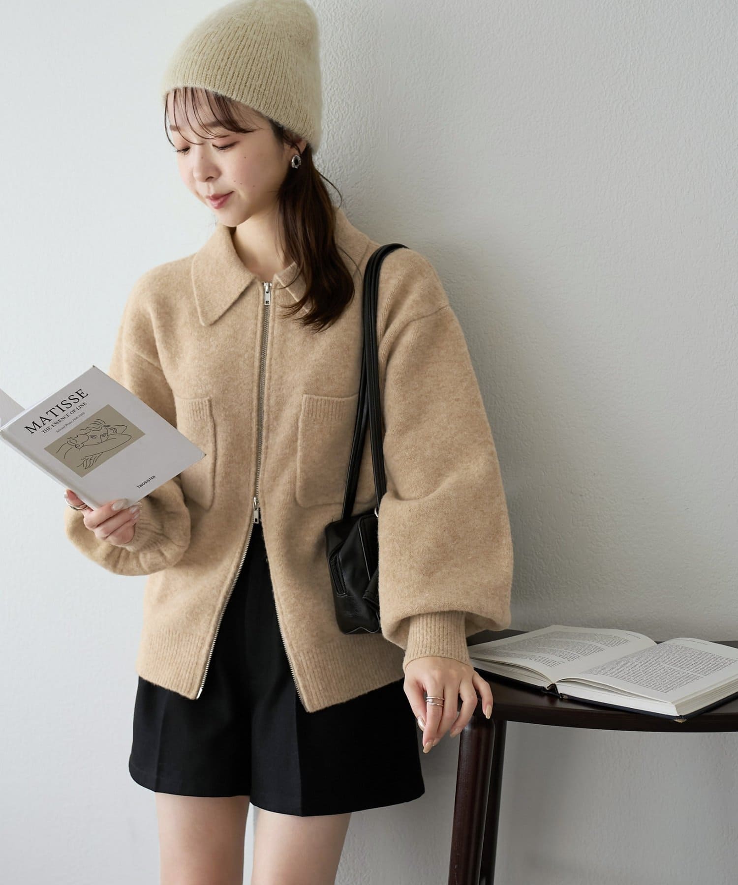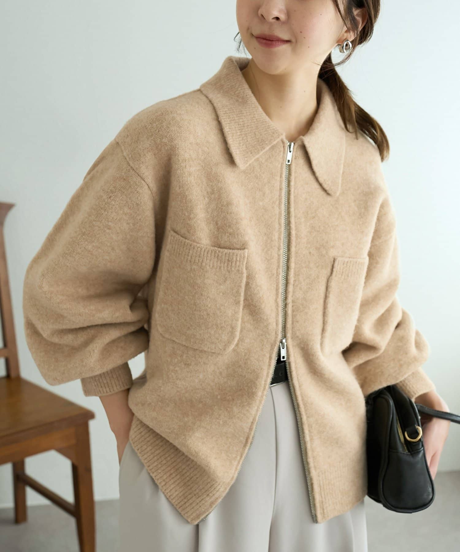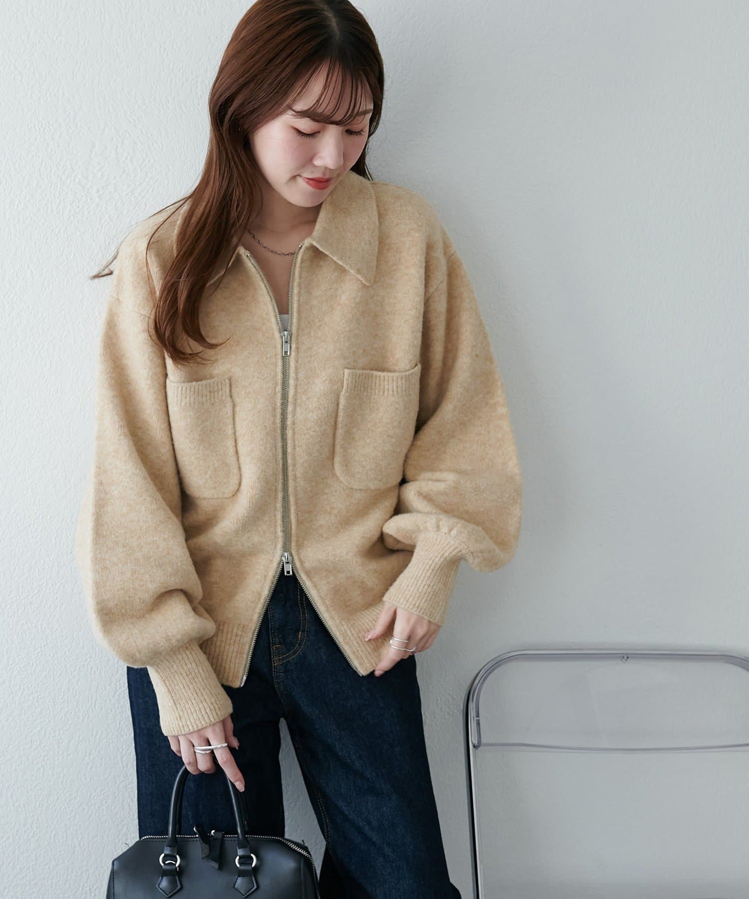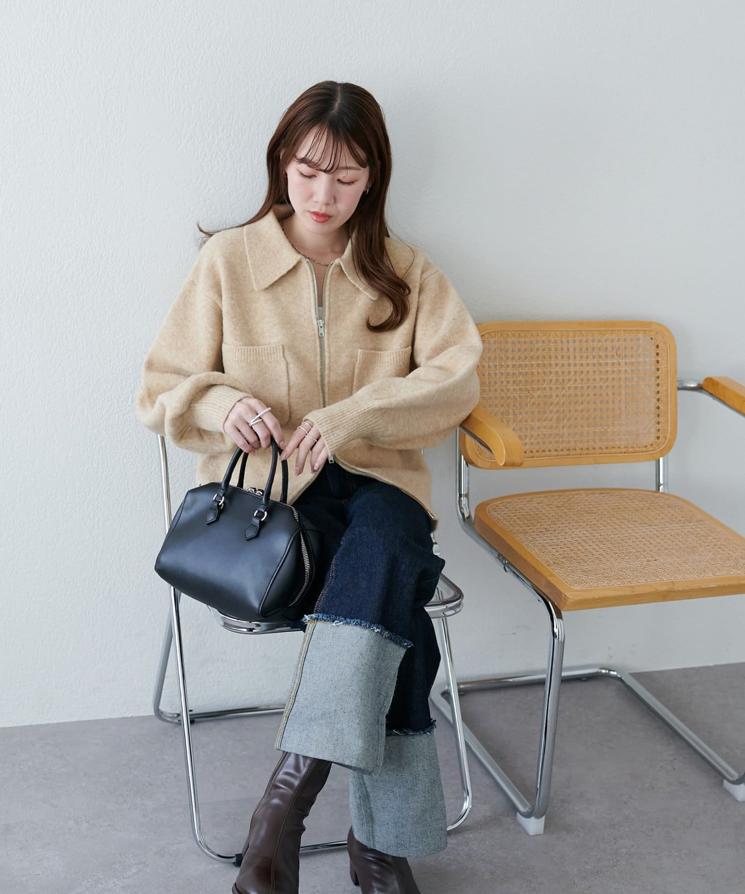 ジップの開け具合でコーデの雰囲気が変わるのもポイントです!