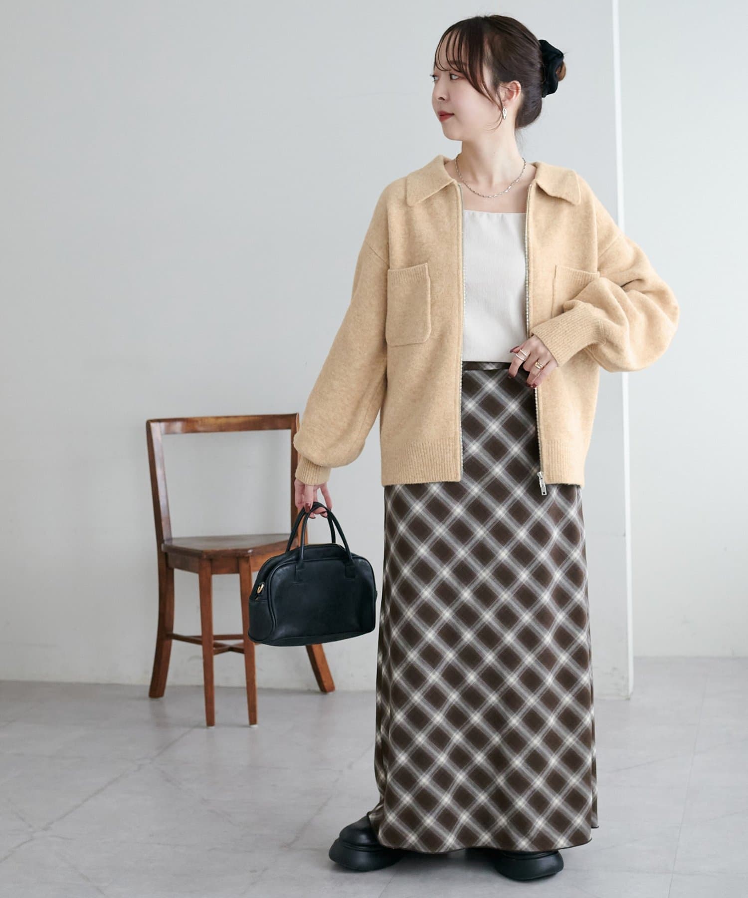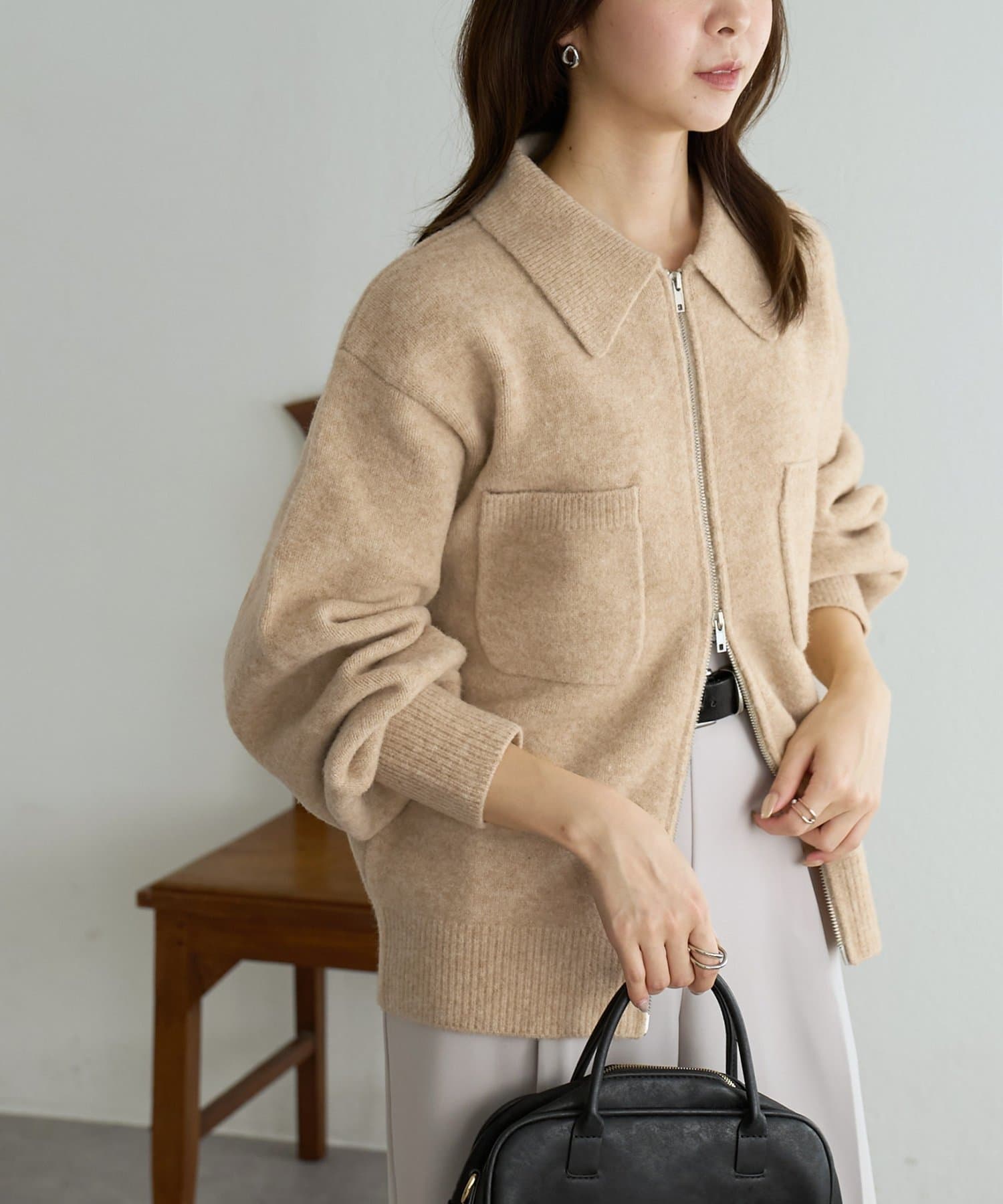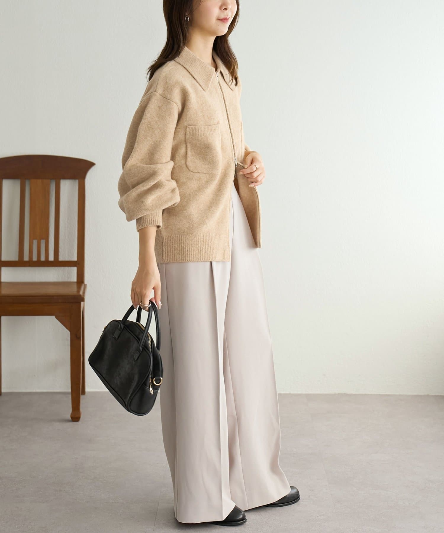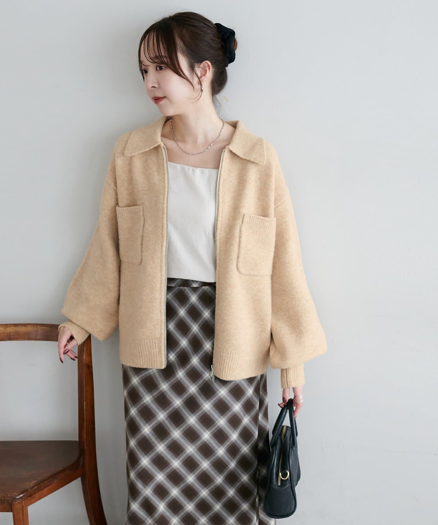 ジップの開け具合でコーデの雰囲気が変わるのもポイントです!
