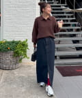 衿付きのデザインがカジュアルさをプラスし、ラフに見えすぎず素材感で女性らしさを演出◎