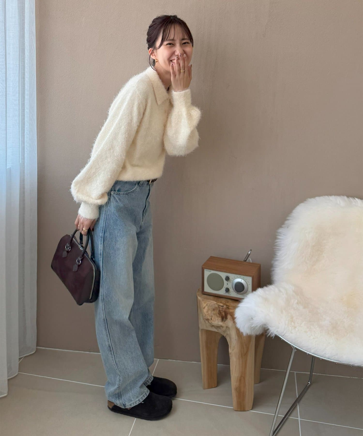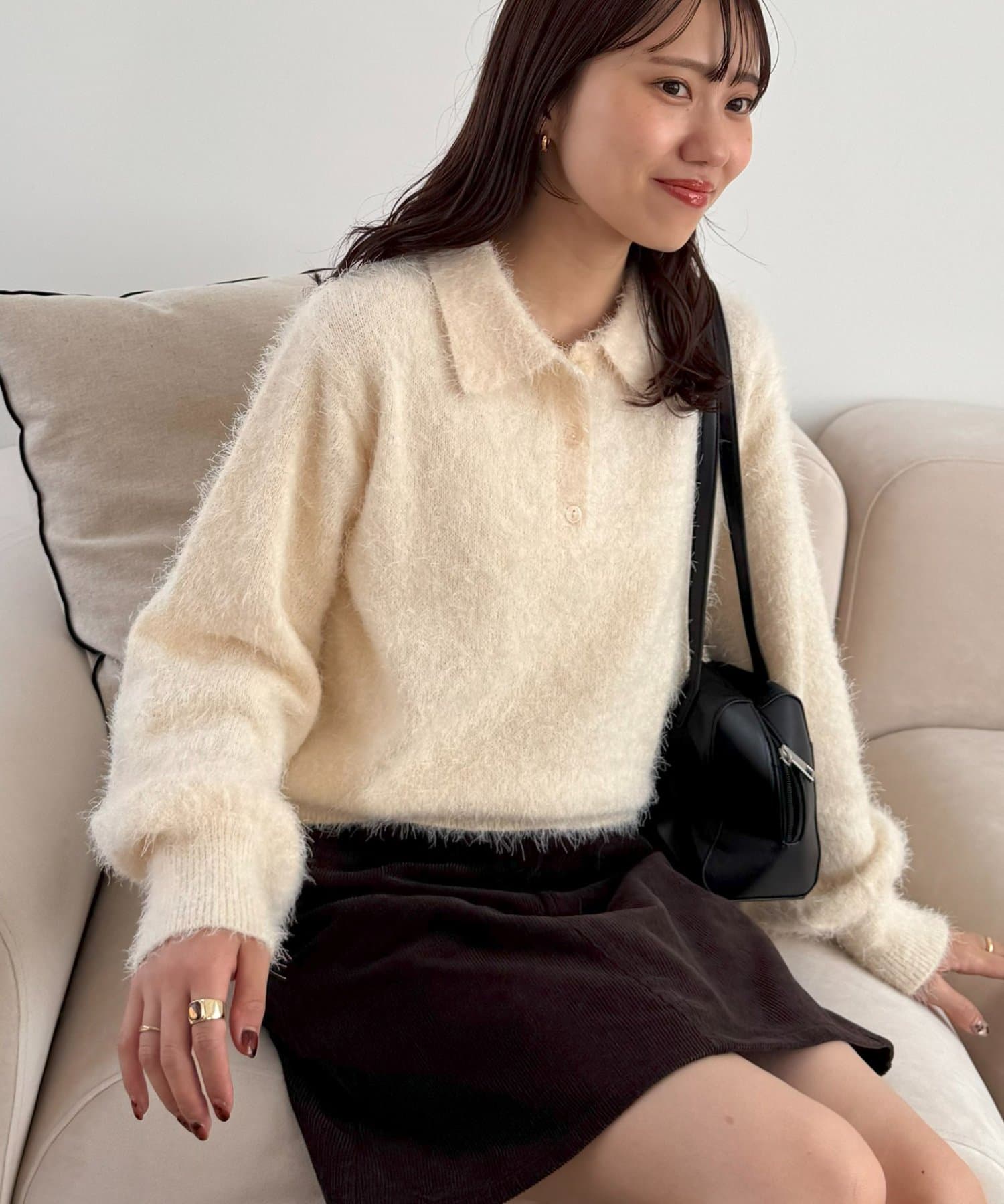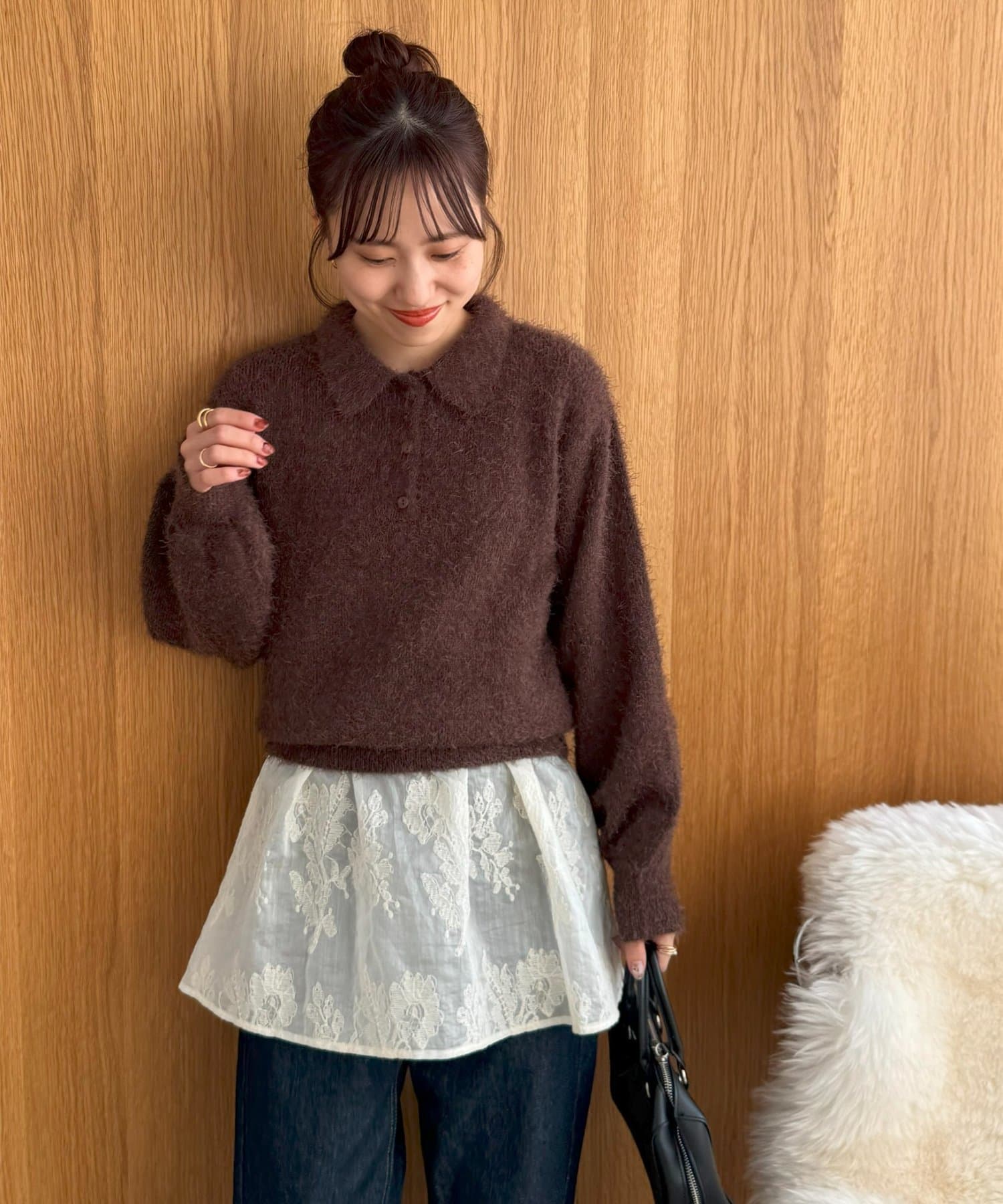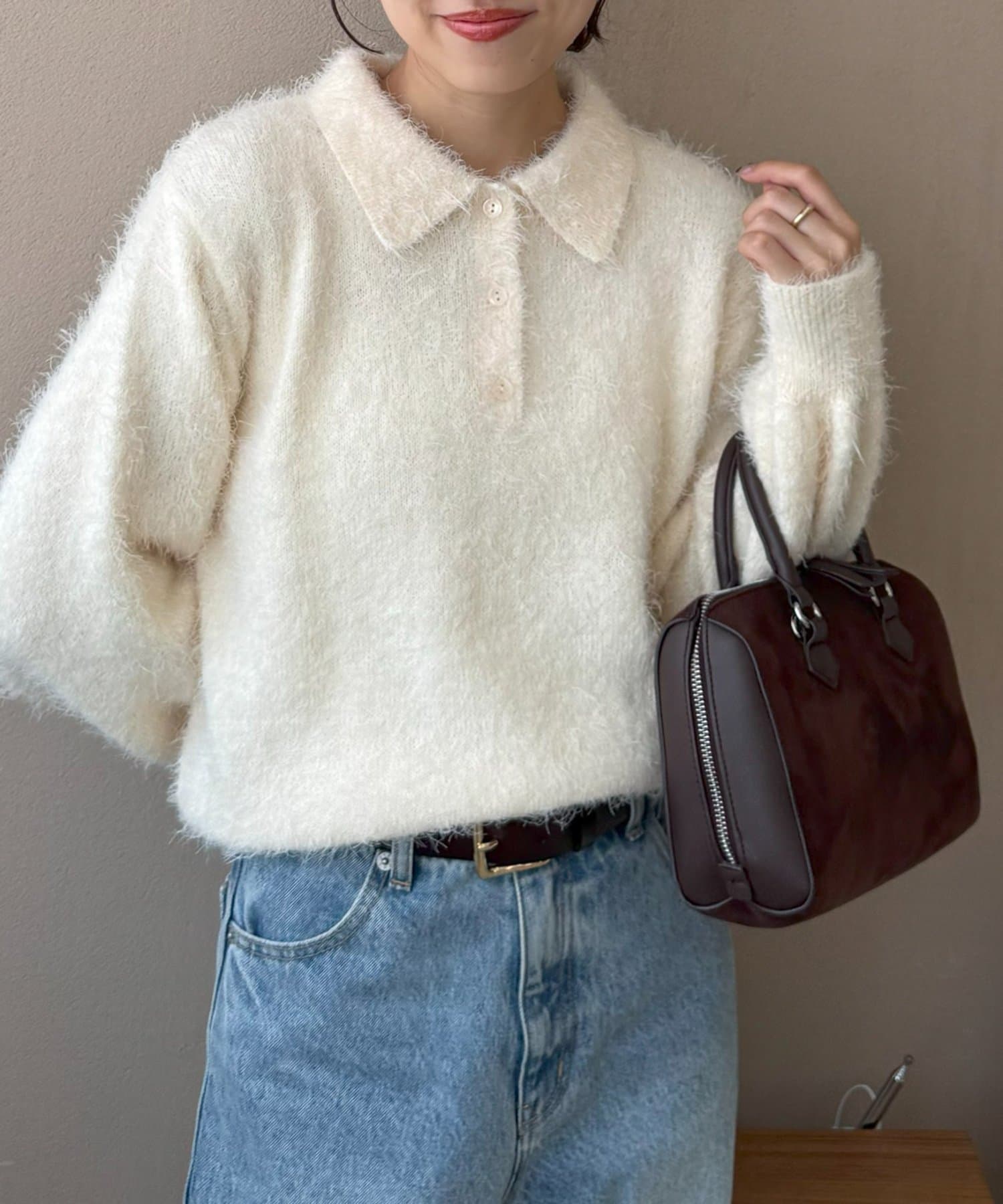 毛足のある素材なので、シンプルなボトムスと合わせるだけで存在感のあるコーデに仕上がります!