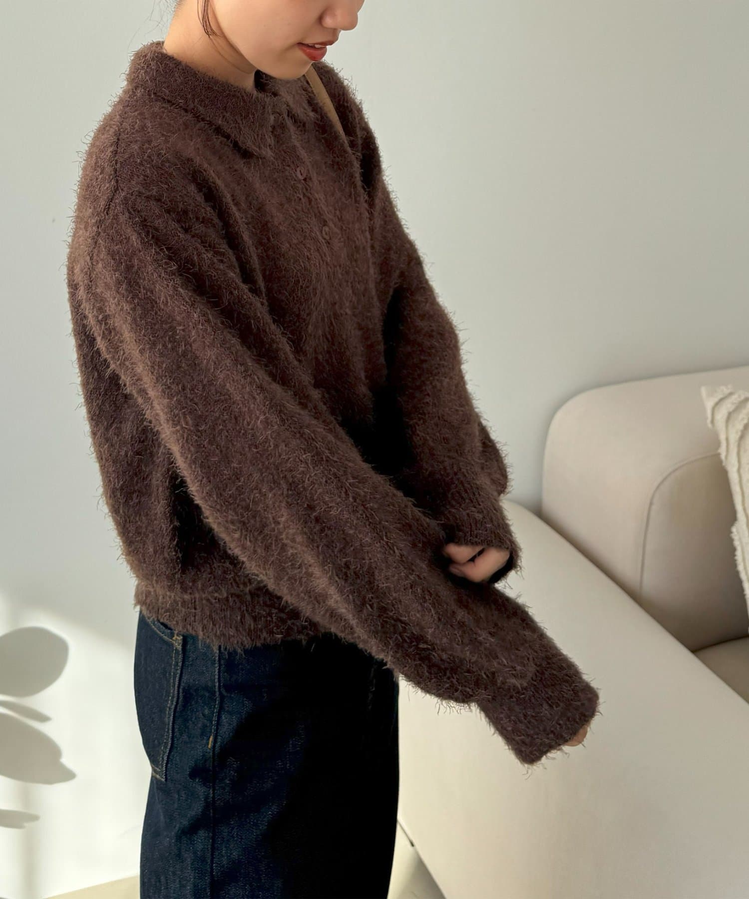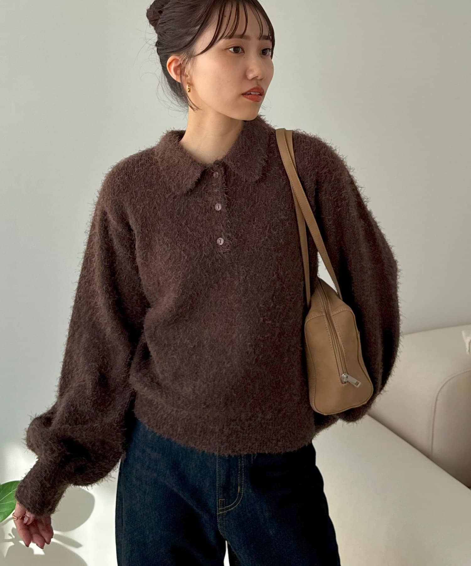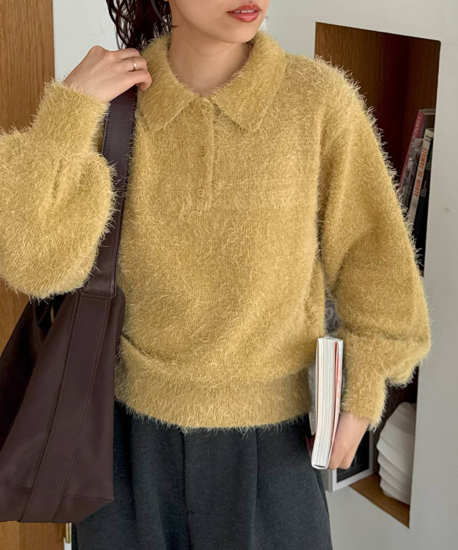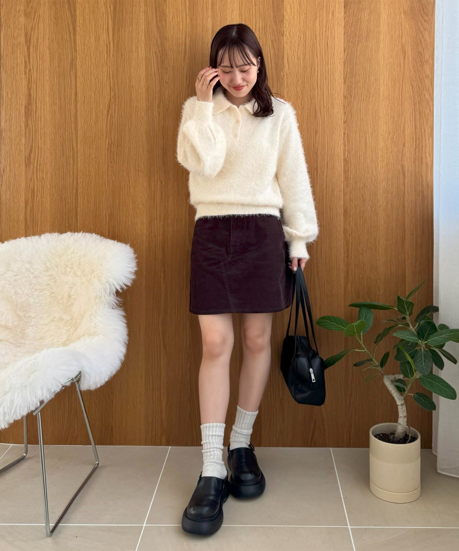 毛足のある素材なので、シンプルなボトムスと合わせるだけで存在感のあるコーデに仕上がります!