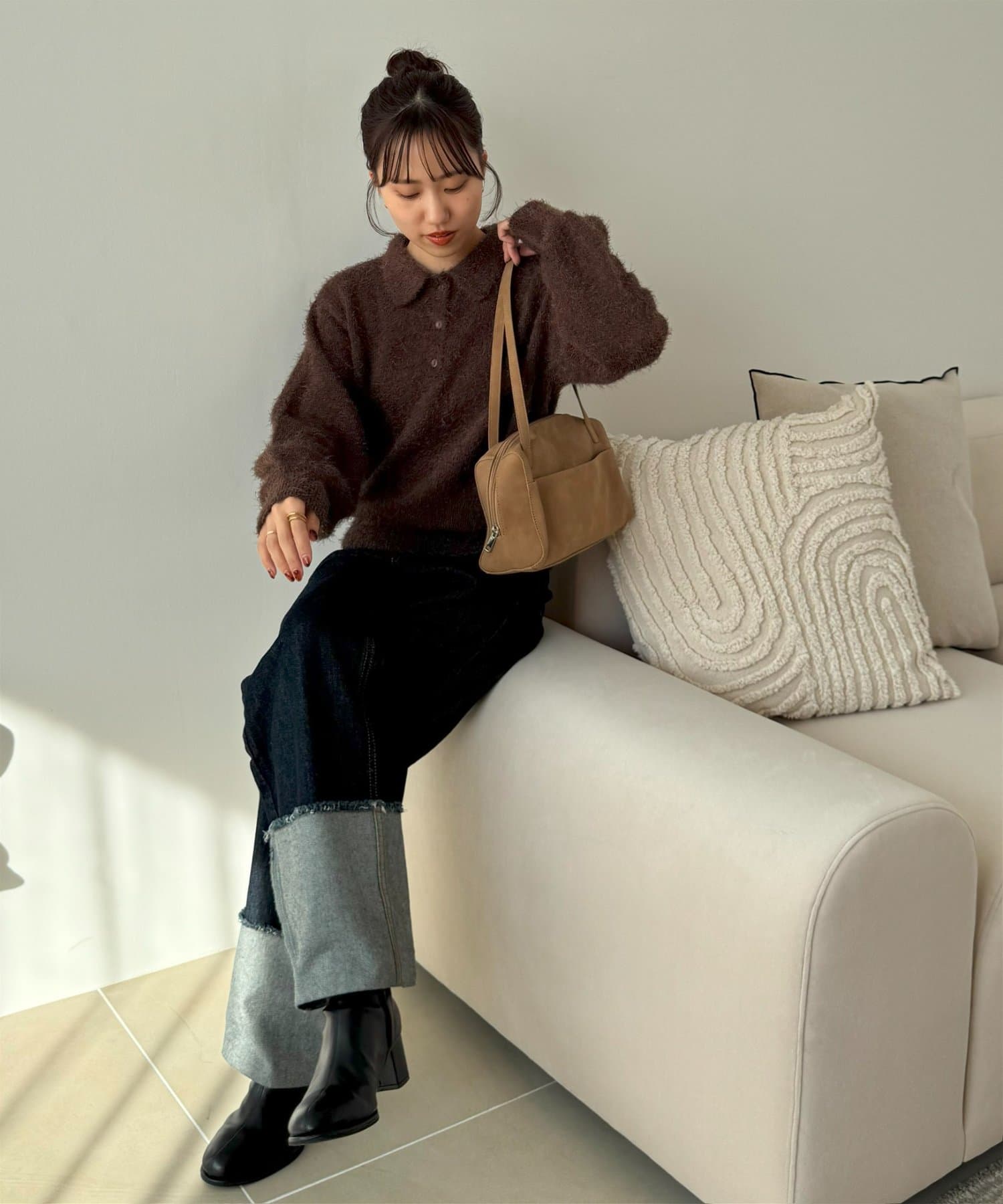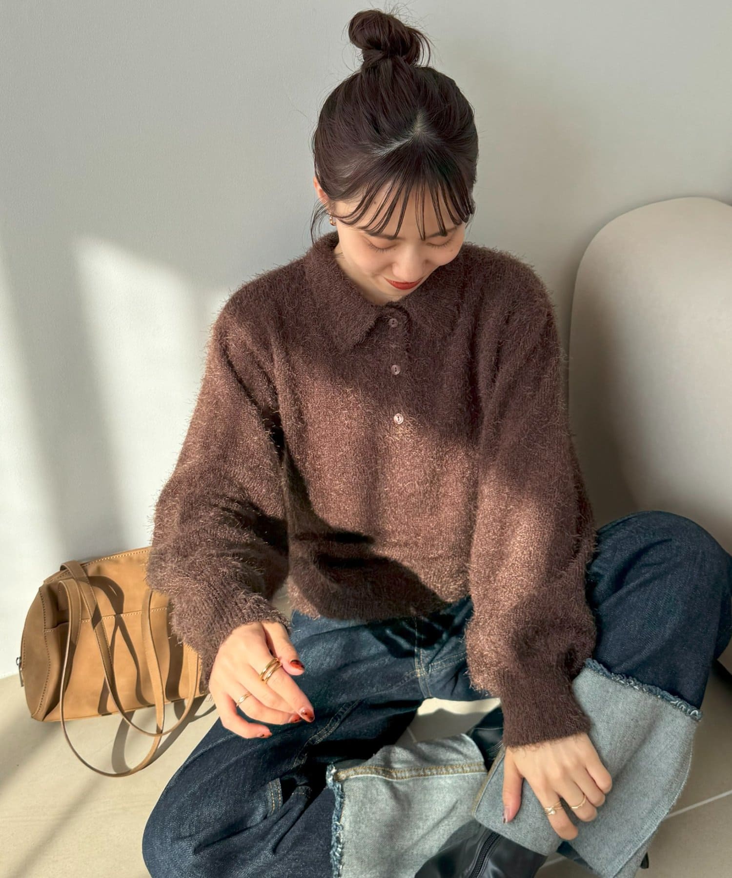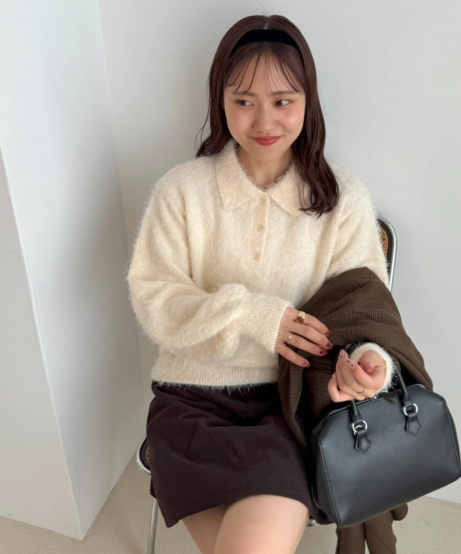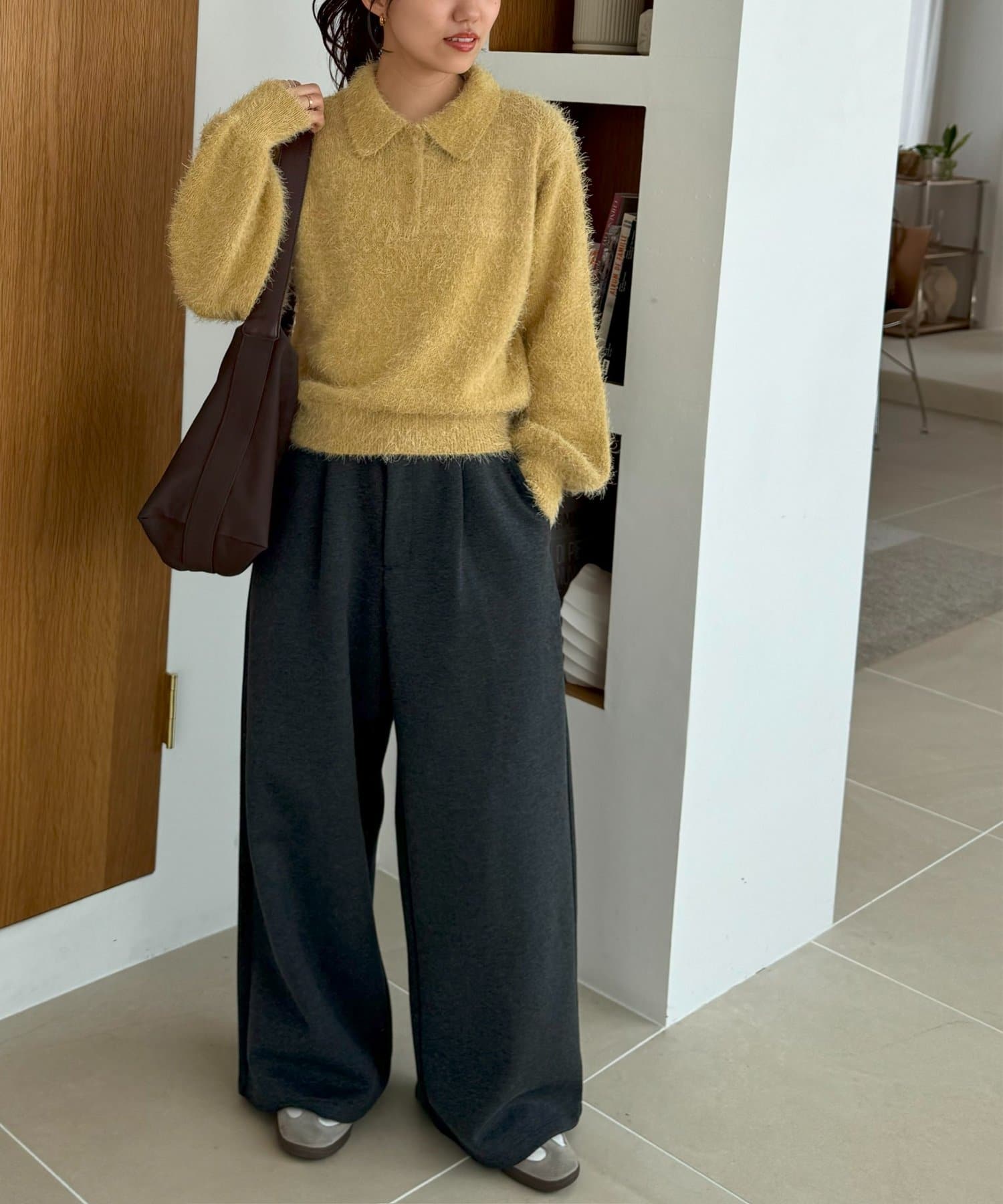 毛足のある素材なので、シンプルなボトムスと合わせるだけで存在感のあるコーデに仕上がります!
