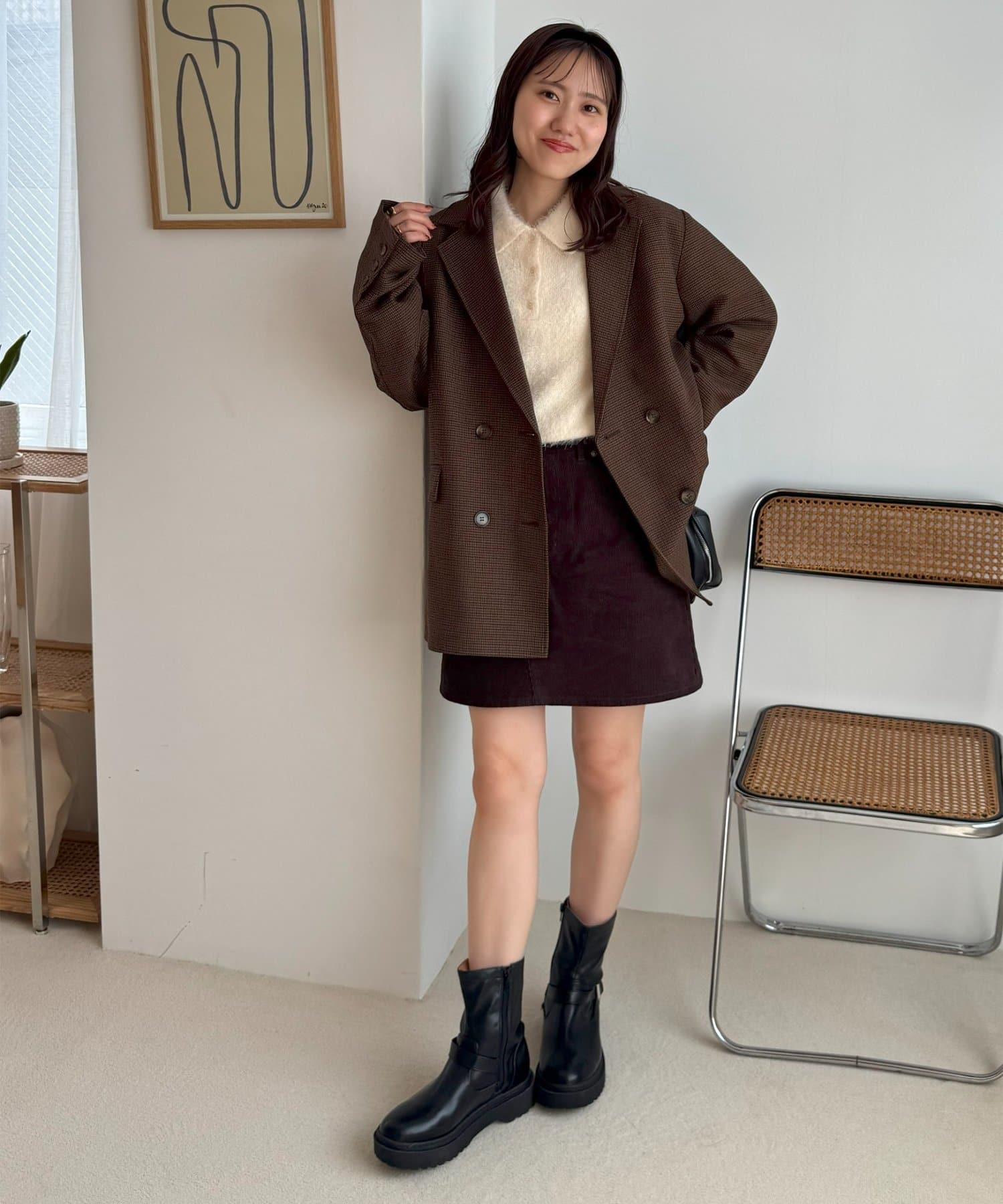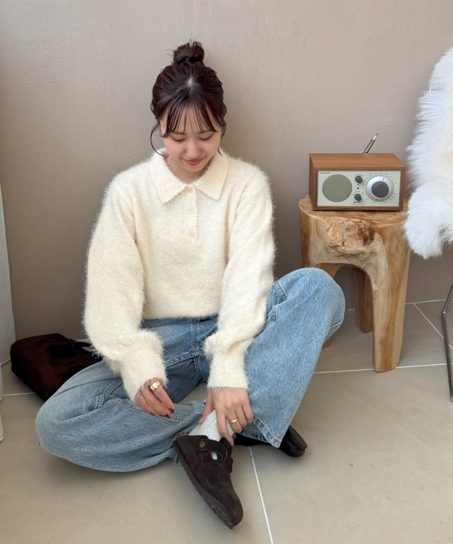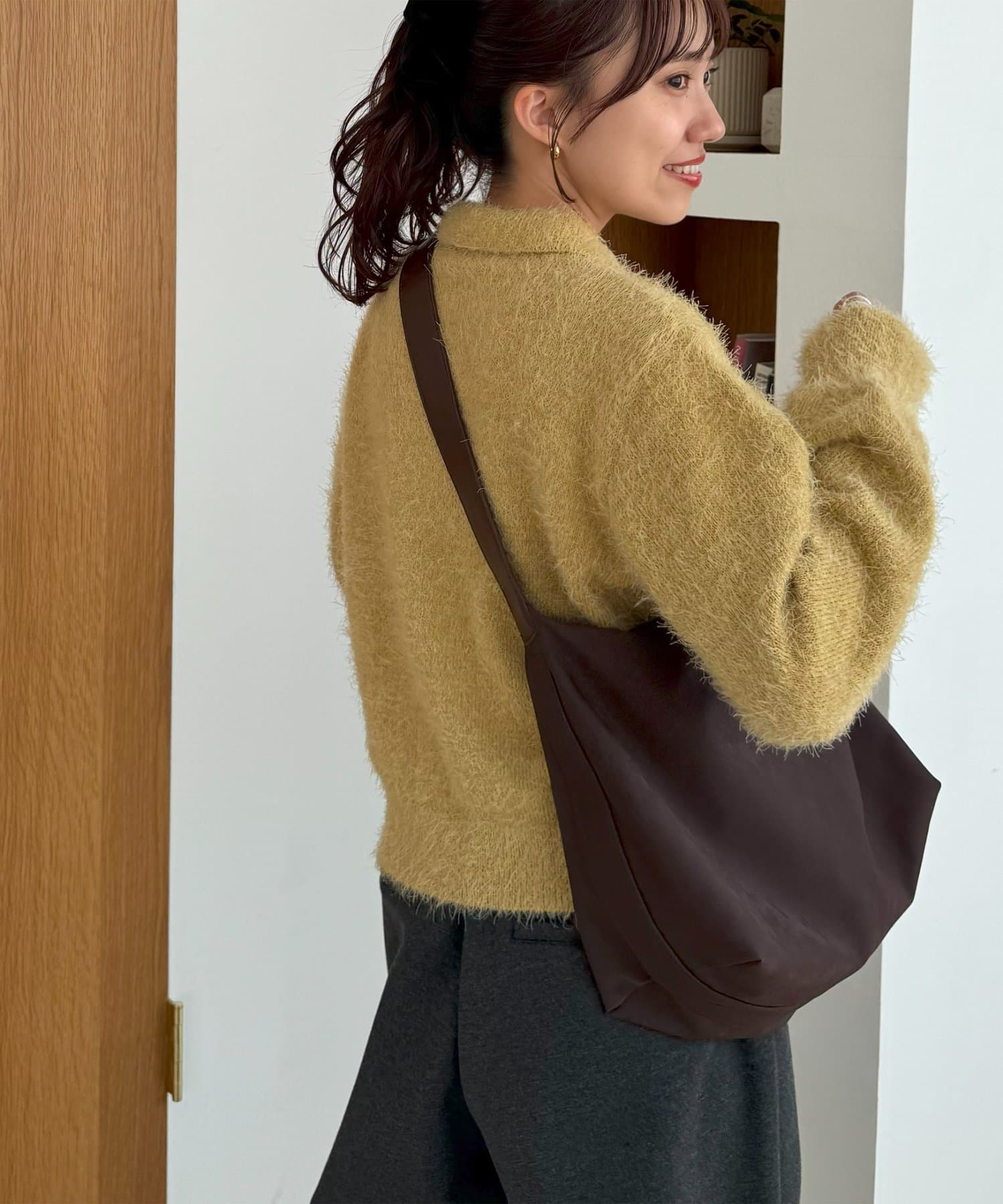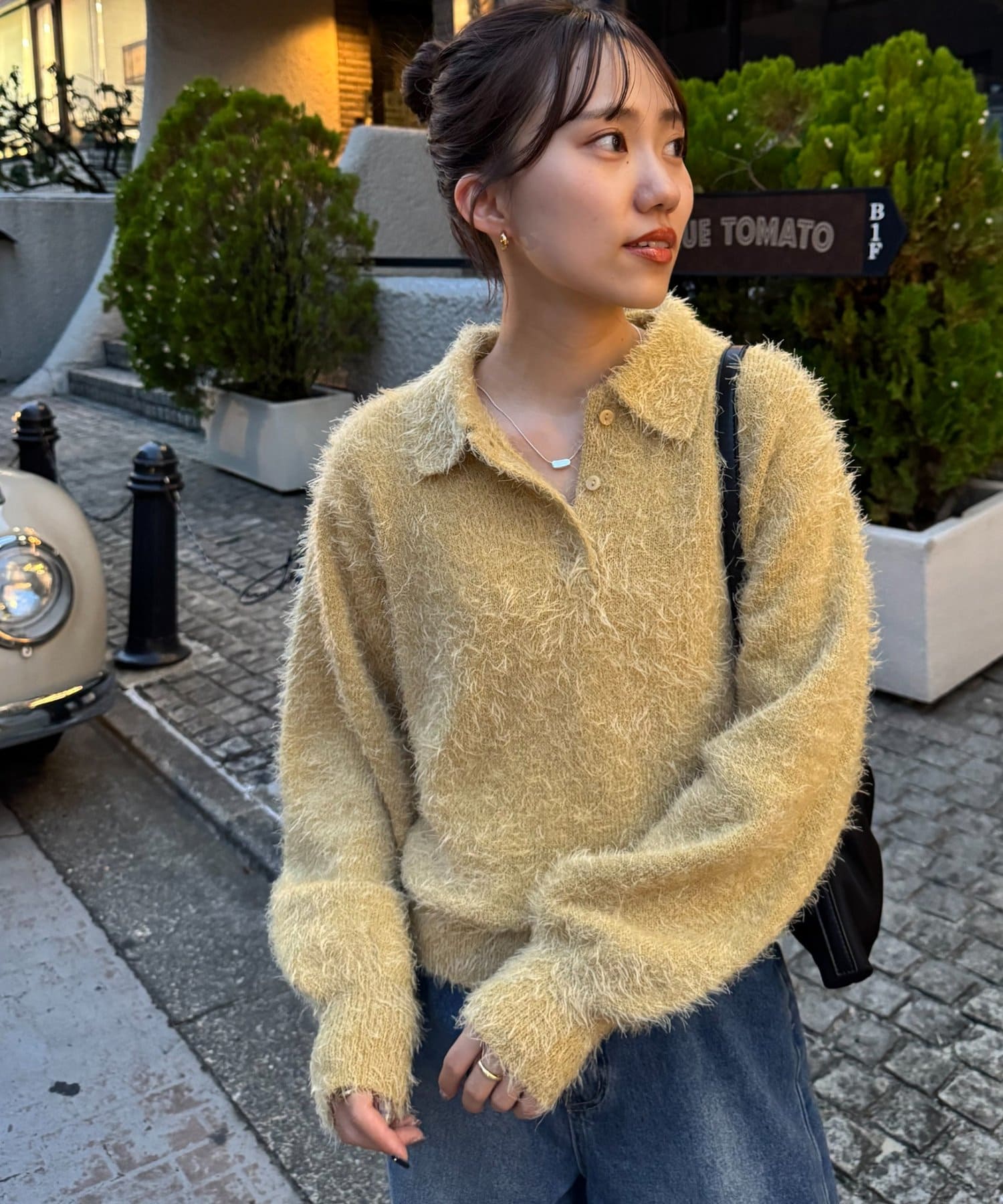 毛足のある素材なので、シンプルなボトムスと合わせるだけで存在感のあるコーデに仕上がります!