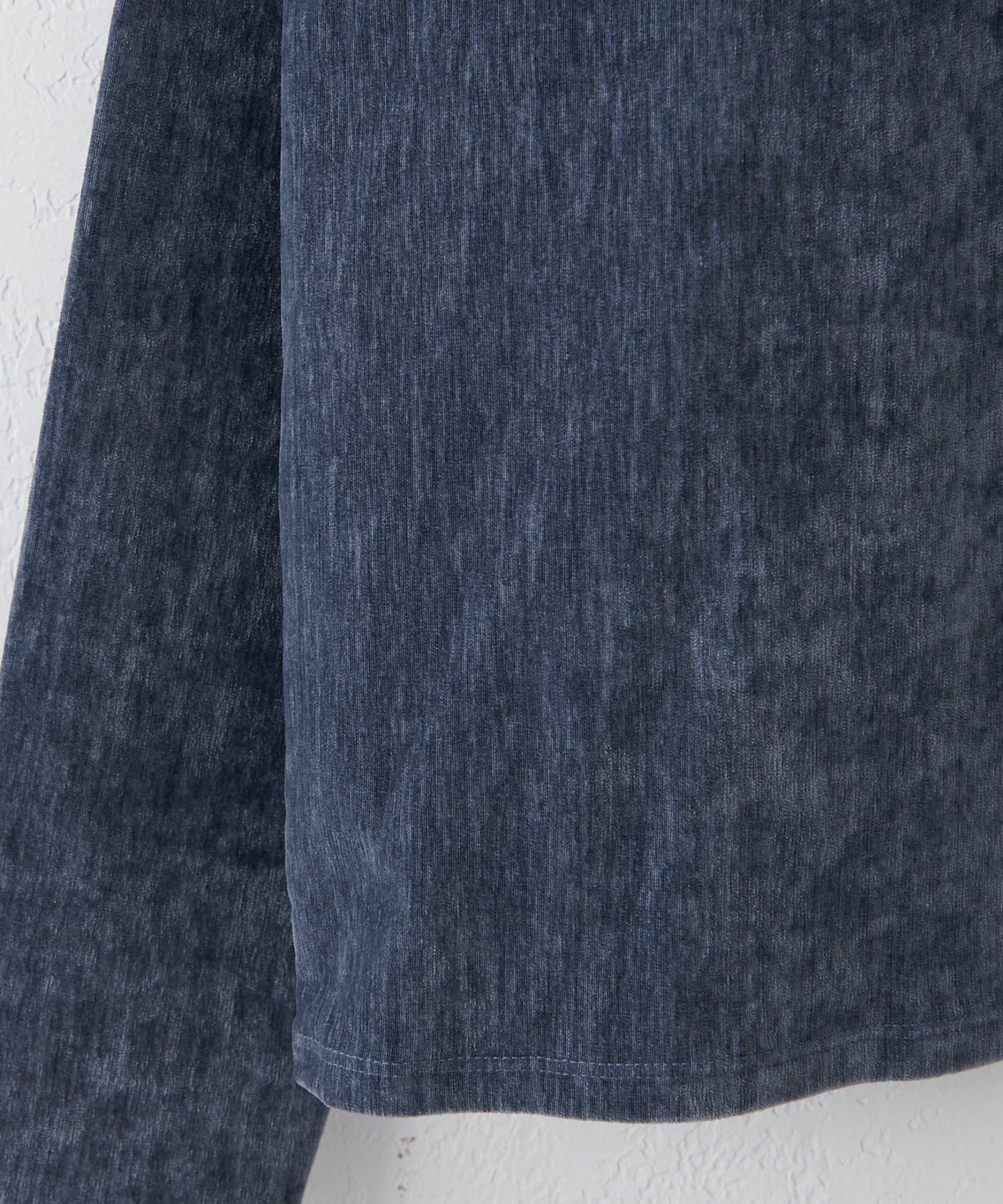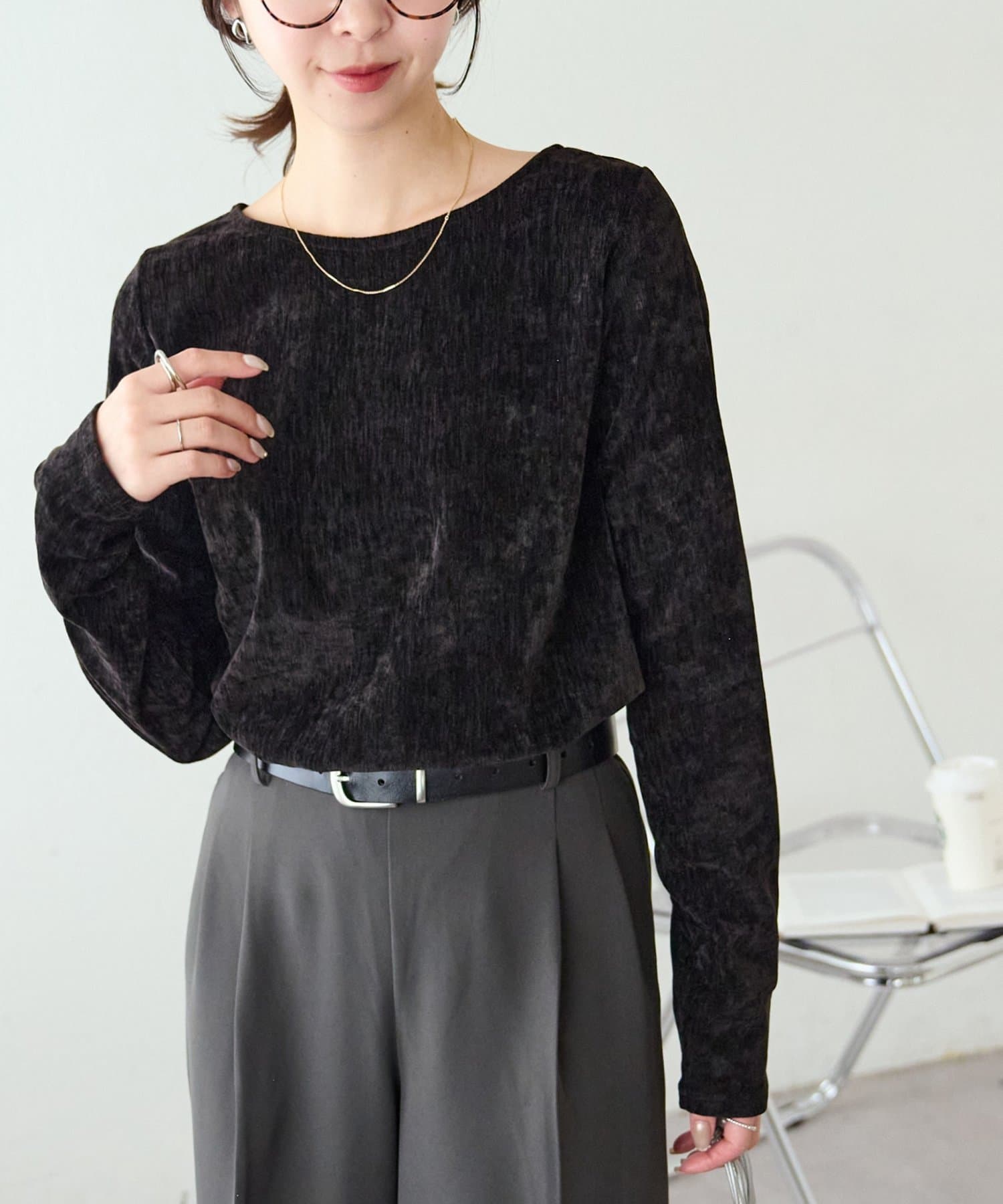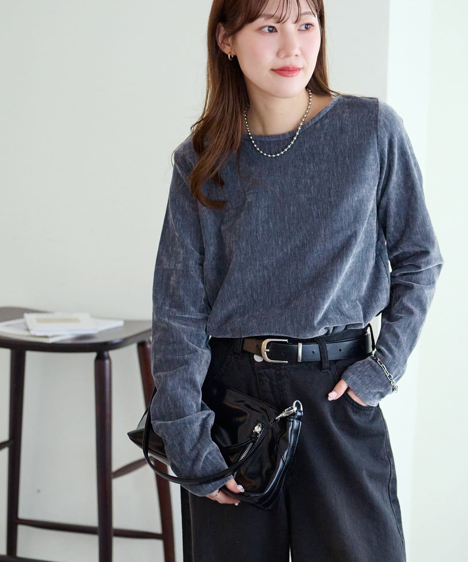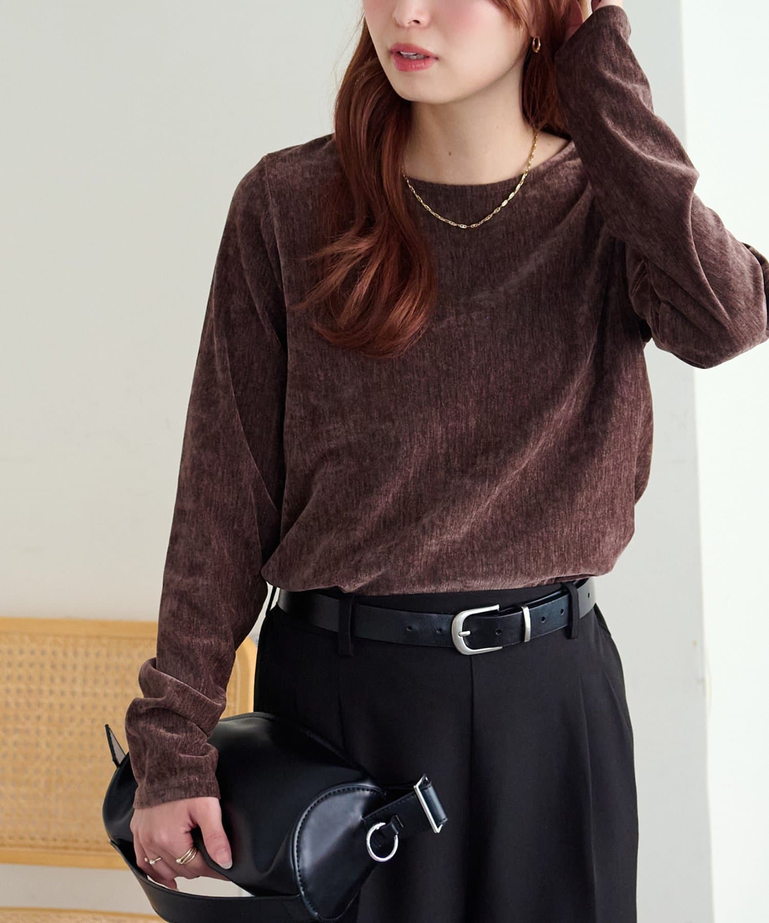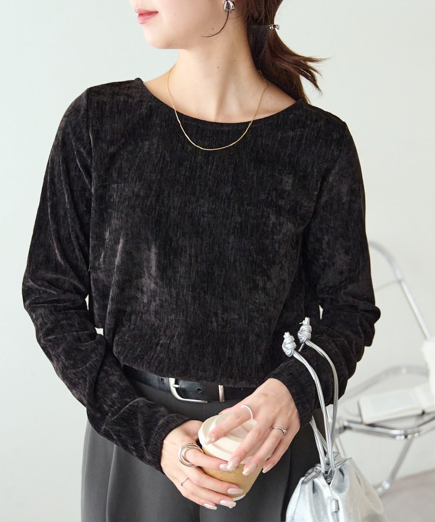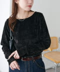 シンプルながらも上品な光沢を放つベロア素材を使用したプルオーバー。