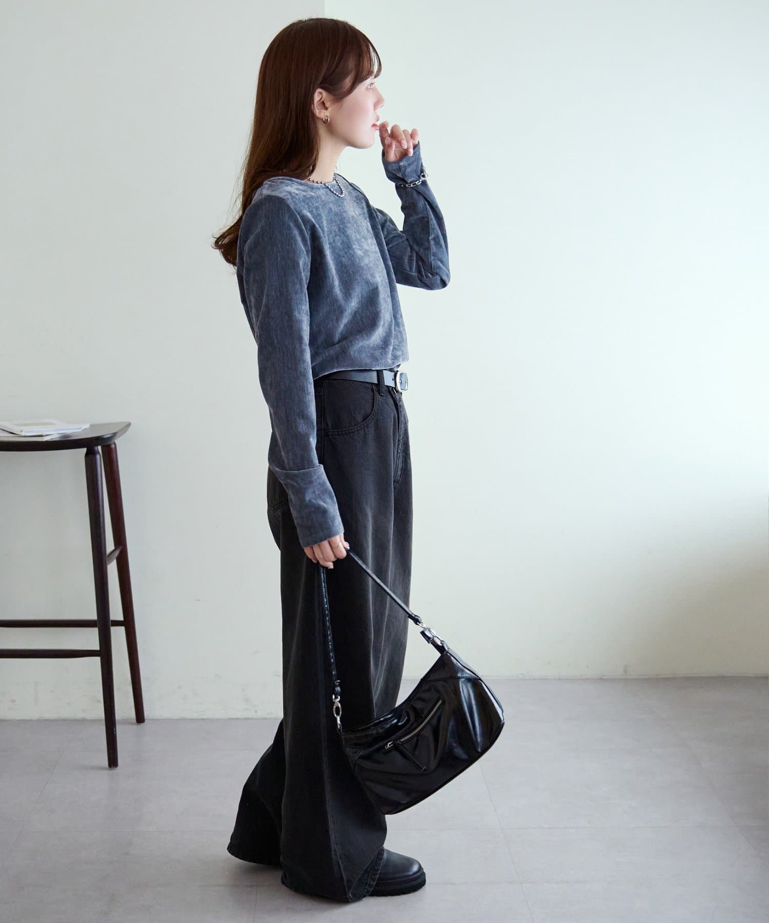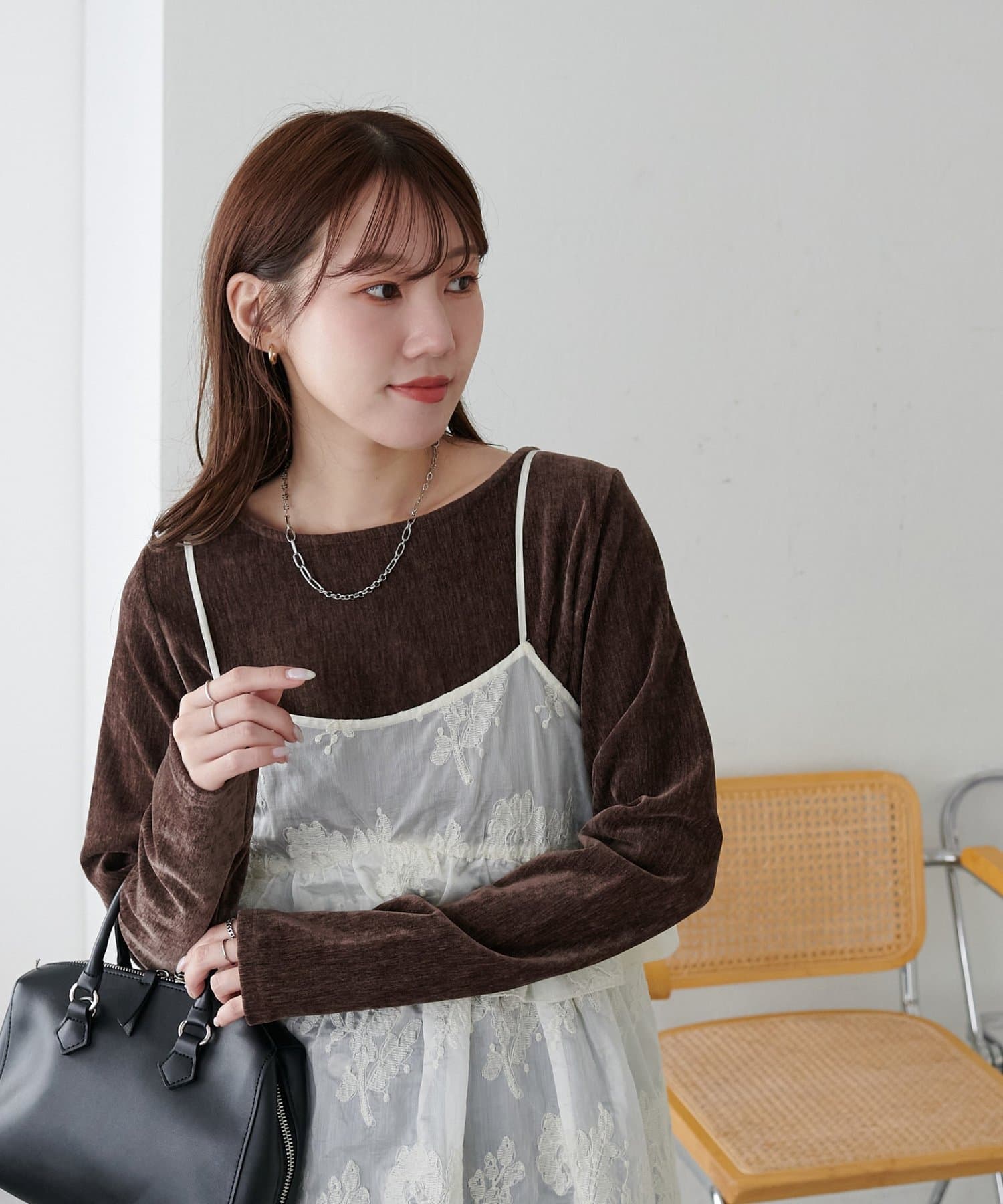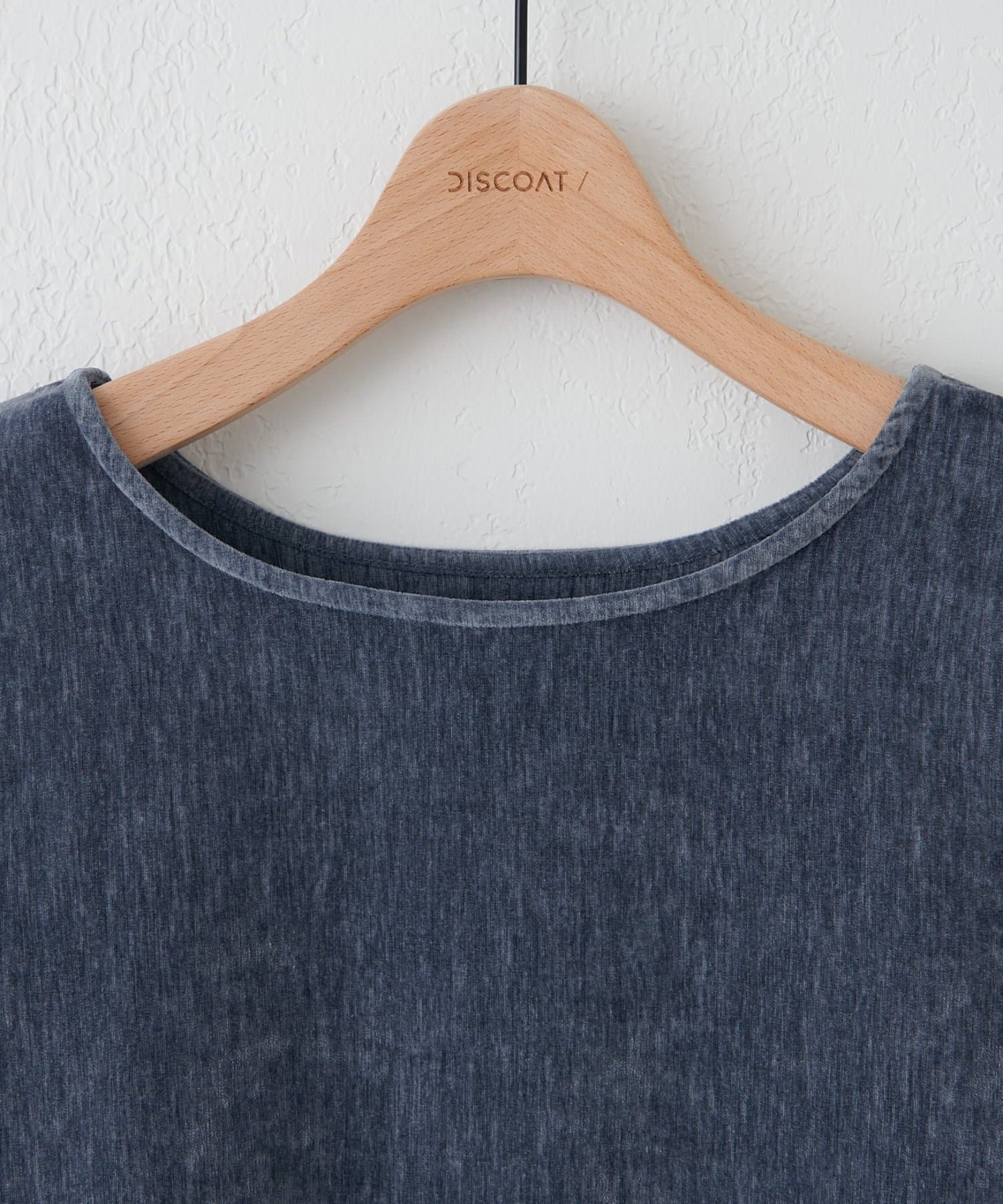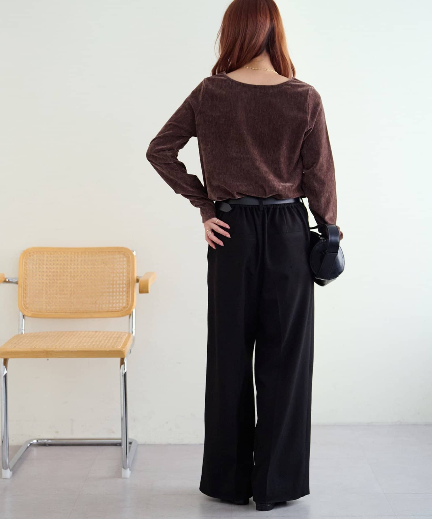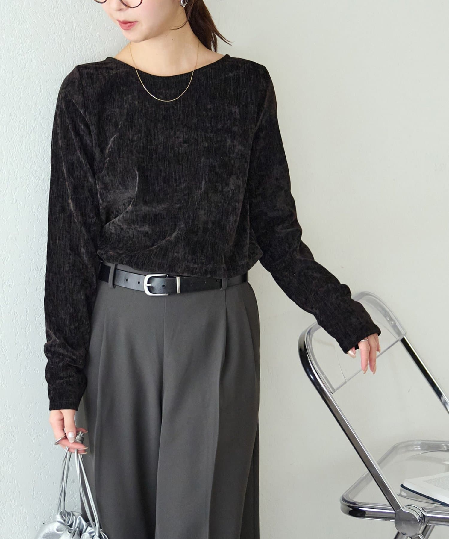 シンプルながらも上品な光沢を放つベロア素材を使用したプルオーバー。