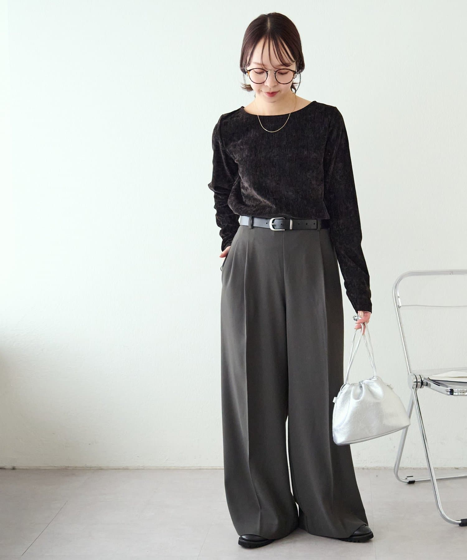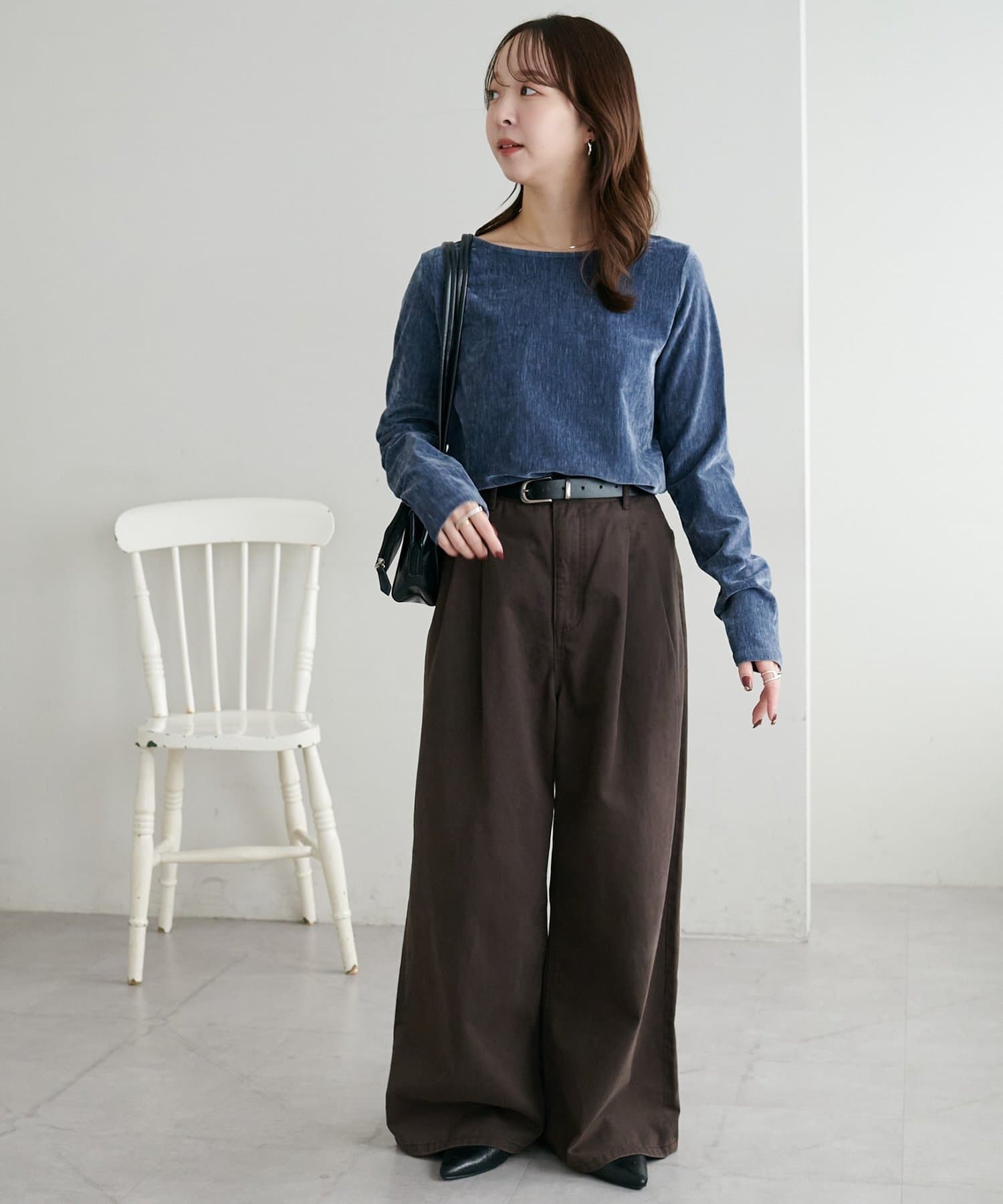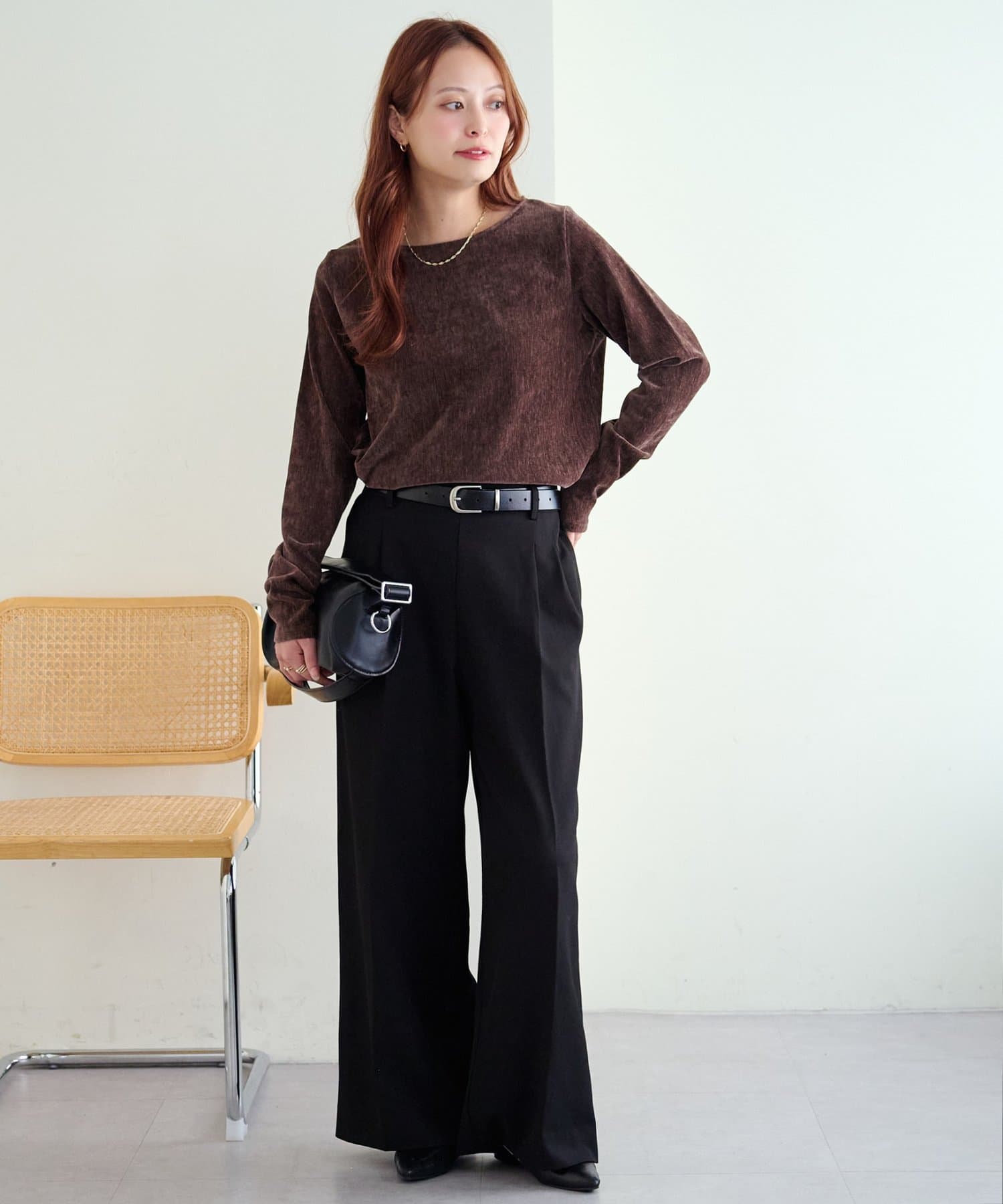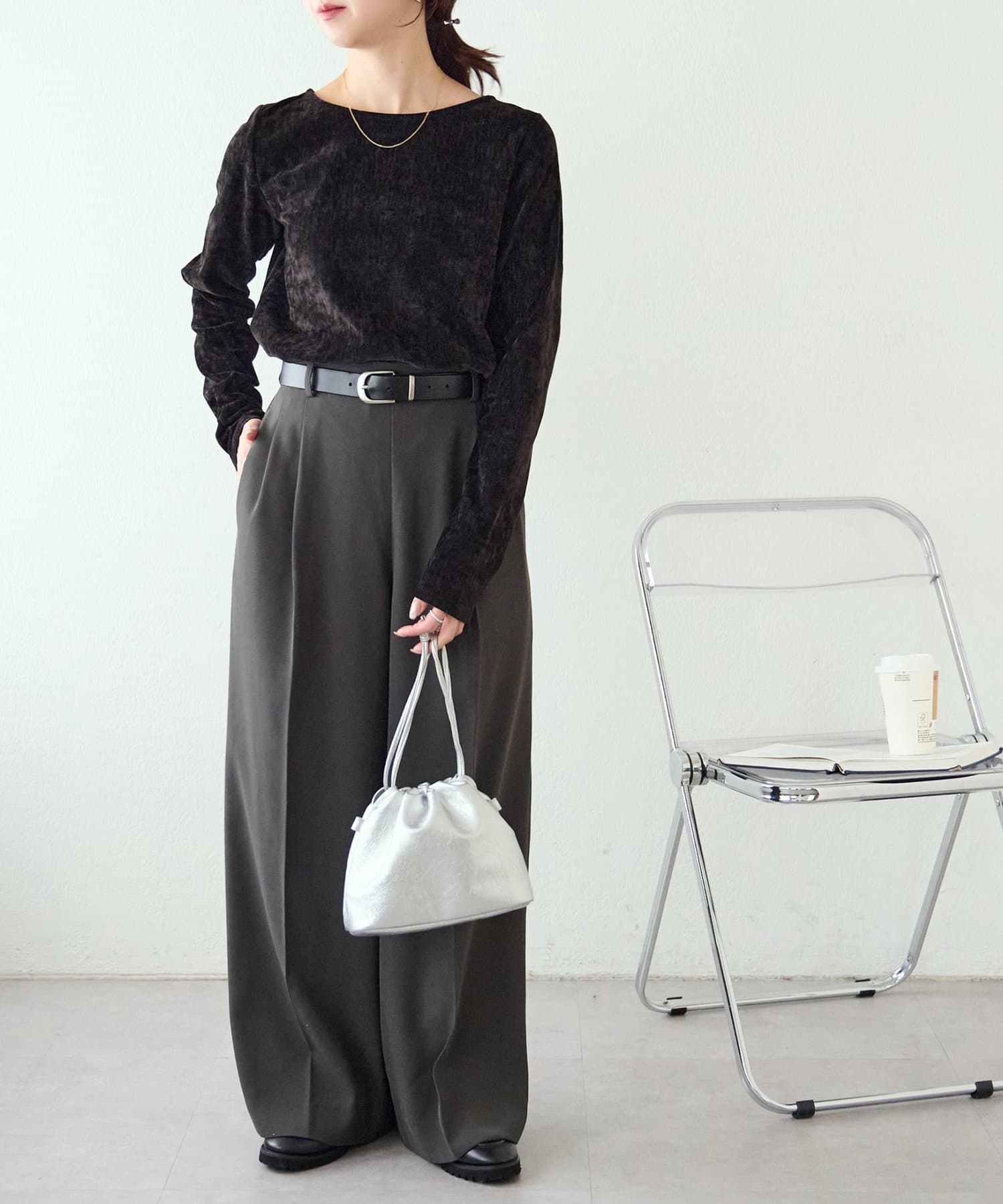 162cmスタッフ:シルエットはシンプルですが、素材がベロアで特徴的なのでシンプルなアイテムと合わせてもコーデが決まります!