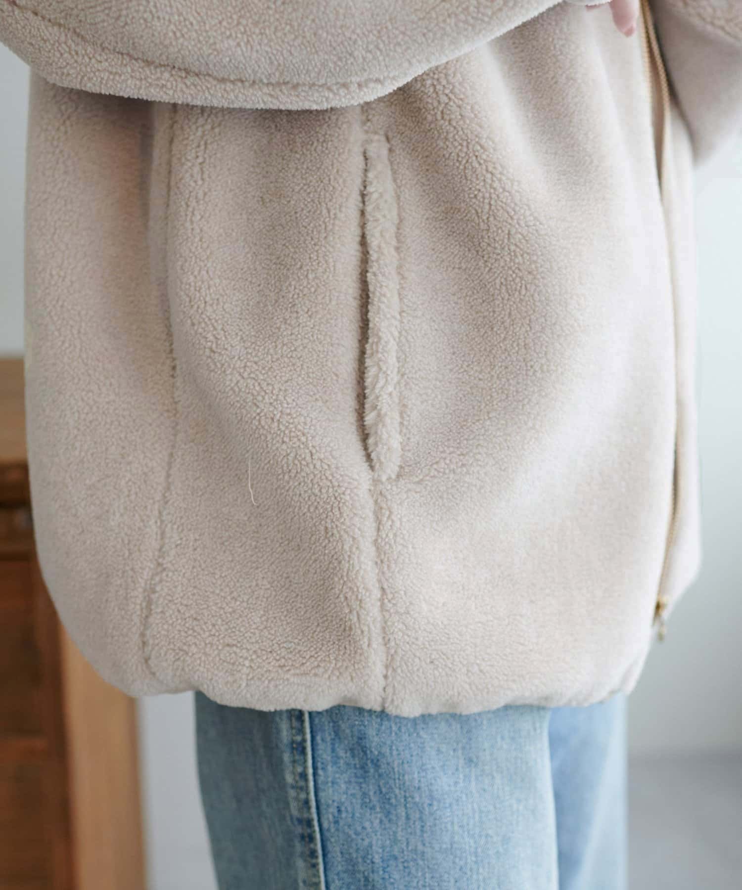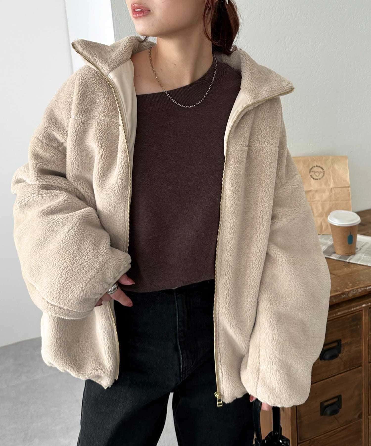 シーズンムードを高めてくれるボア素材が特徴のスタンドカラーブルゾン。