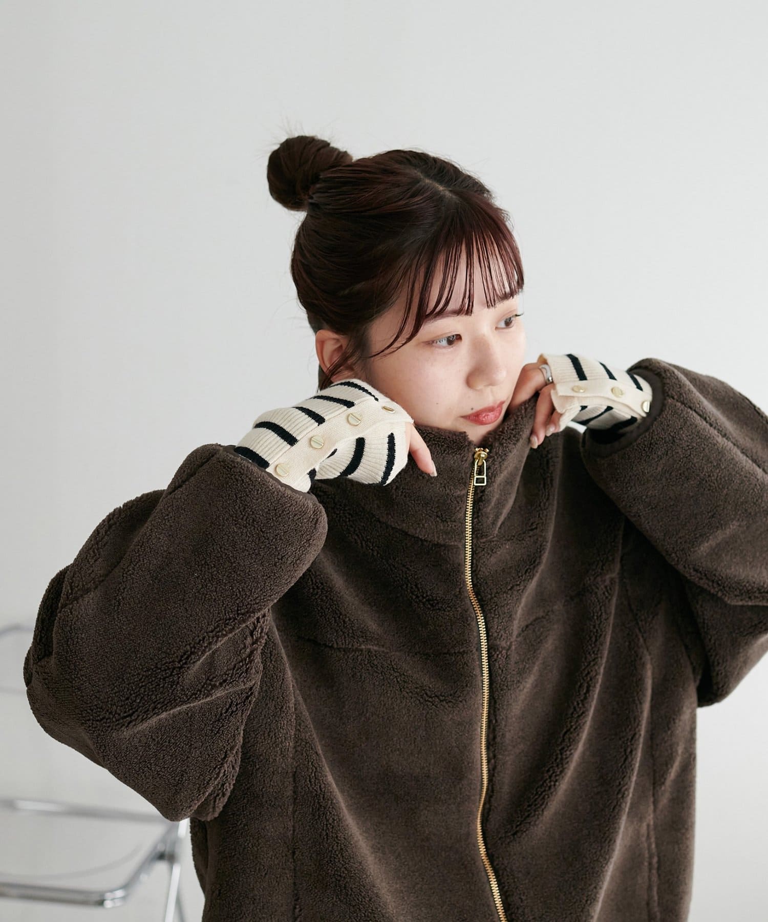首元はスタンドネックにもなるので、マフラーなしでも暖かく着ていただけるのもポイントです!