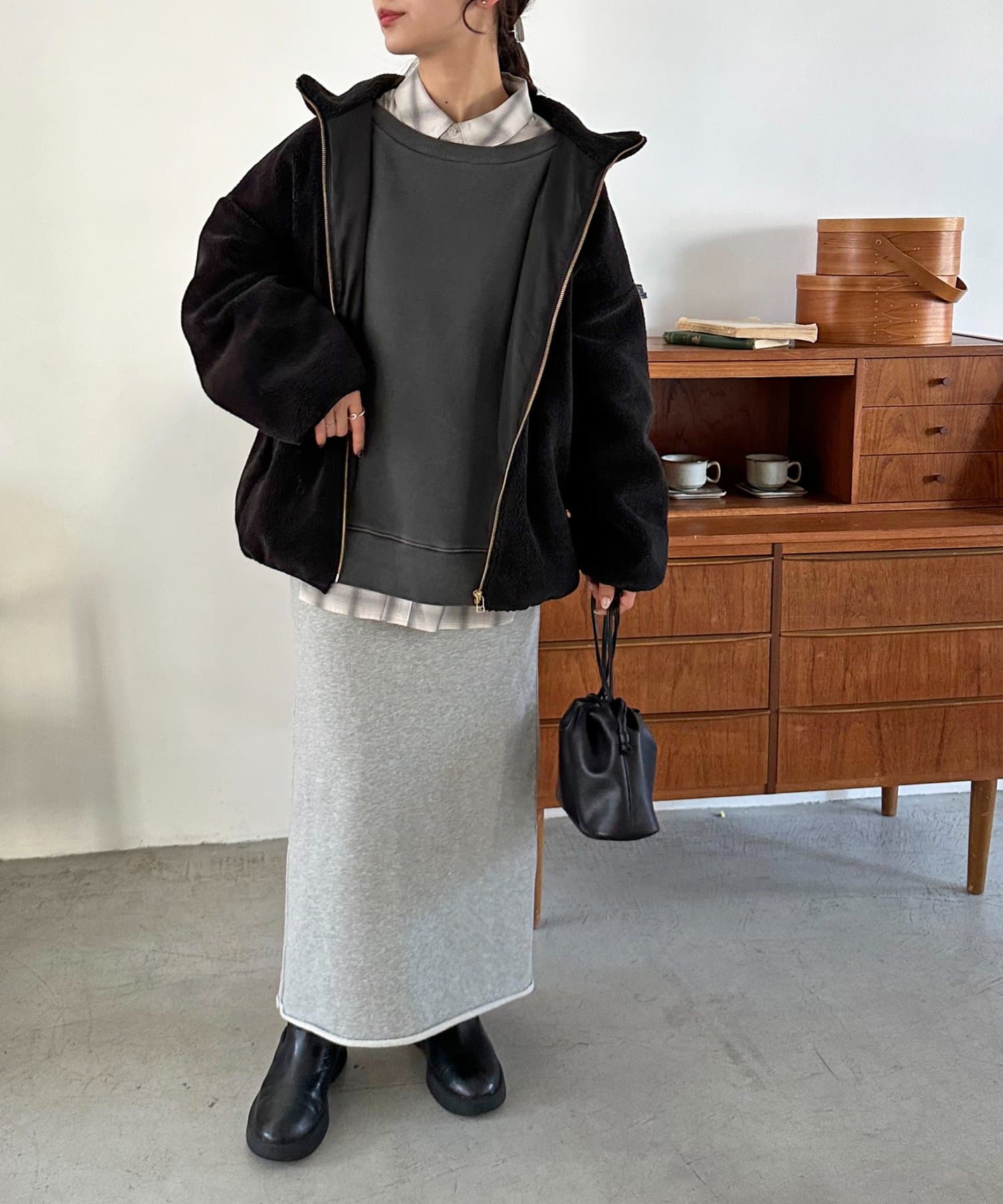 オーバーサイズなので厚手のニットやスウェットの上からでも羽織れ、真冬のアウターとしても活躍します!
