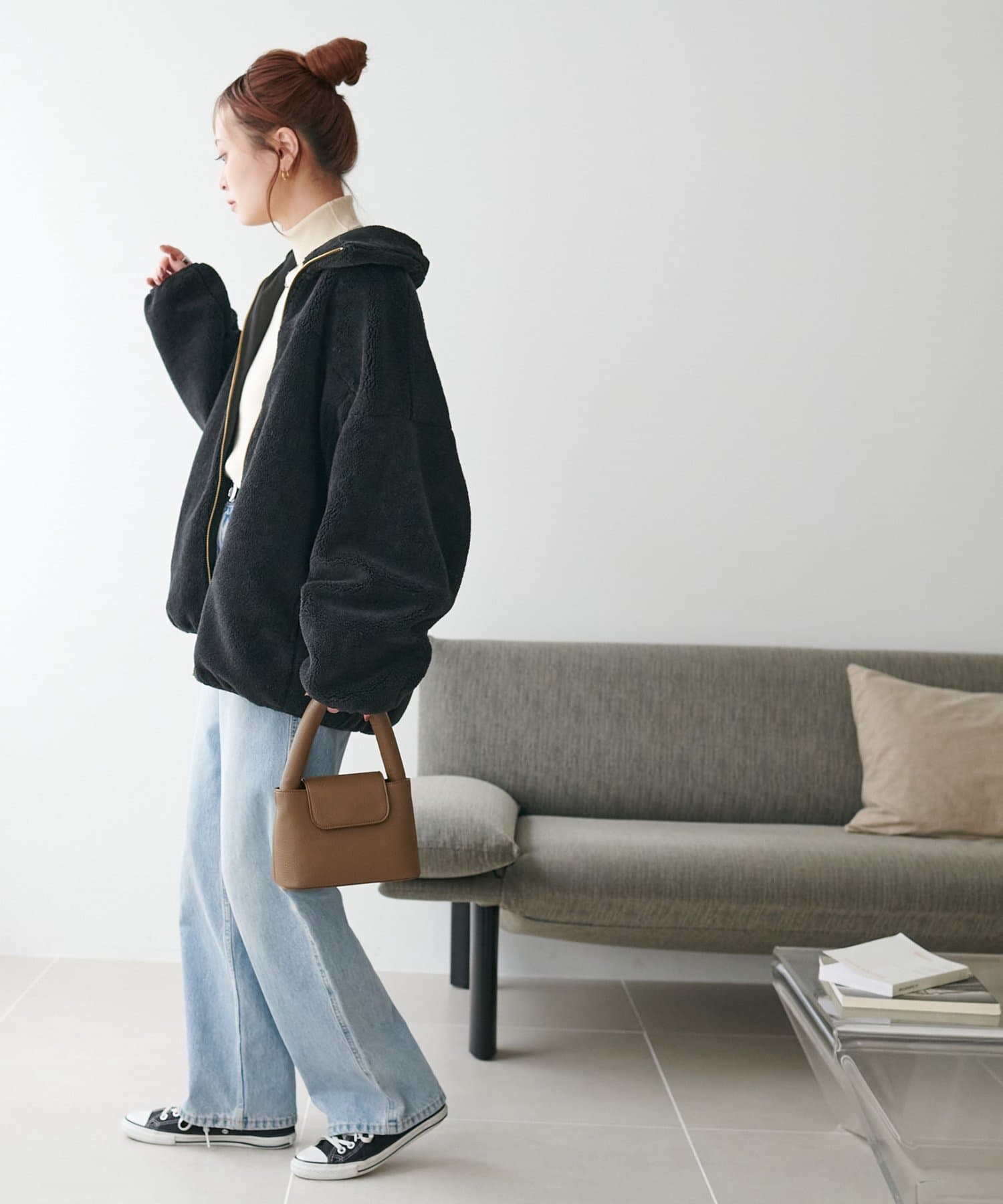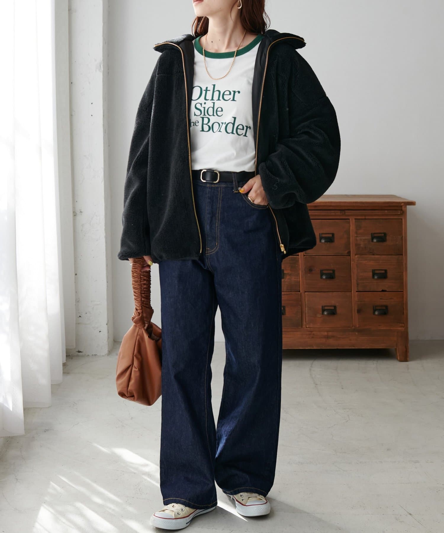 カジュアルな雰囲気がありながらも、丸みのあるフォルムが女性らしい着こなしに♪
